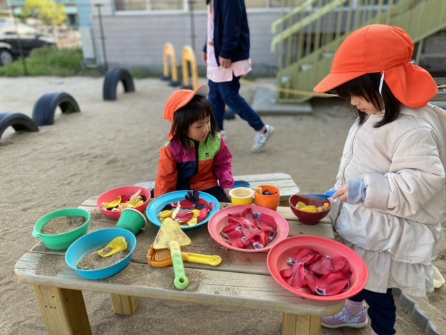花びらは、子どもたちの遊び道具に大変身です❗