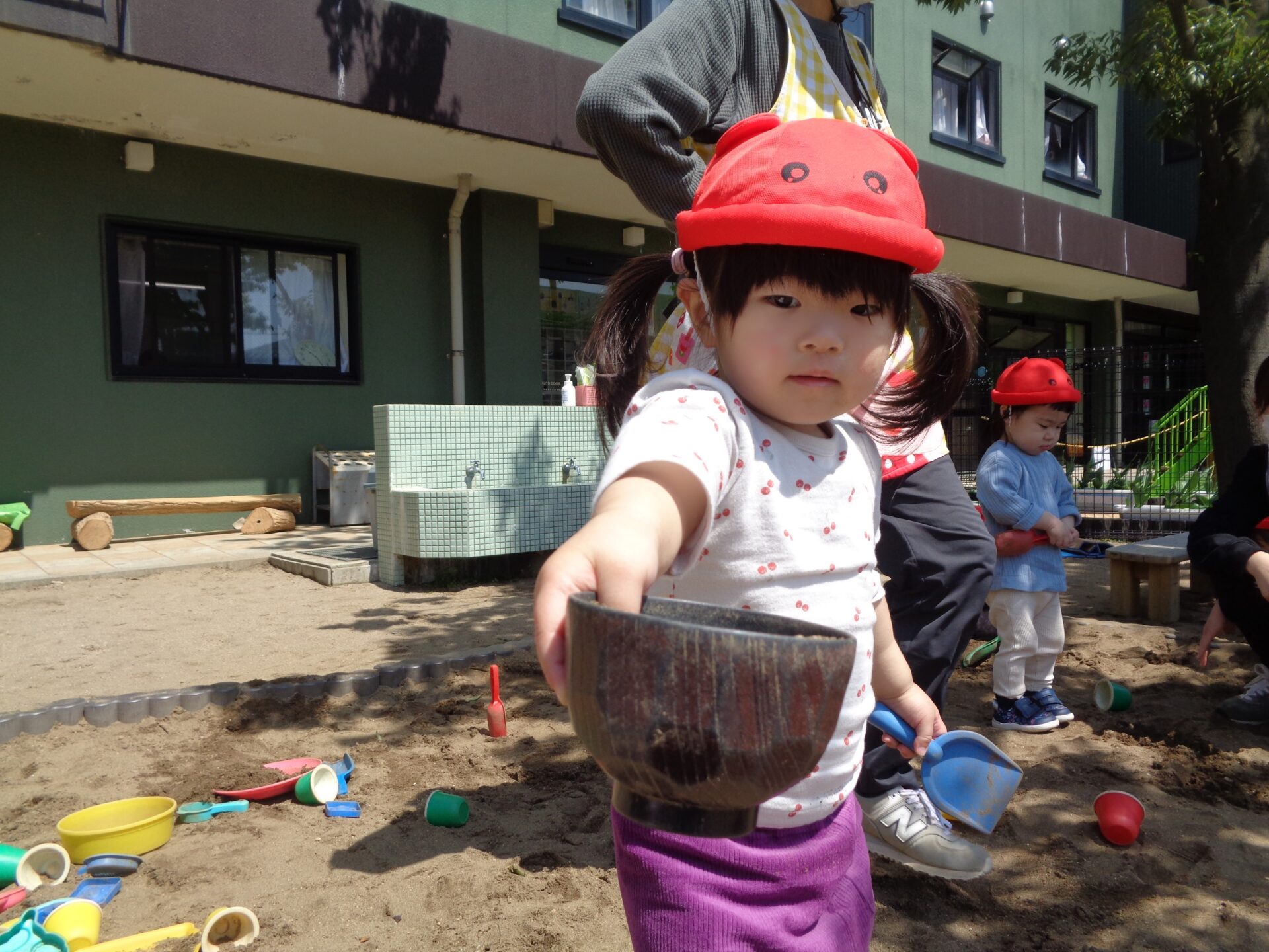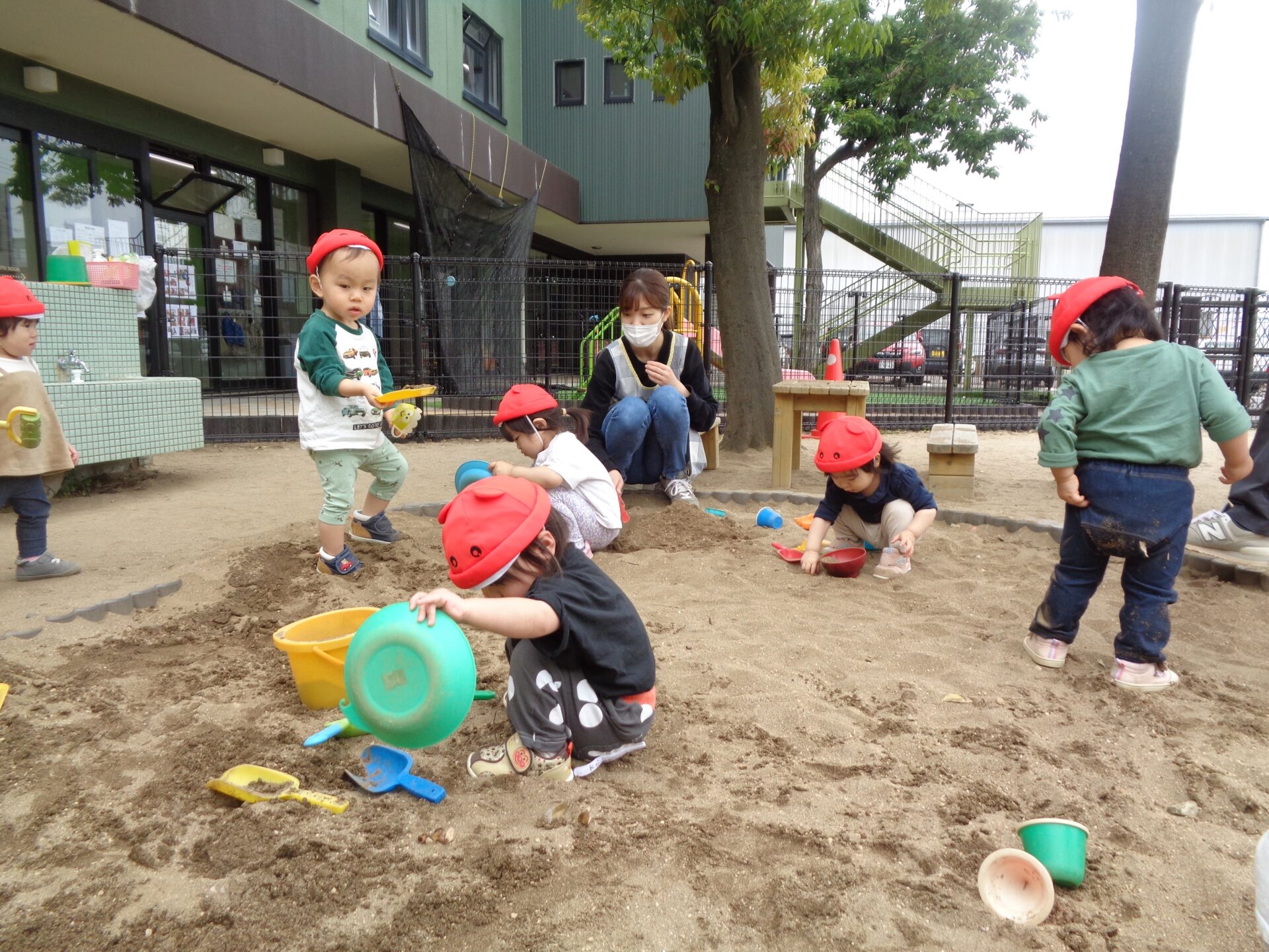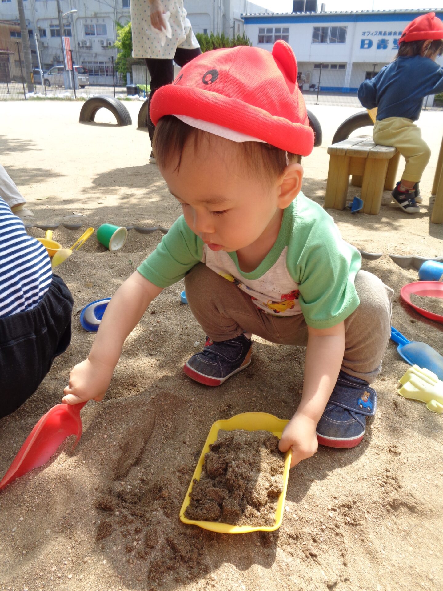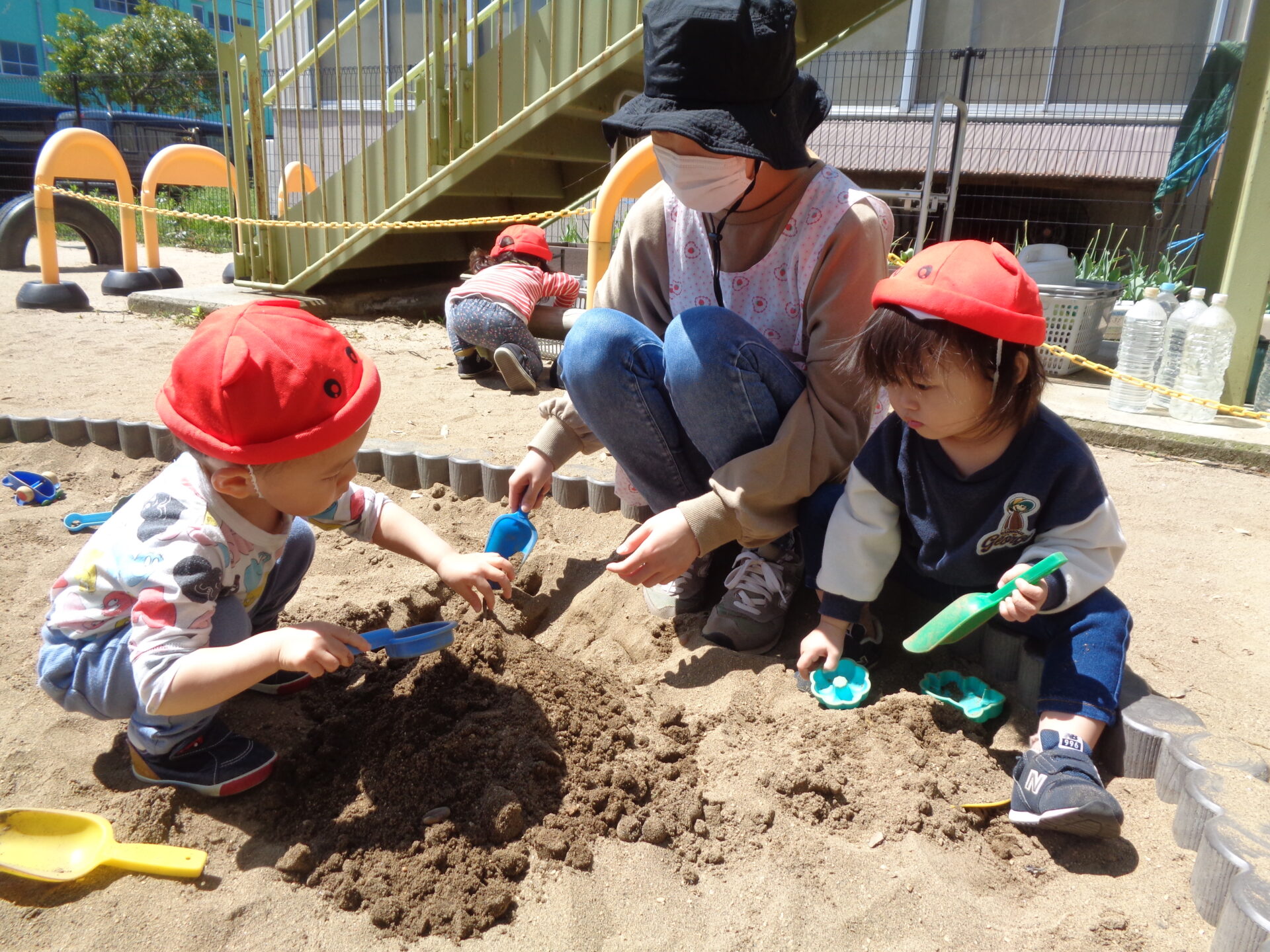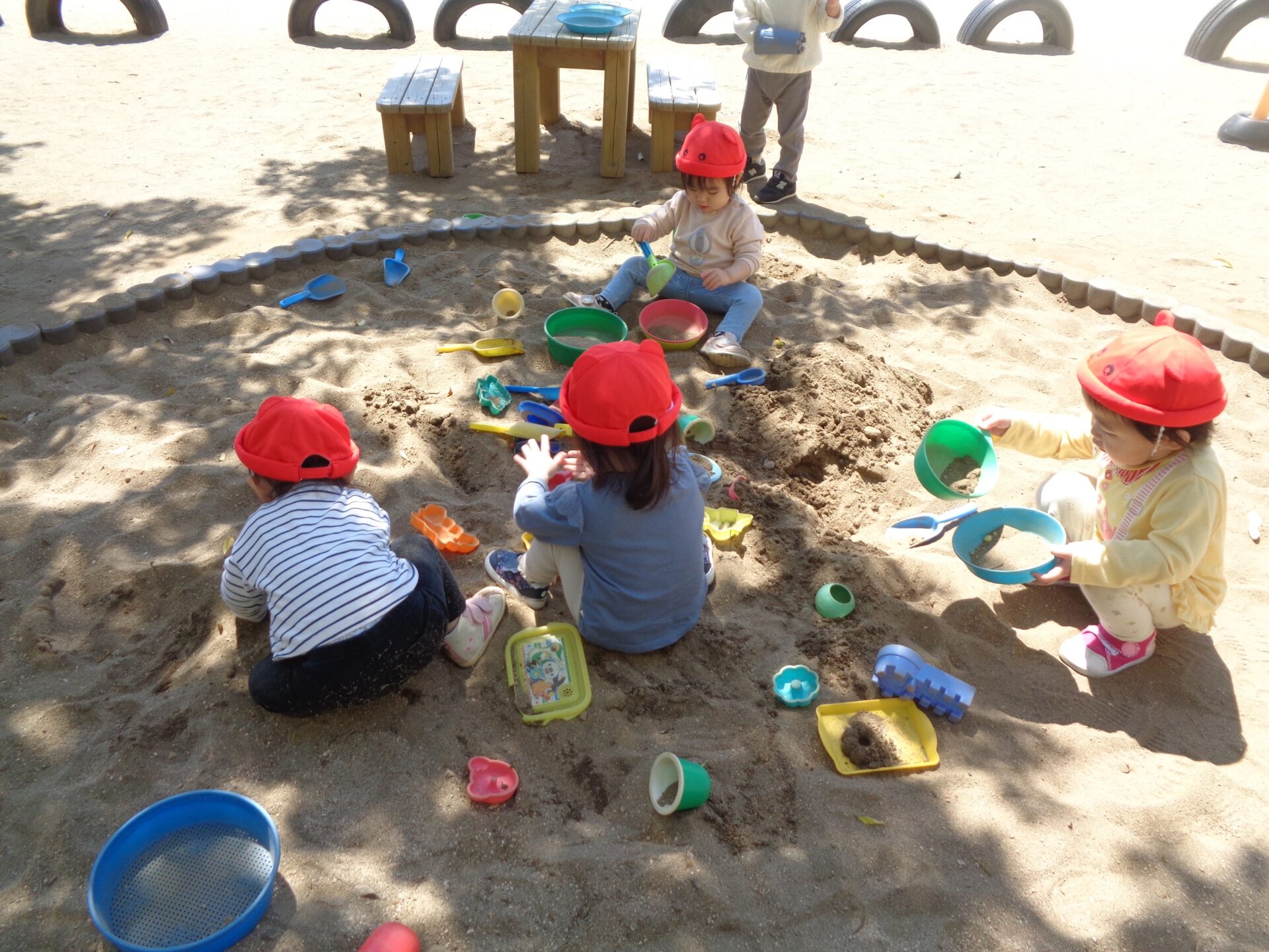 お砂遊びは子どもの成長や発達にたくさんのメリットがあると言われています。今後も子ども達と一緒におもしろい!たのしい!を見つけていきたいと思います。