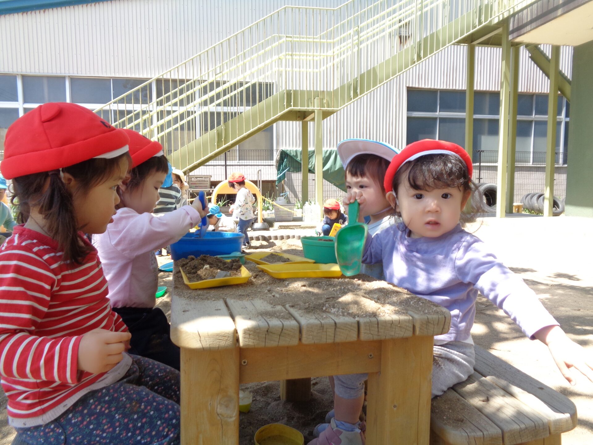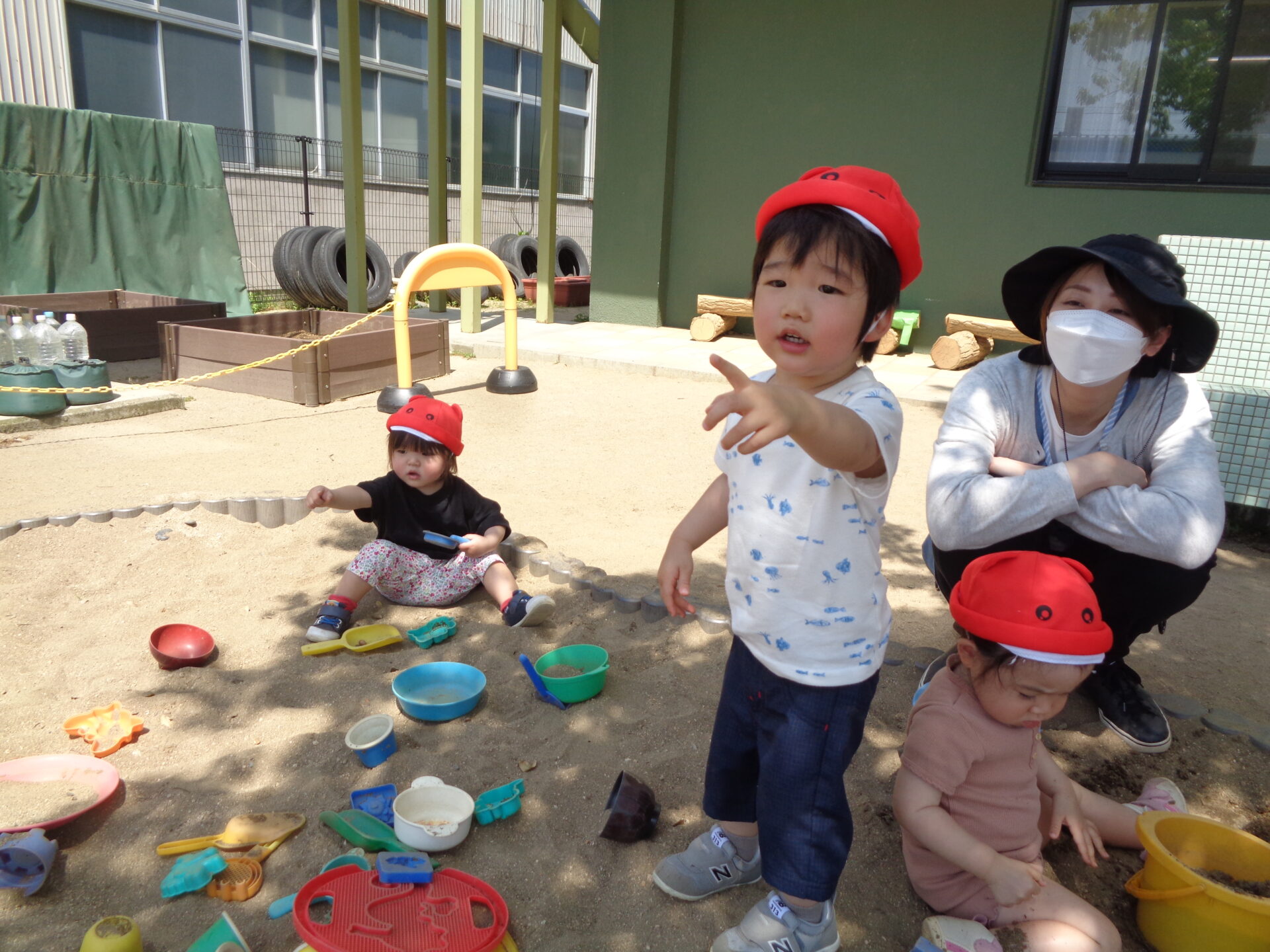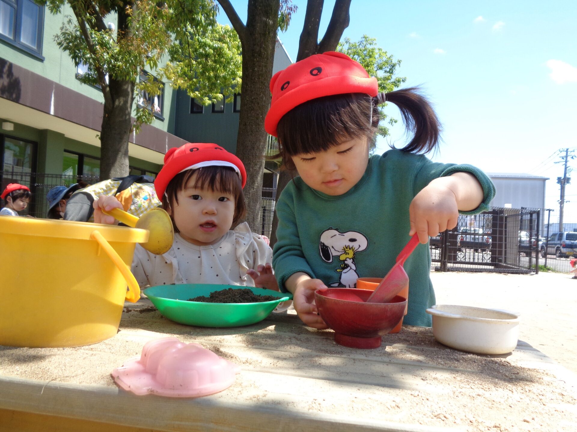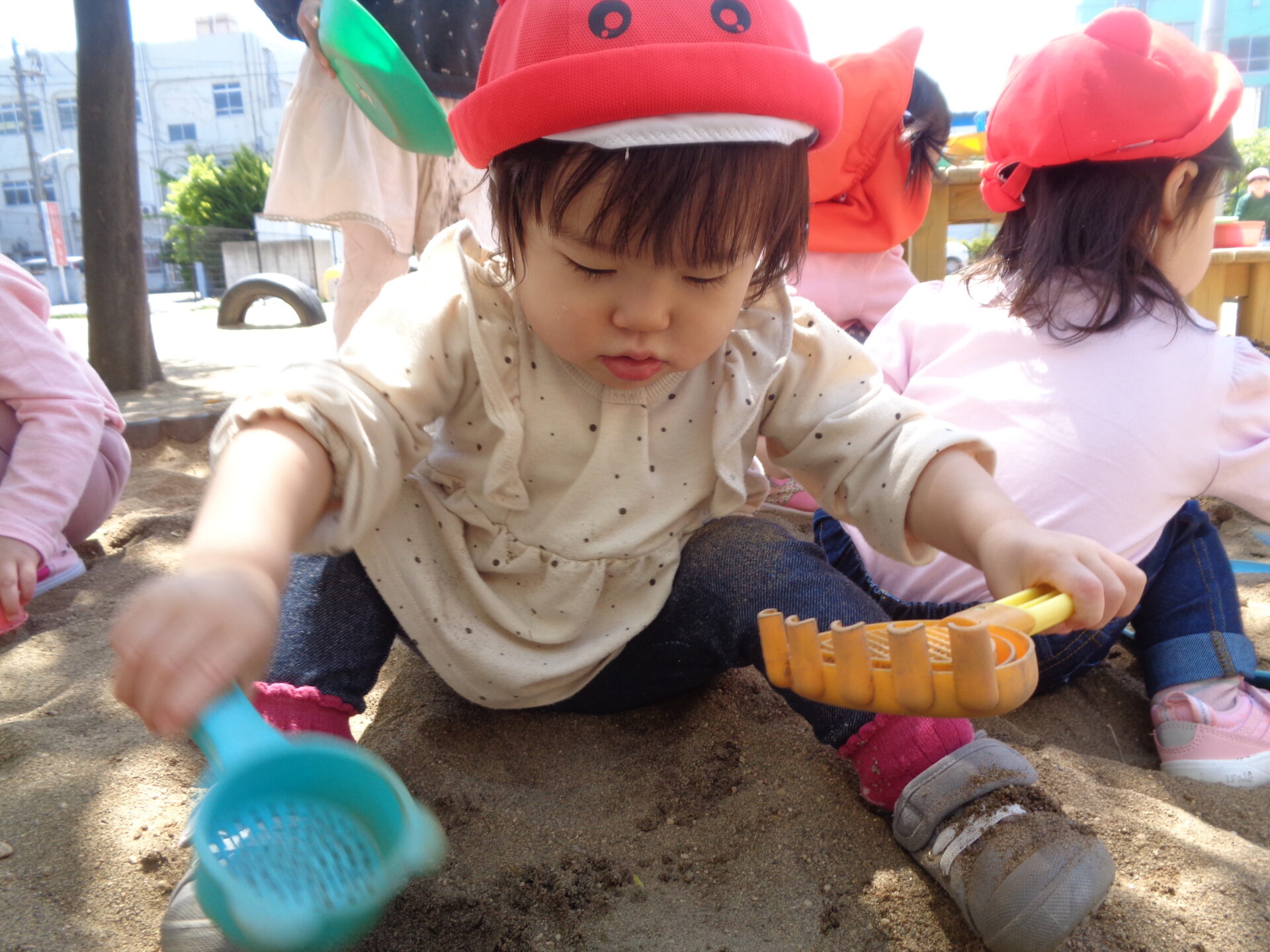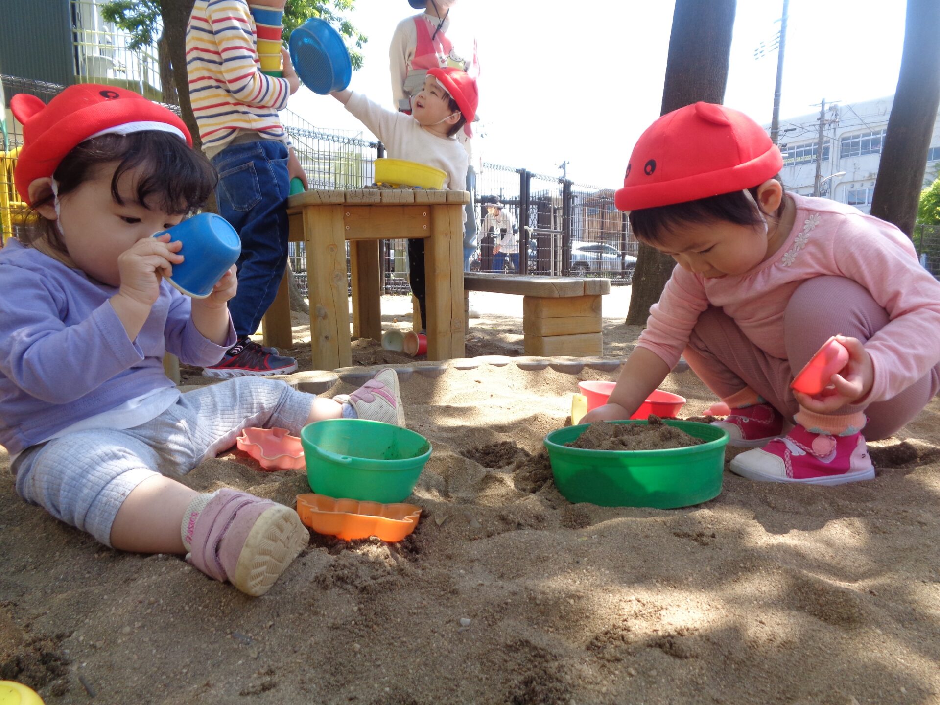 お砂遊びは子どもの成長や発達にたくさんのメリットがあると言われています。今後も子ども達と一緒におもしろい!たのしい!を見つけていきたいと思います。