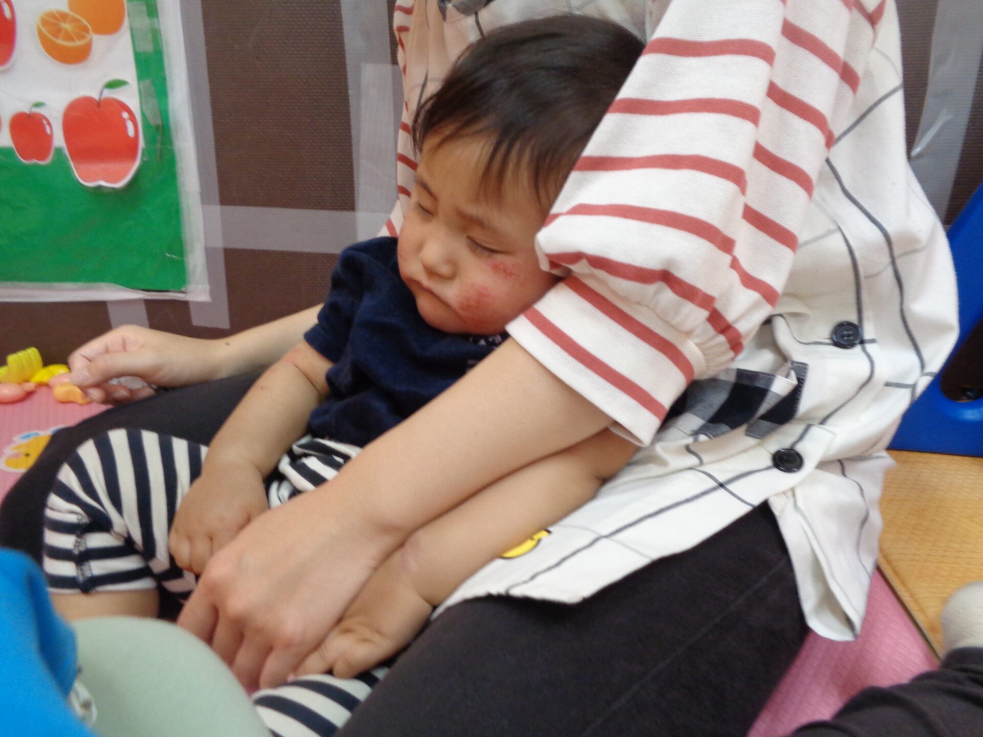 ぎゅうぎゅうが楽しいバスごっこもお膝ならでは。