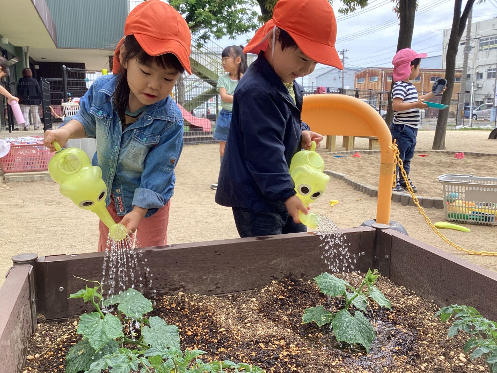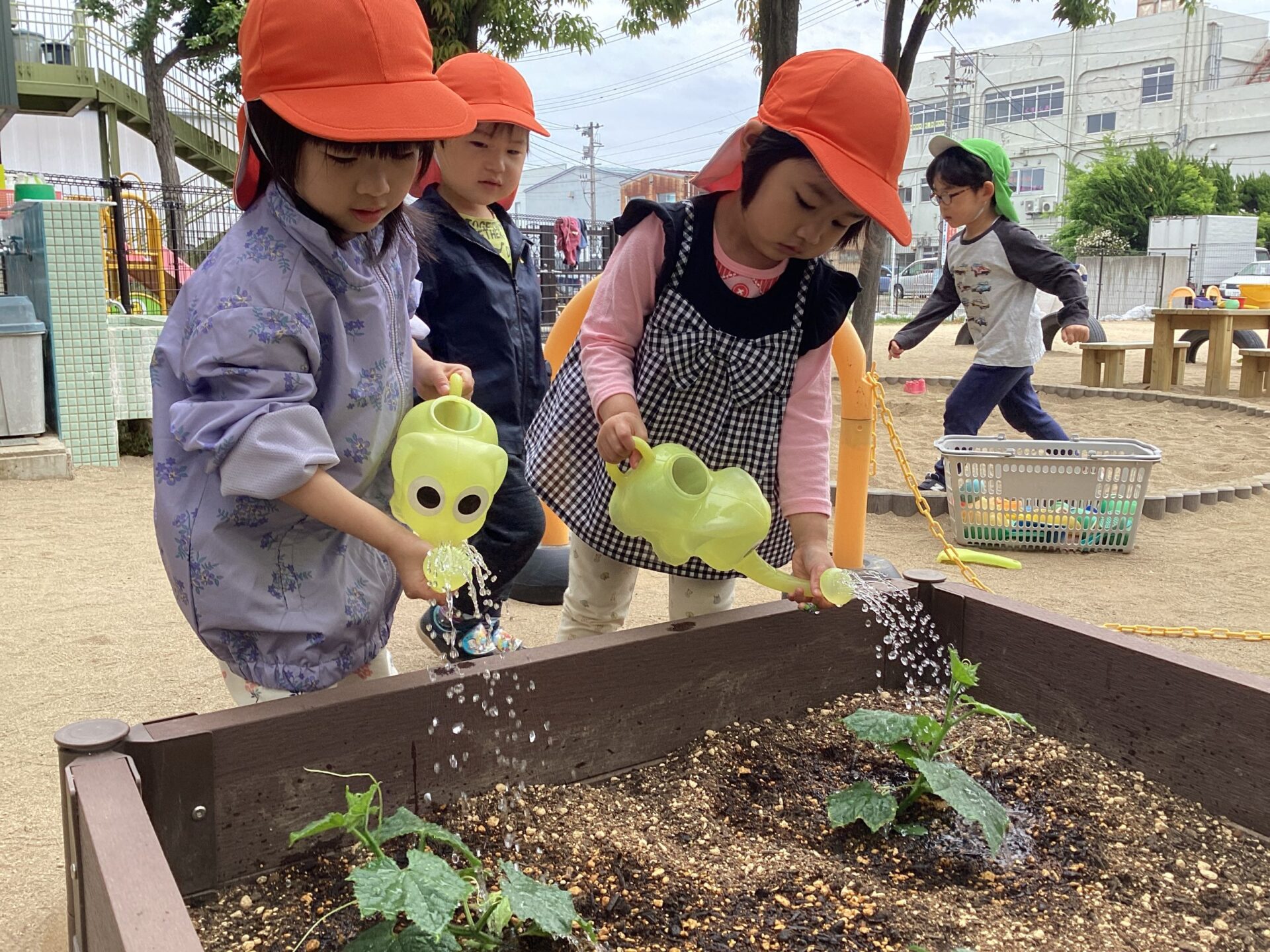 子ども達は、水やりをしながら大切に野菜を育てていく中で、様々なことに気付いたり、感じたりしています✨