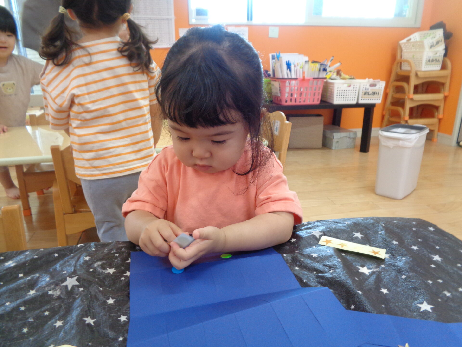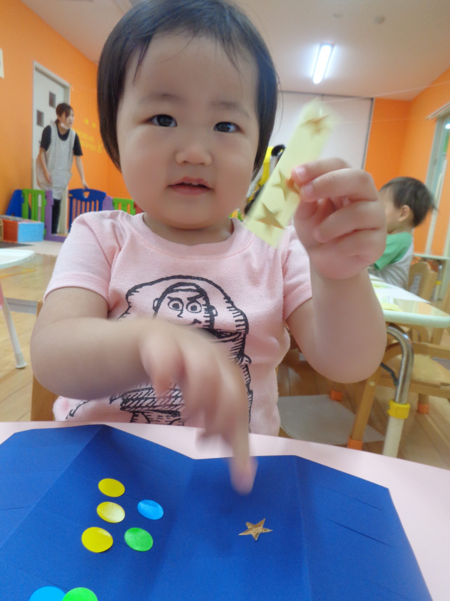 丸シールはもちろん、星シールも自分で台紙から剝がそうとする子も姿も多く、日々シール貼りを楽しんでいる成果を感じる瞬間でした。👏✨
