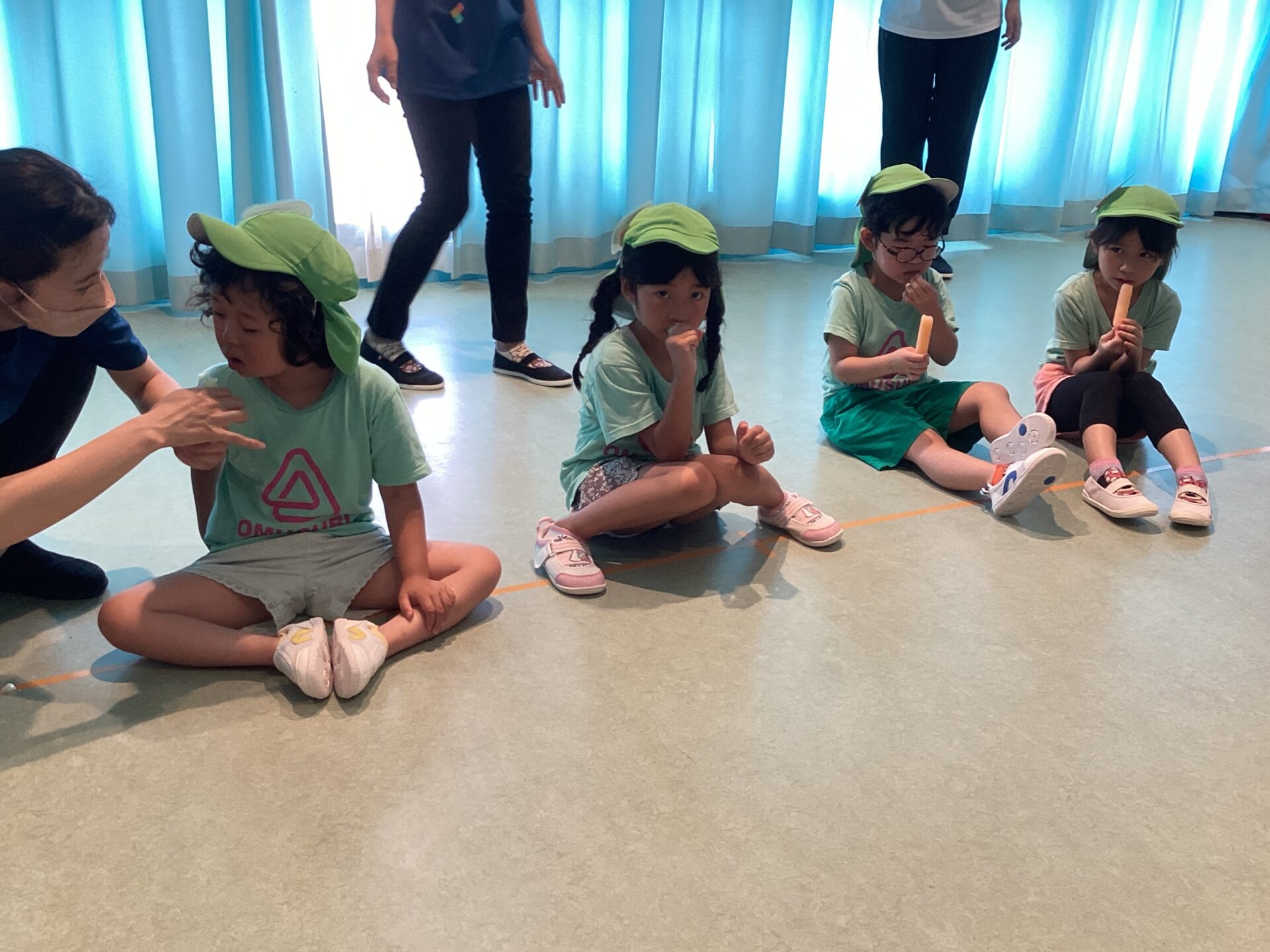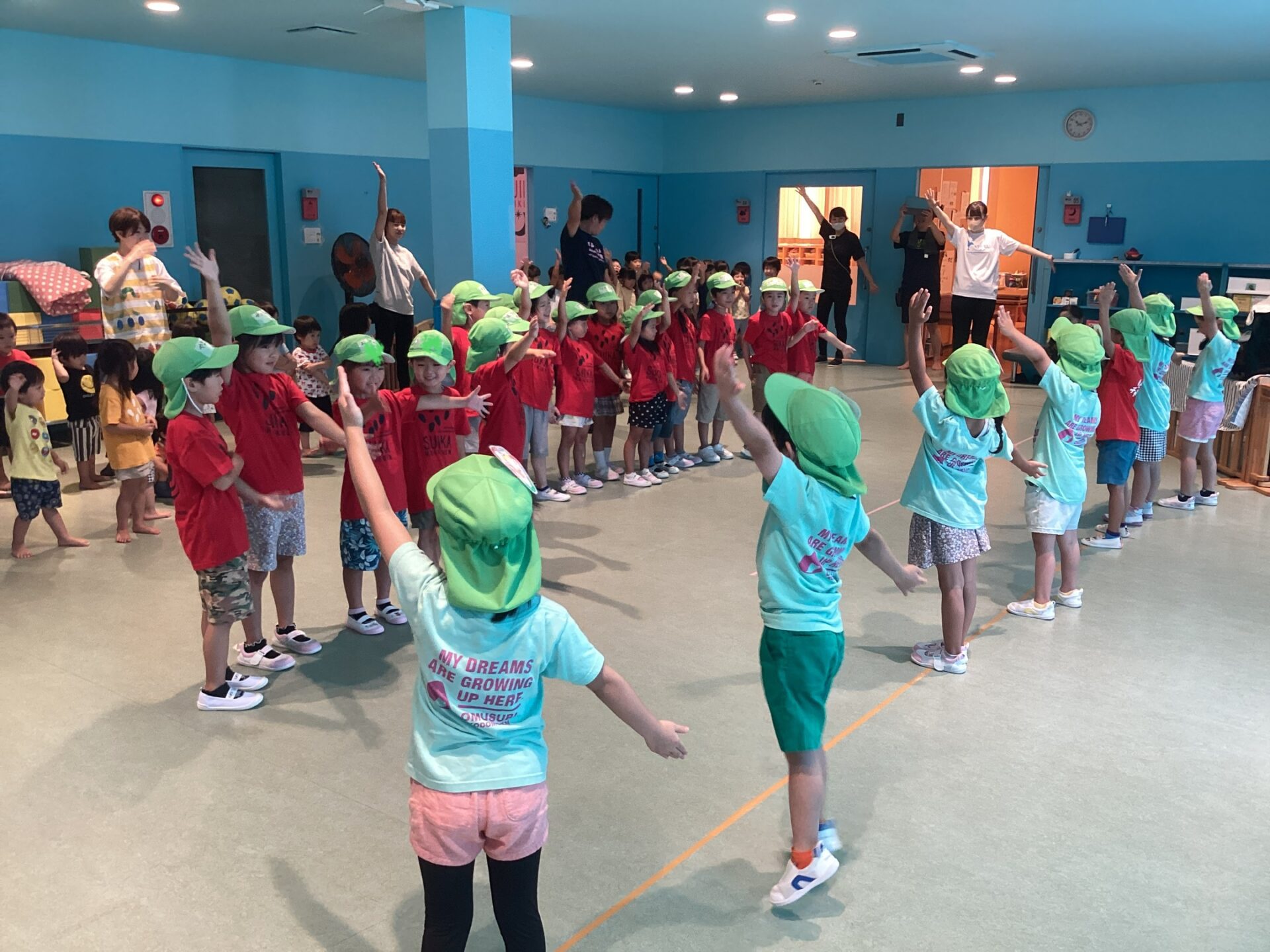 その後は、すいか保育園とえだまめこども園のお友だちと一緒にダンスを踊って楽しみ、みんなで冷たくておいしいポッキンアイスを食べました😋