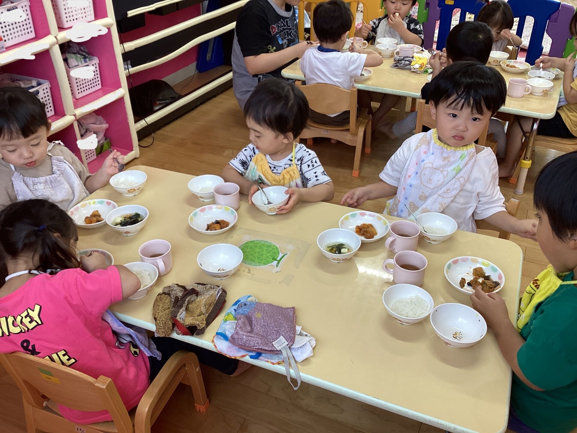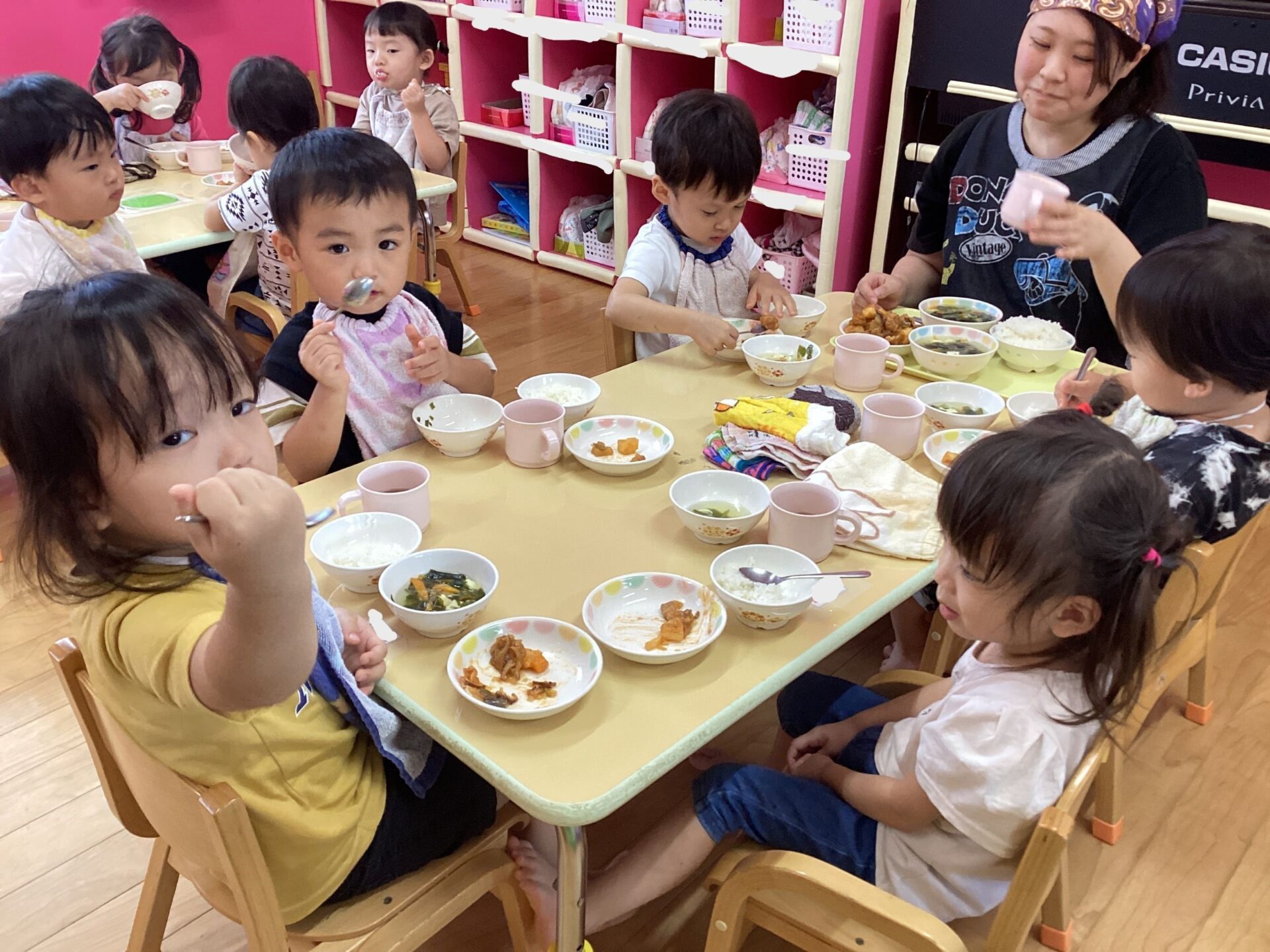 ちょっぴり苦手でも、今日は完食できる子や、「1つ(玉ねぎ1切れ)頑張った!」と、教えてくれる子もいましたよ🥰もちろん、おかわりをしてモリモリ食べる子も💕