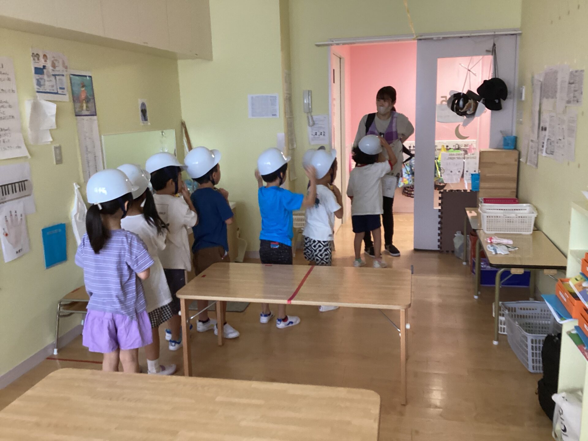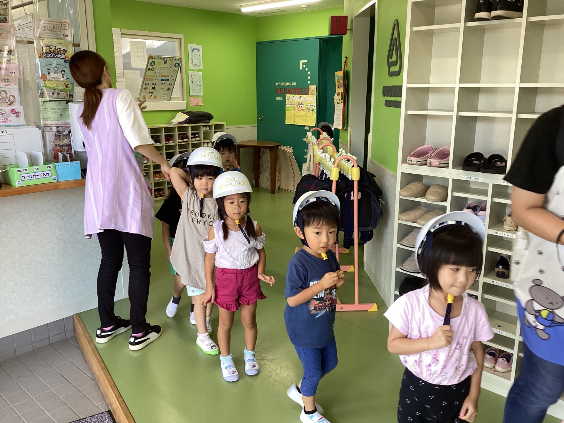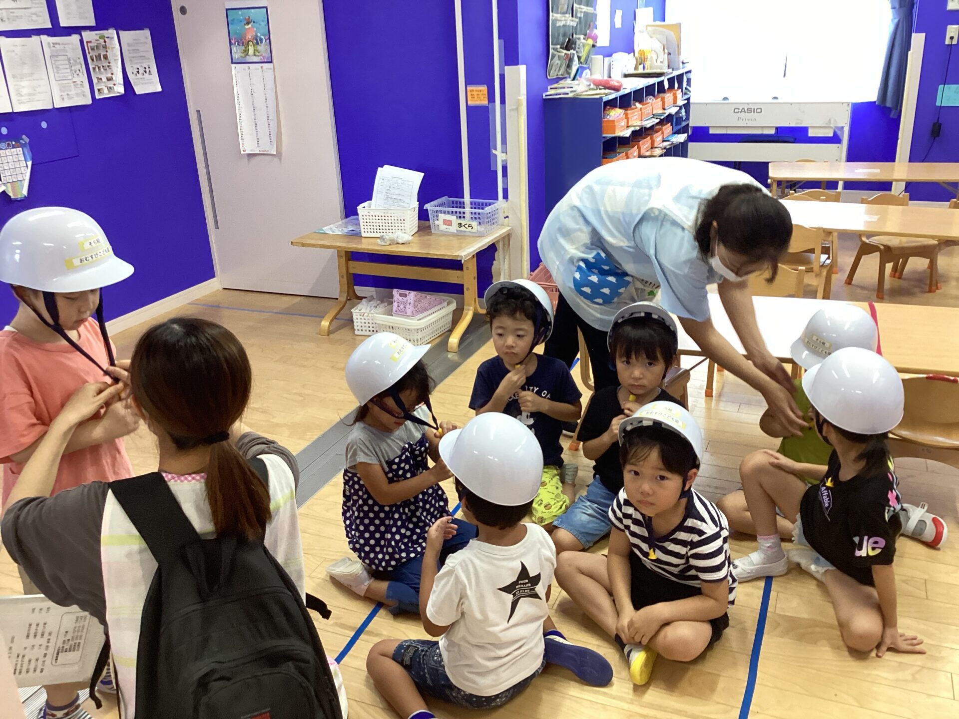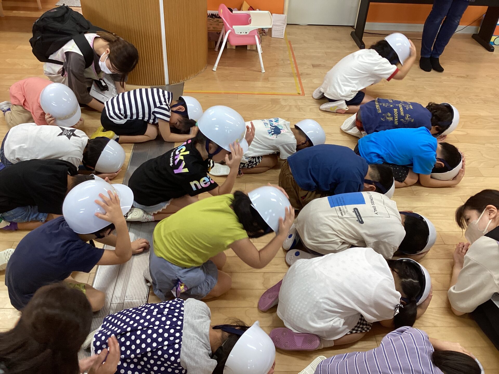 子ども達の頭を守ります。