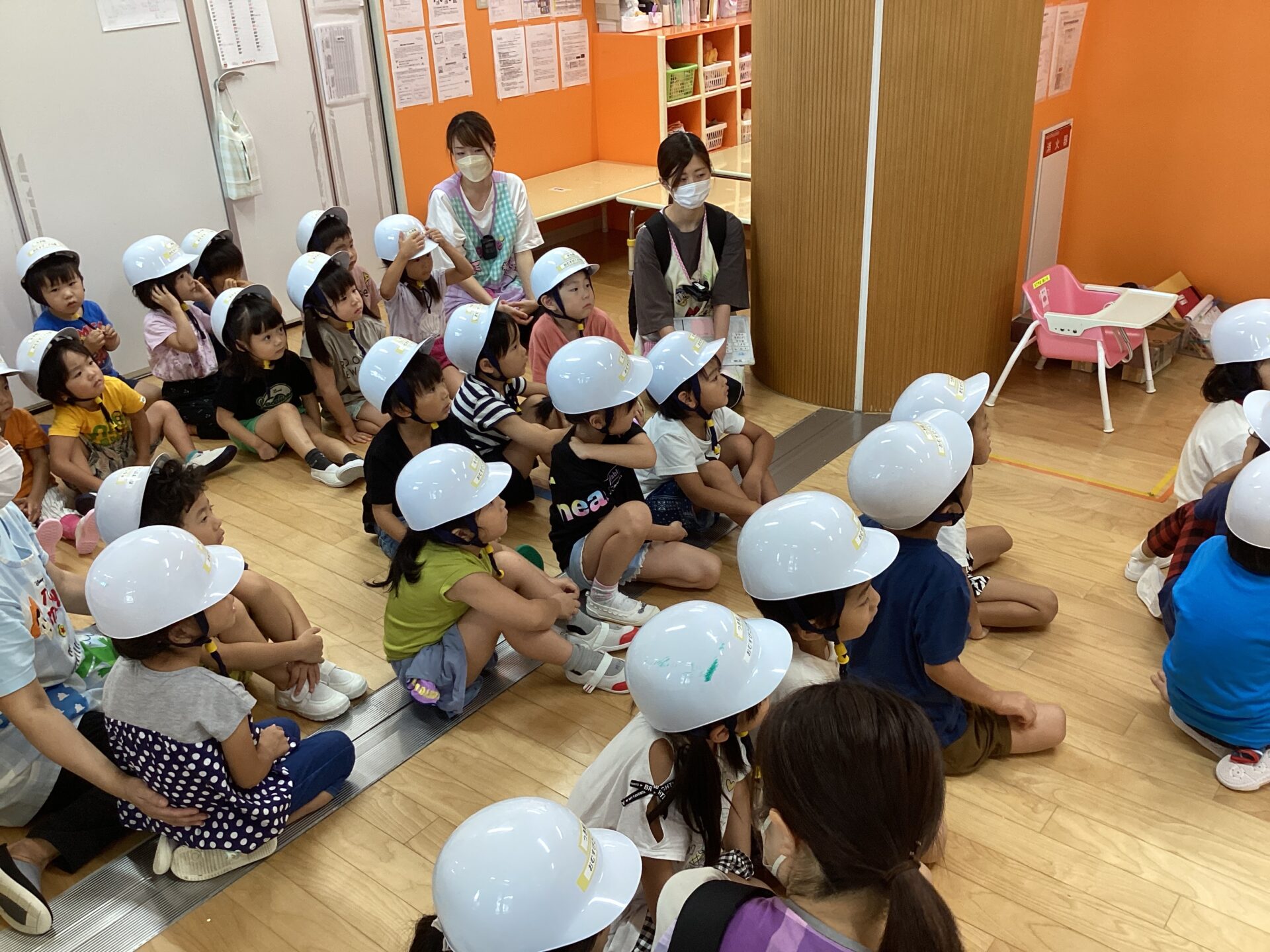 またびっくりして涙がでる子もいましたが保育者話をしっかり聞いて身の安全を確保します!