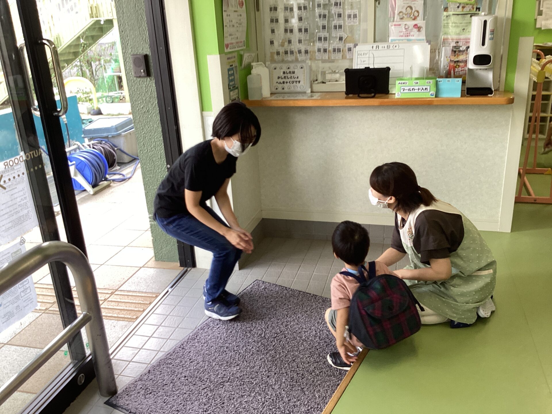 さて、園児玄関前では参加頂いた保護者の方が続々といらっしゃいました。