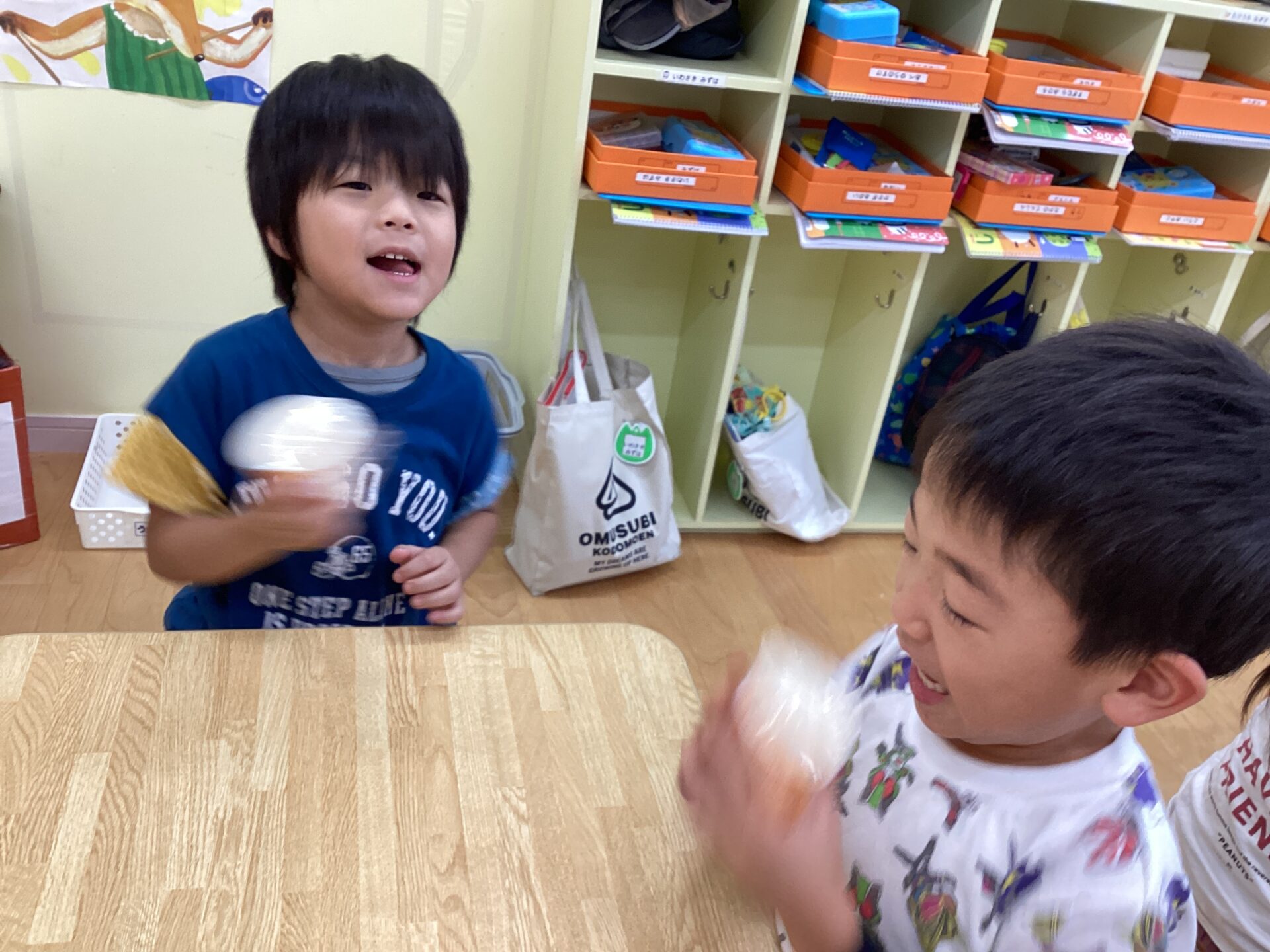 午睡後で寝ぼけまなこの子どもたちも、シャカシャカすると楽しくてすっかり目が覚めていました😁