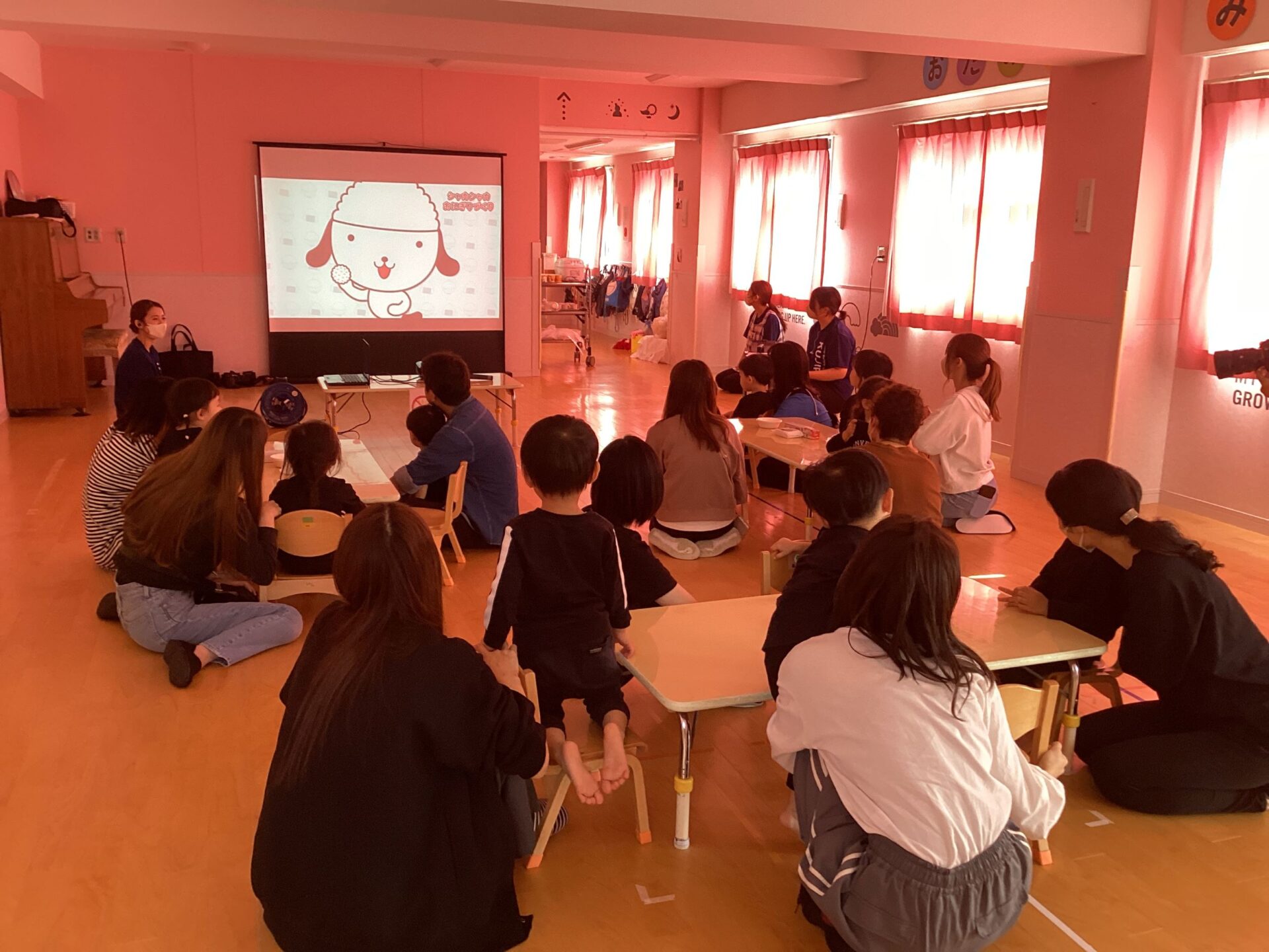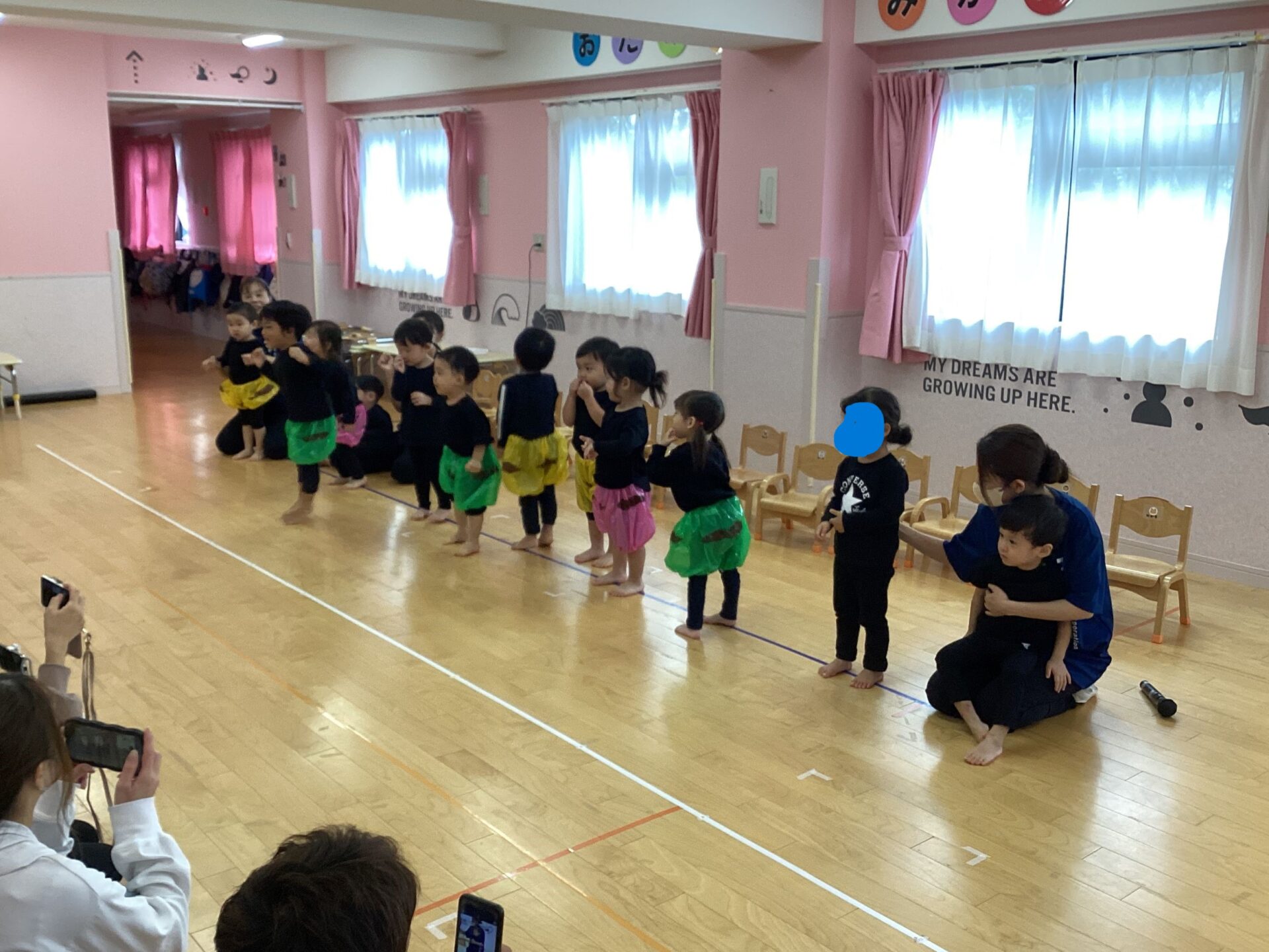 ใใใใกใ็ฎใฎๅใซใใฆใใญใใญใใชใใใใ่ชๅใฎๅๅใ่จใฃใใใใ่ฟไบใใใใใใๅญใฉใใใกใใใฟใชใใฉใใฎ้ณๆฅฝใๆตใใใจใๅฐใใใค็ทๅผตใ่งฃใใฆใใใใใงใ้ณๆฅฝใซๅใใใฆใธใฃใณใใใใใใใใใ่ฆใฆ็ฌ้กใซใชใฃใใใใฆใใพใใใ๏ผ๏ผ