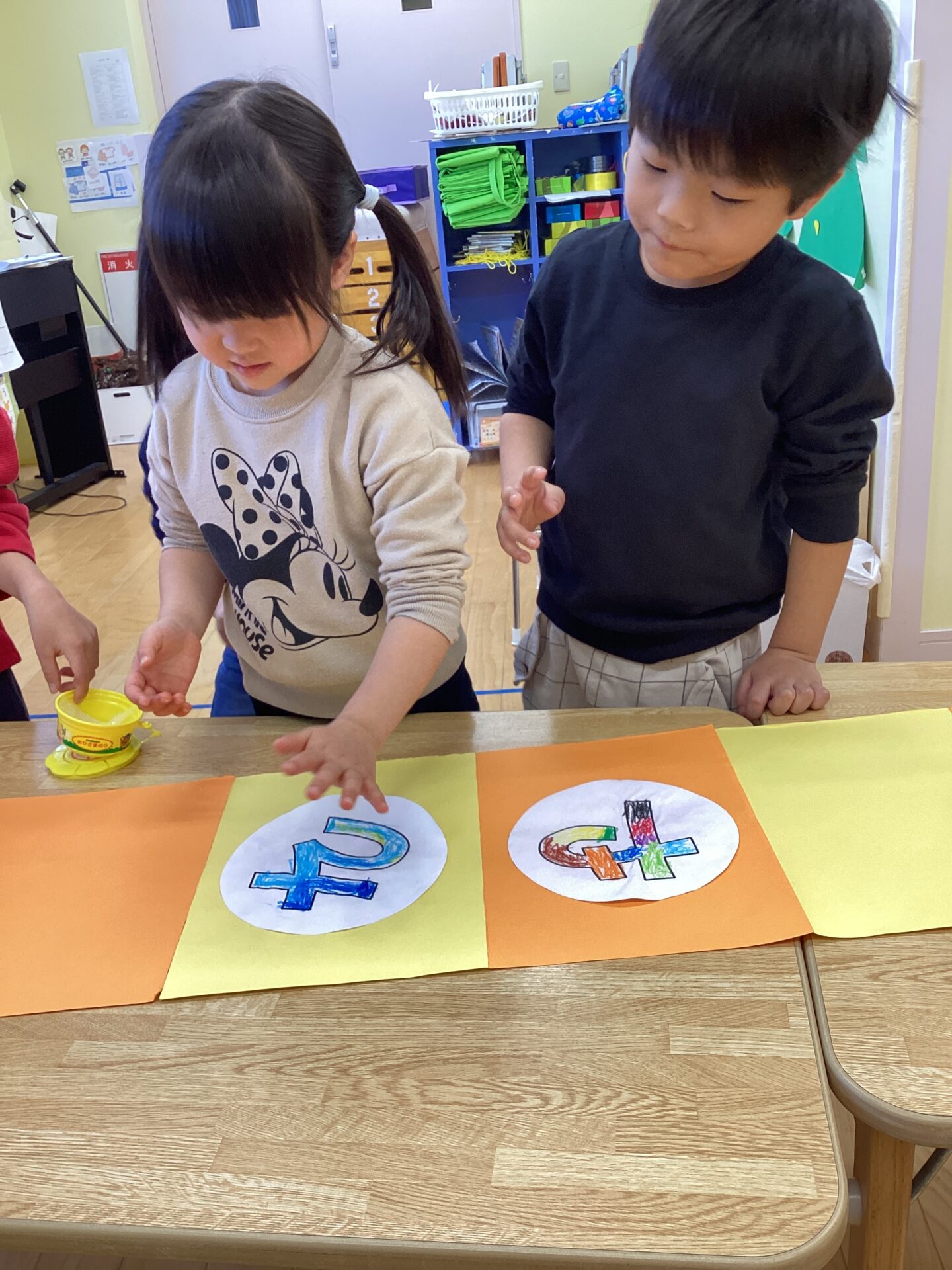 文字をみんなで相談しながら並び替えて貼りましたよ!