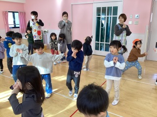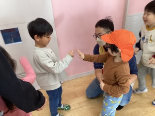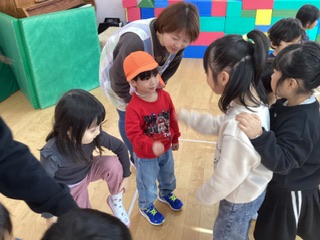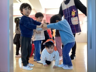 お部屋で遊んだ後は、ホールで『じゃんけん列車』をしました🎵