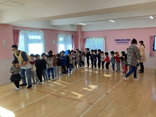 そこでおむすびこども園のゆきぐみさん(3歳児)とそらぐみさん(4歳児)と一緒に交流会をしましたよ✨