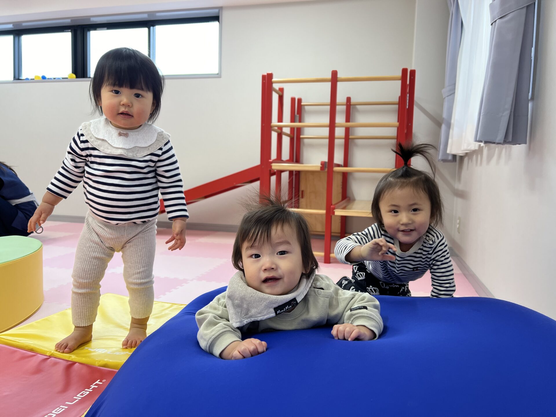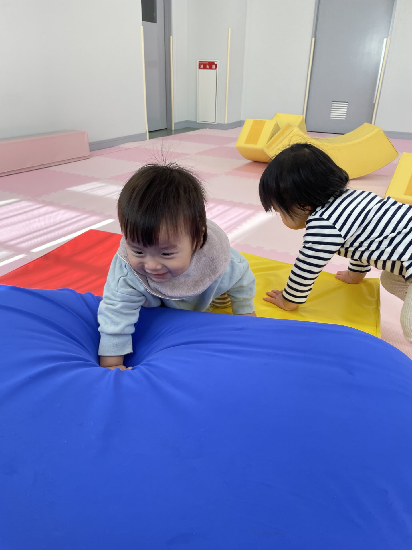 柔らかな感触が子ども達も大好きでハイハイで登ったりジャンプマットから勢いよく乗ったりして楽しんでいます😊