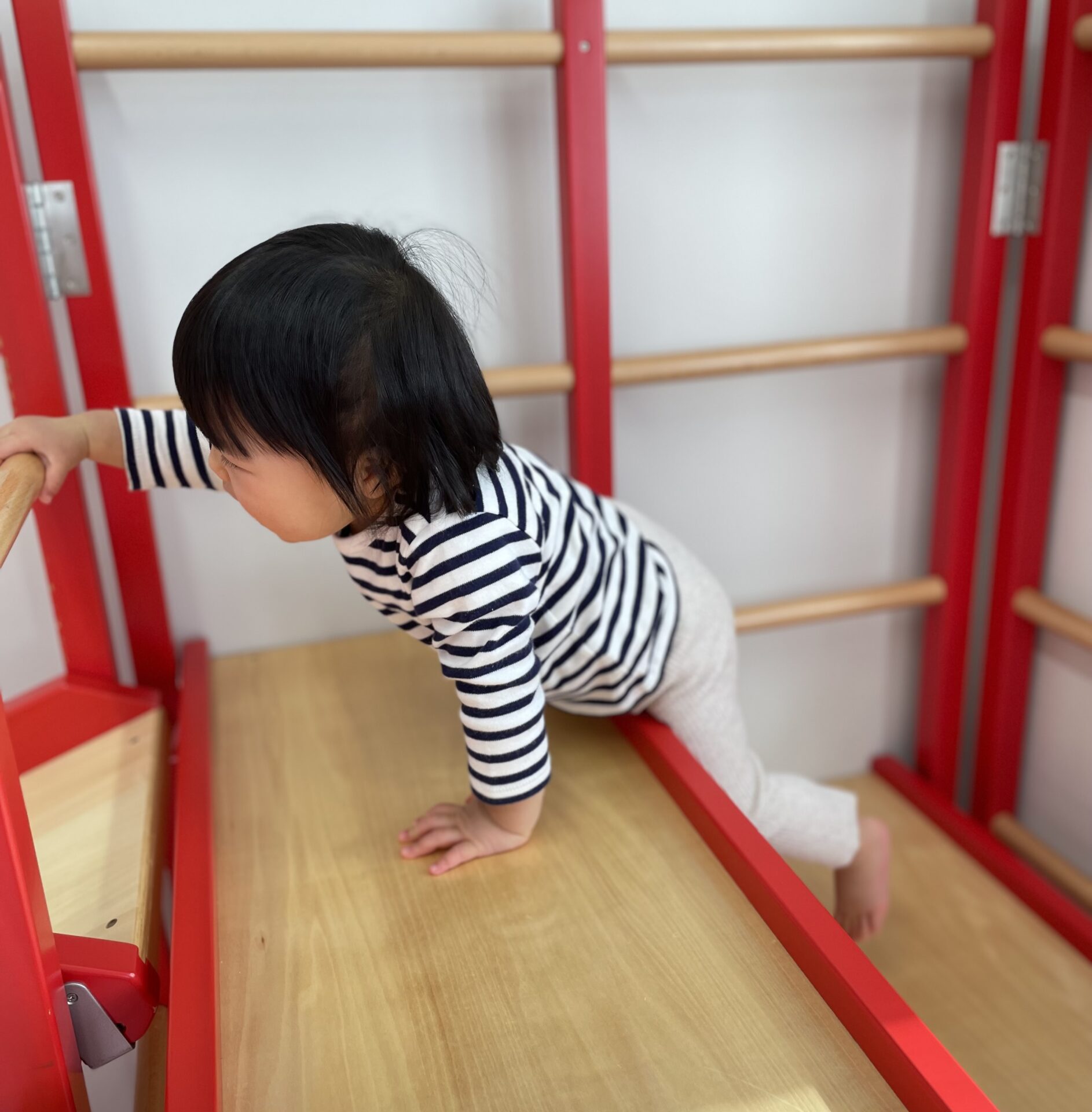低月齢のお友だちもジャングルジムに興味があり、つかまり立ちをしたり、中に潜って探検したりしています✨