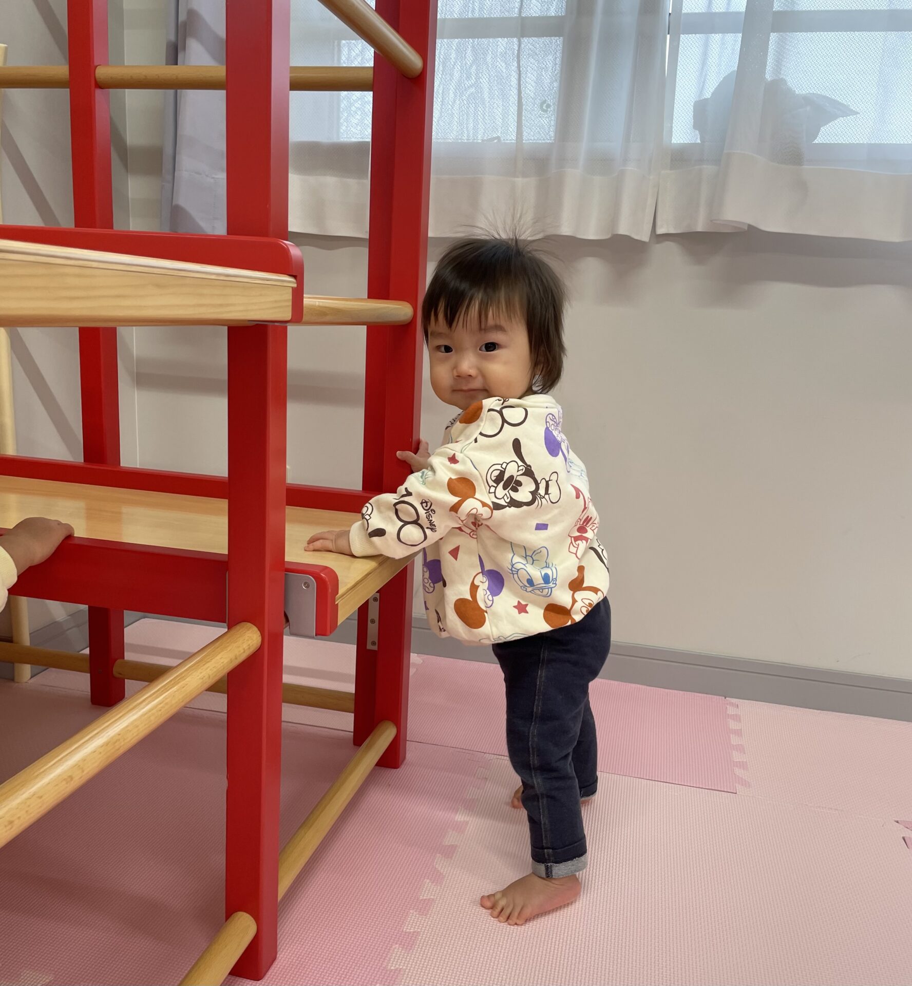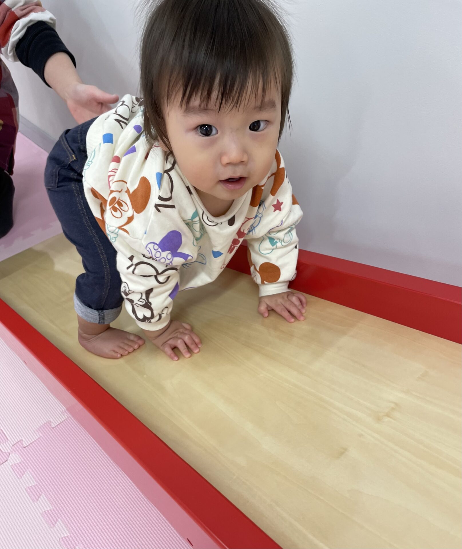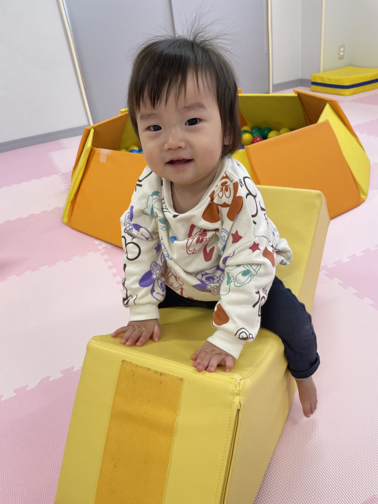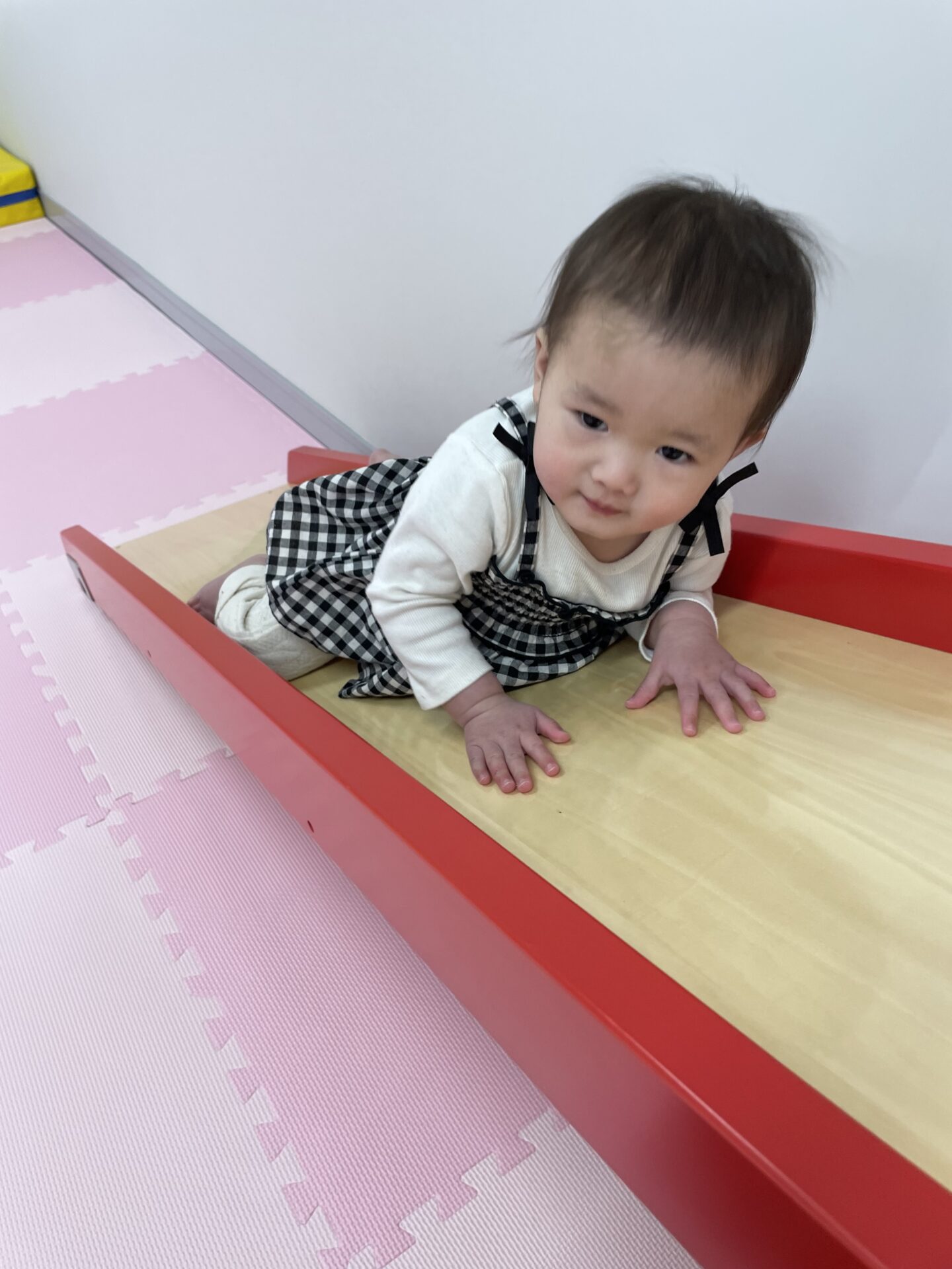 遊具だけではなく、走ったり、ハイハイで”待て待てあそび”をしたりと、広い室内をのびのびと動き回ることも好きな遊びのひとつです♪