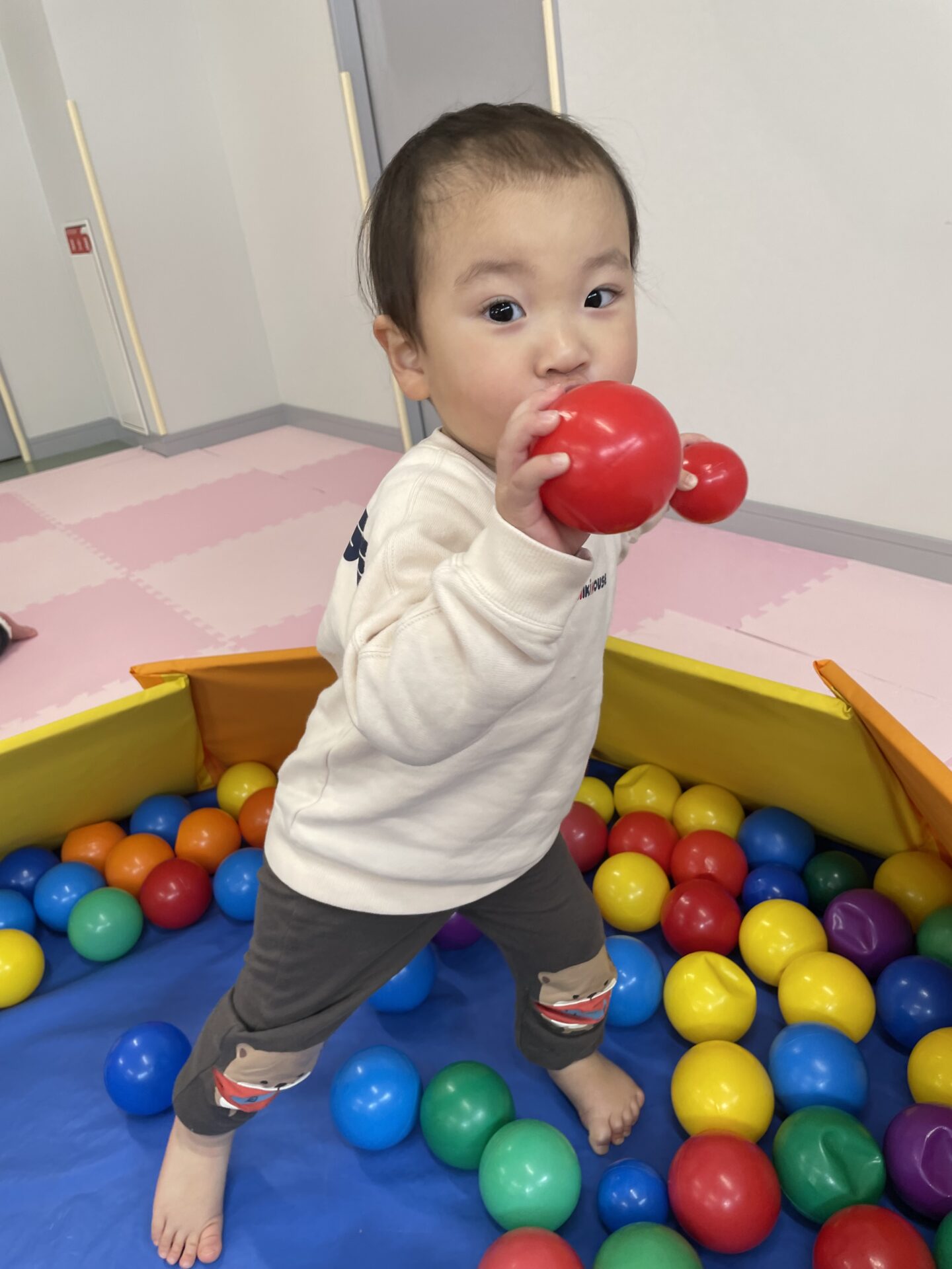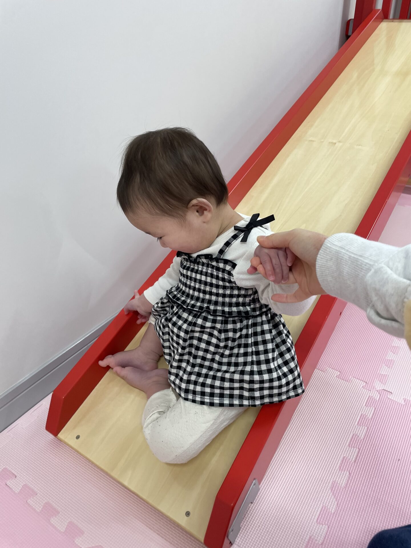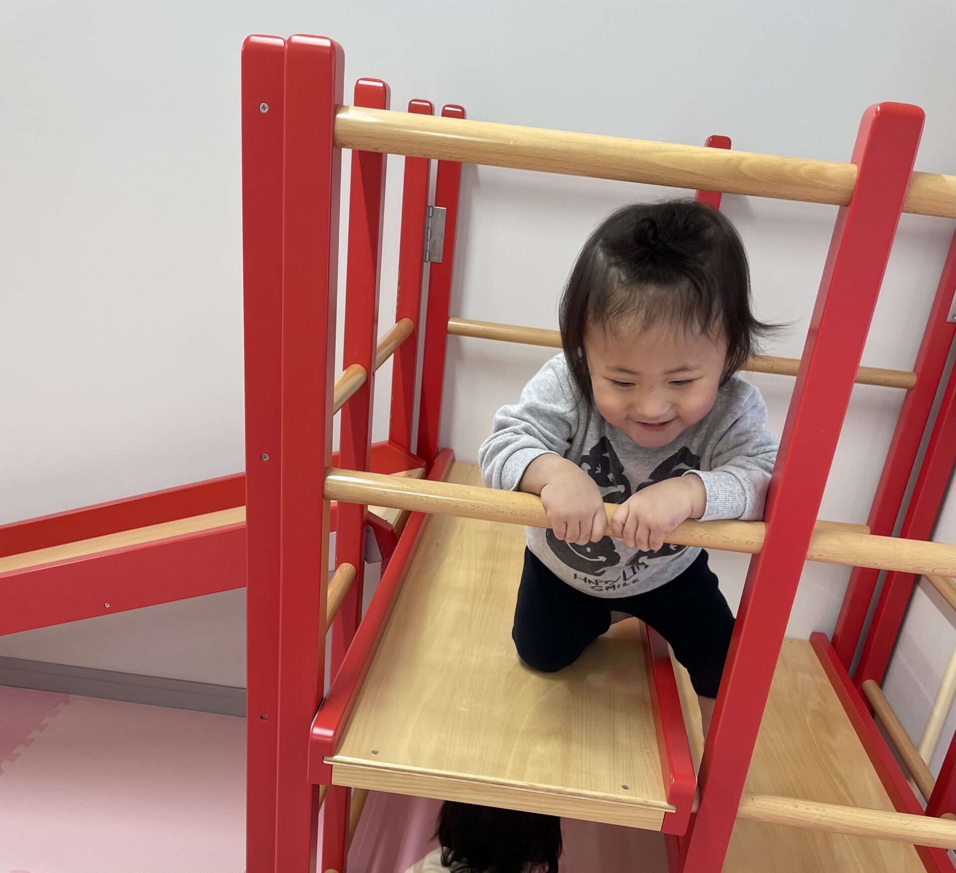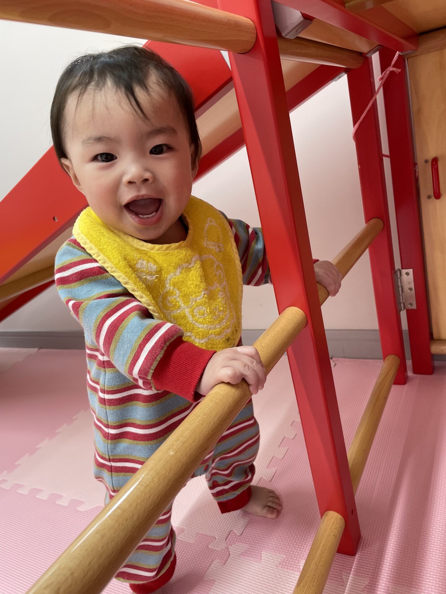 遊具だけではなく、走ったり、ハイハイで”待て待てあそび”をしたりと、広い室内をのびのびと動き回ることも好きな遊びのひとつです♪