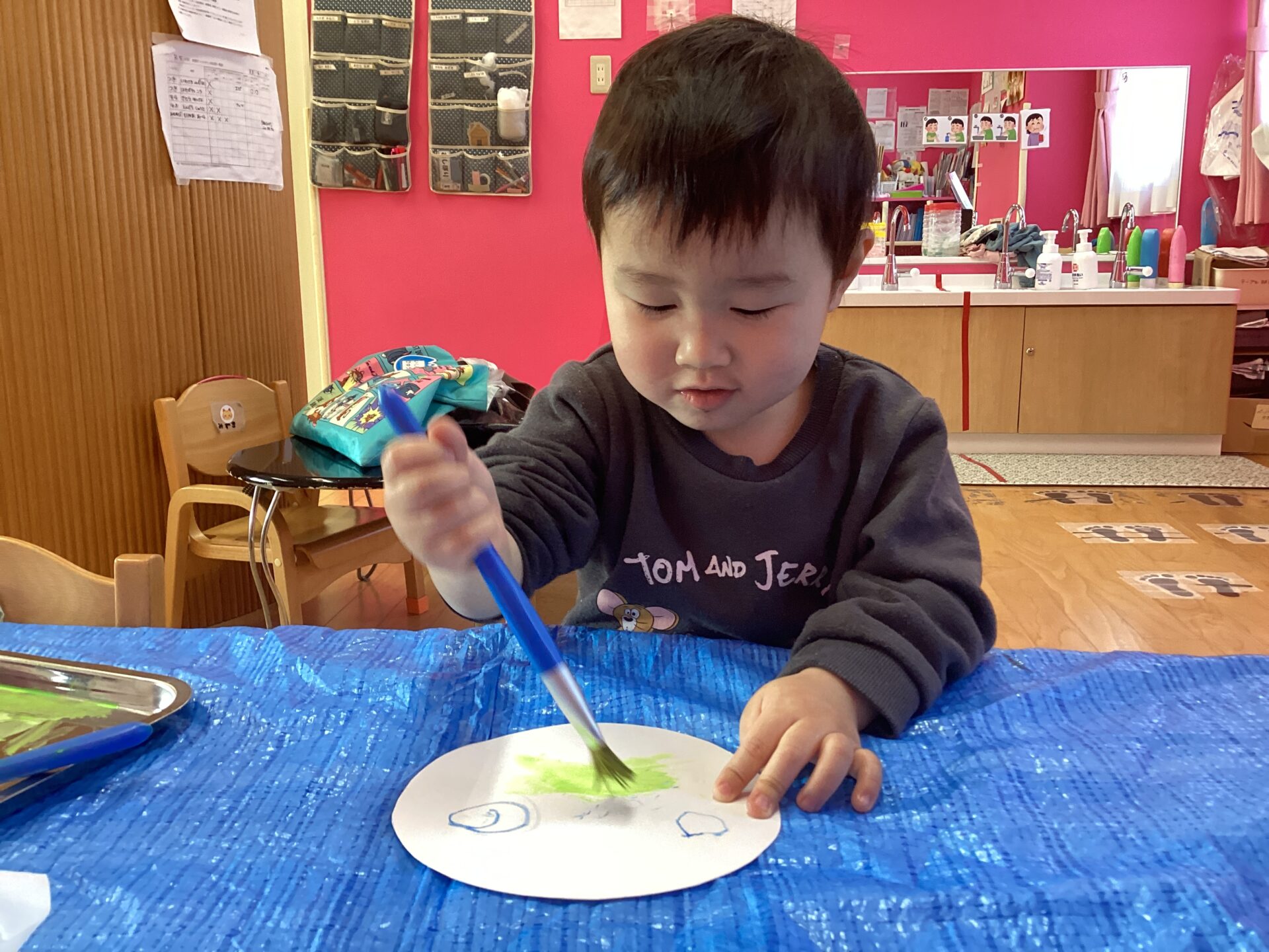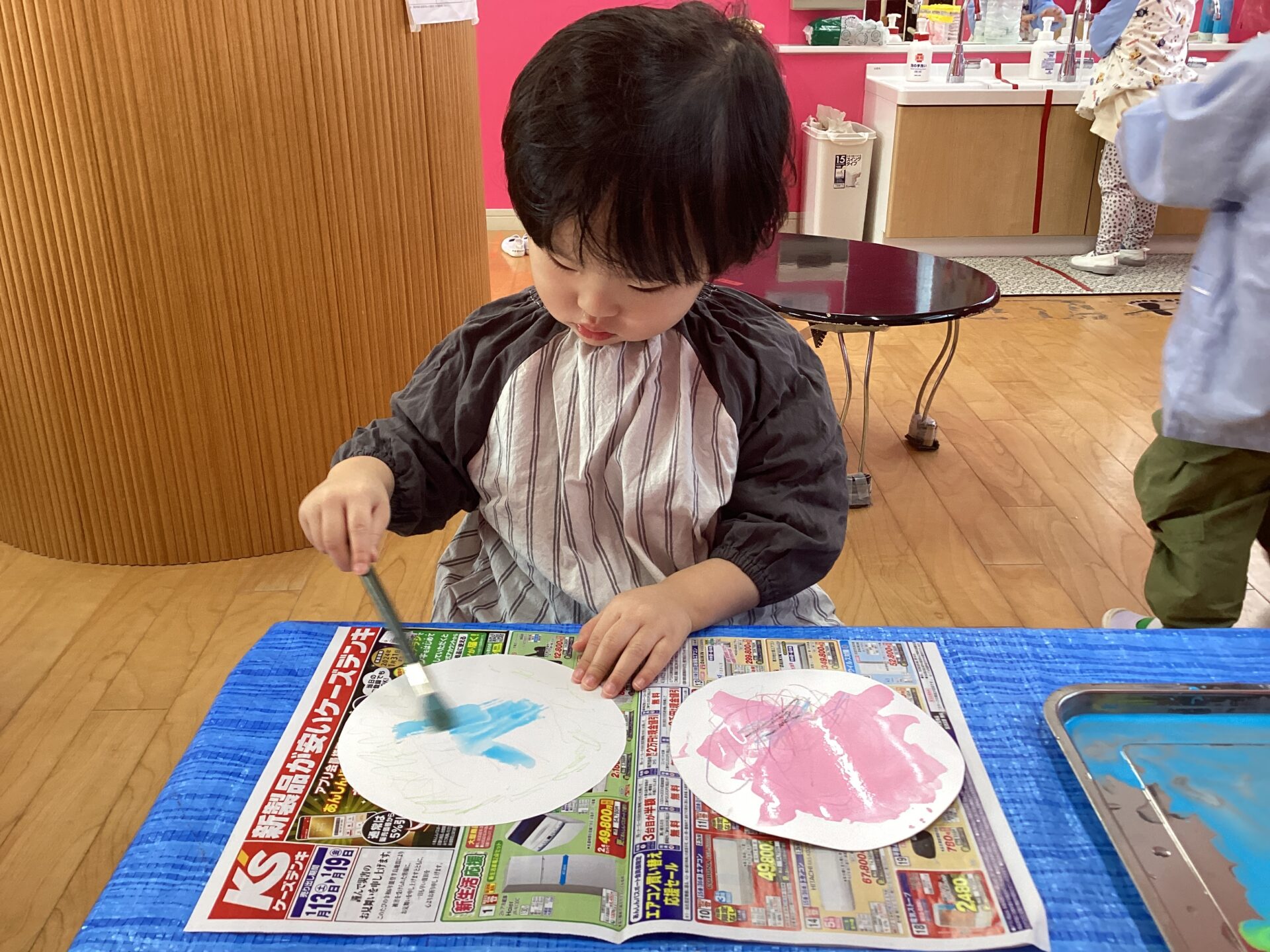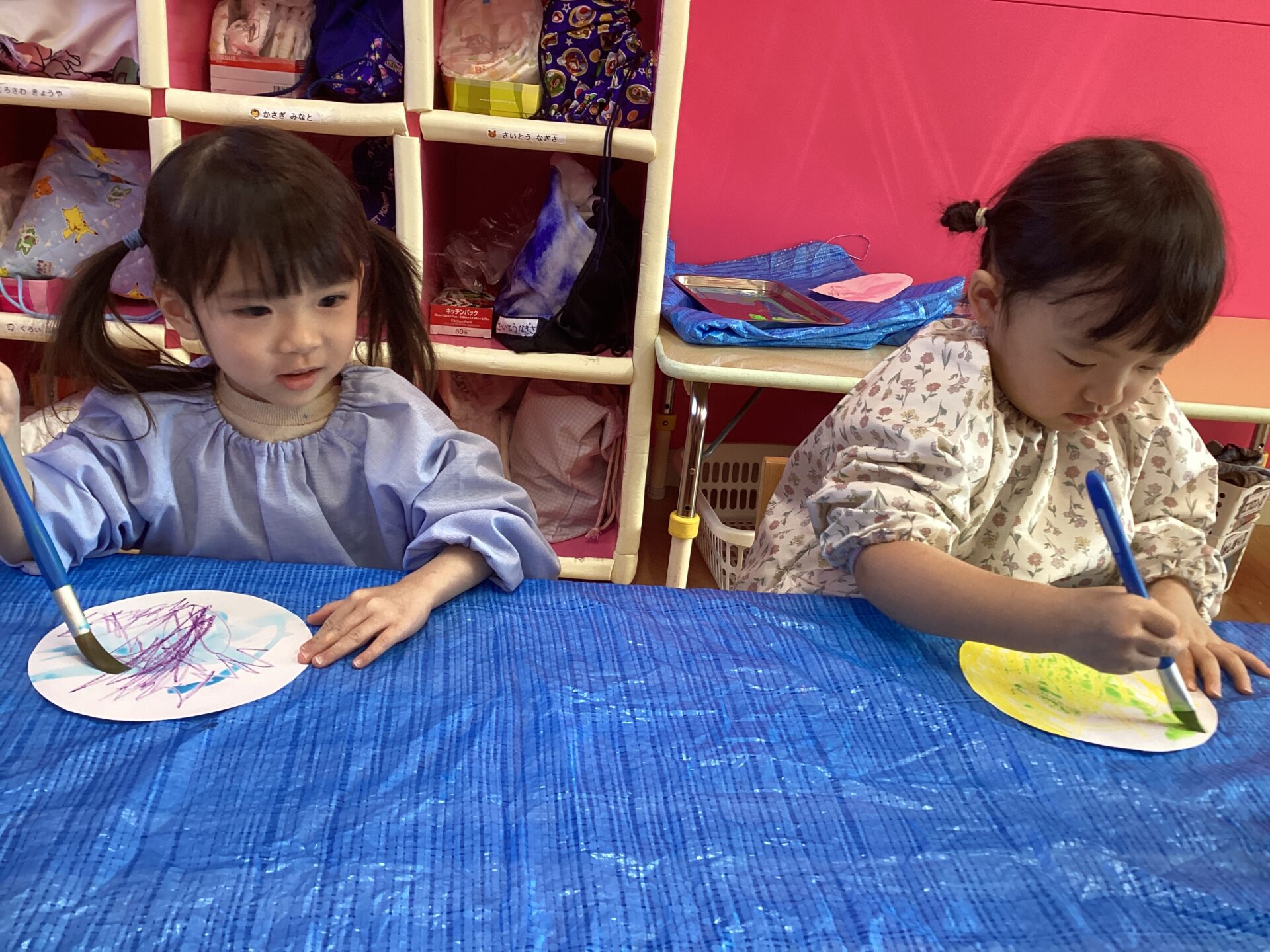 「わぁ〜すごい✨」や「きれいだね💕」と楽しそうに絵の具を塗っていましたよ!!