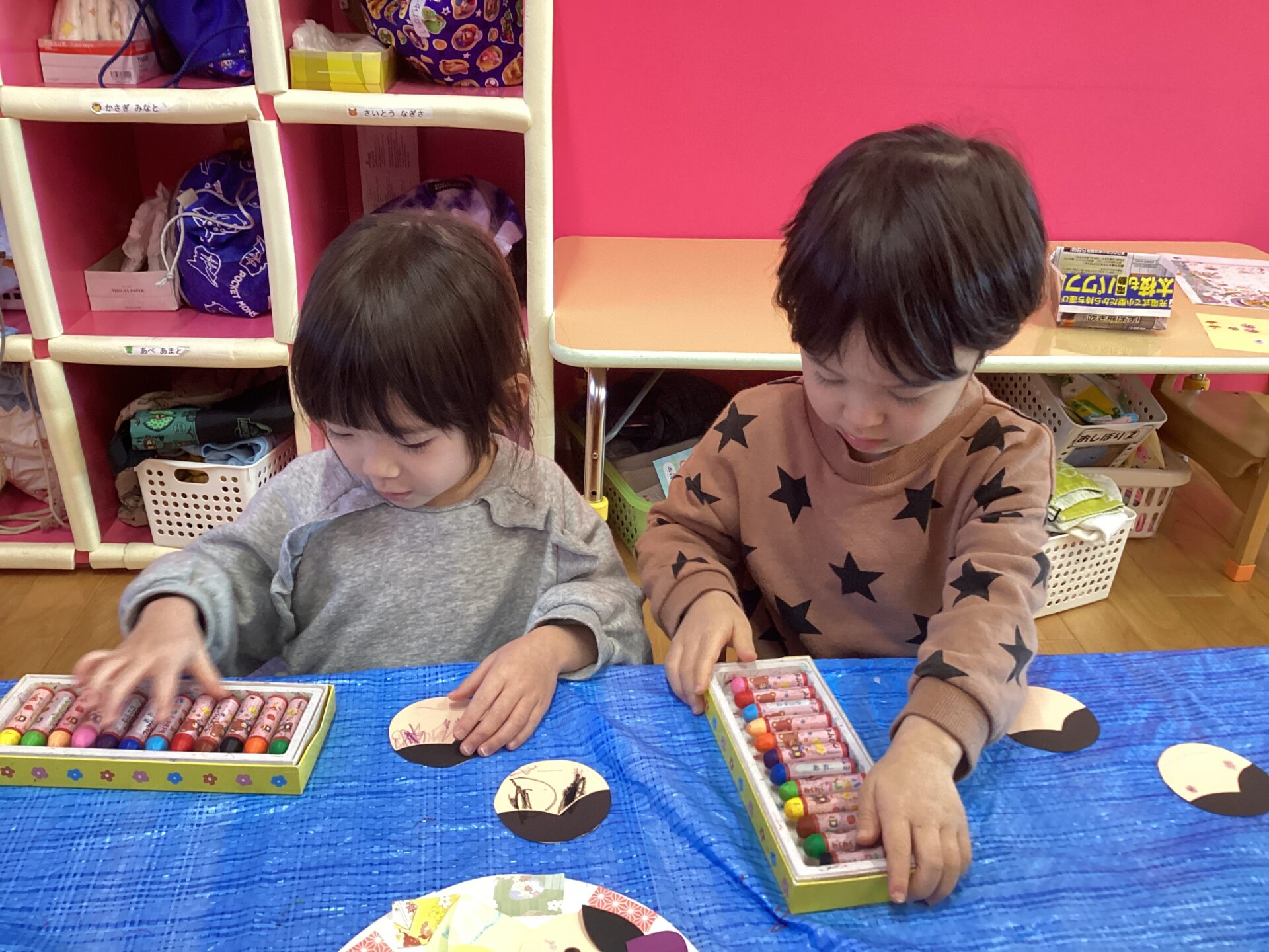 「女の子はピンクにする〜」や「青だからこれは男の子!」と工夫しながら着物の模様を描いていましたよ😊
