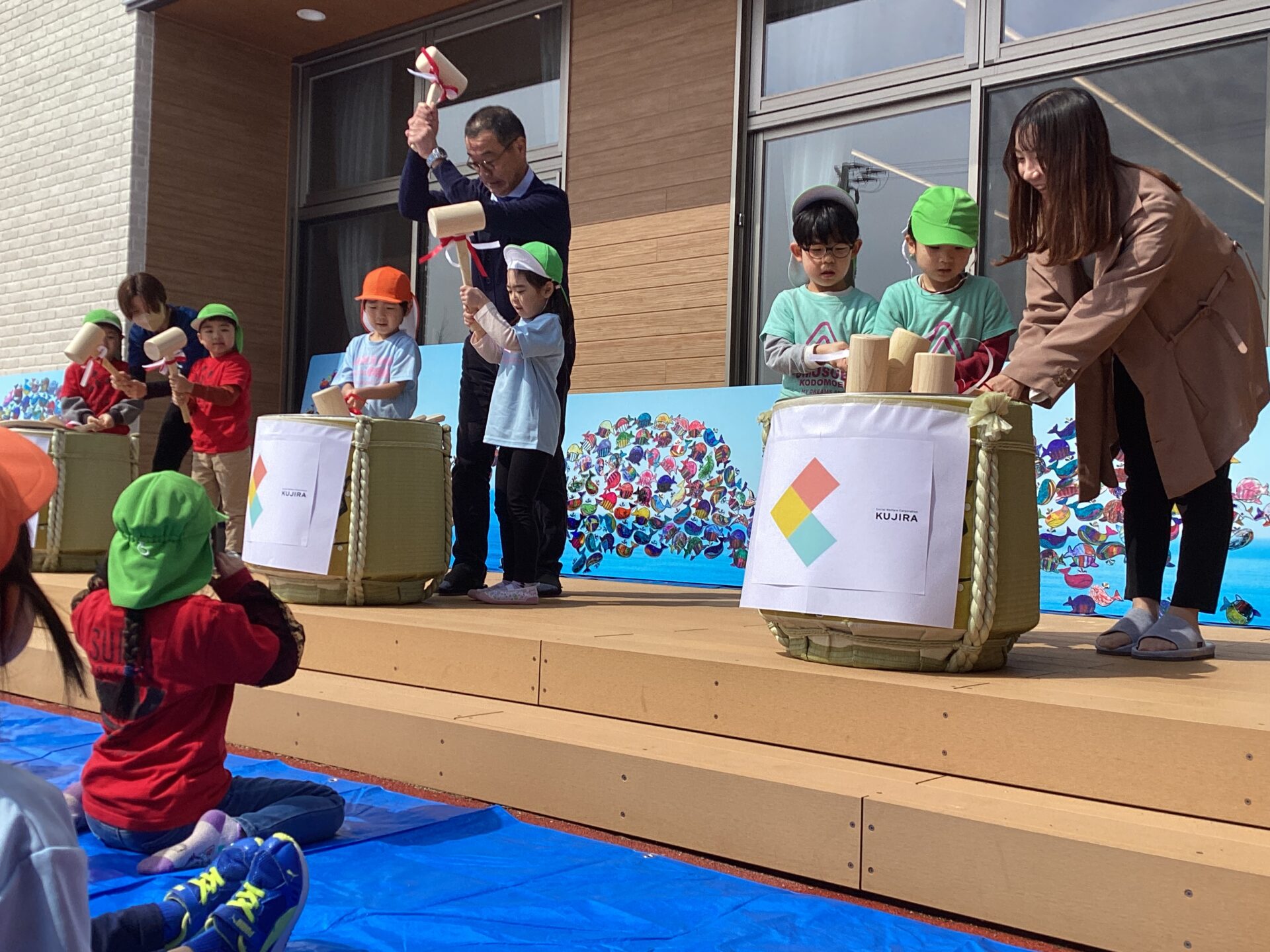 すいか保育園(西区姉妹園)とおむすびこども園、えだまめこども園の3園が集まり完成をお祝いしました✨