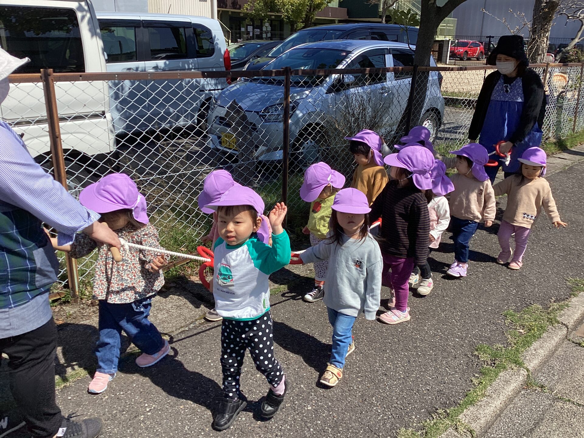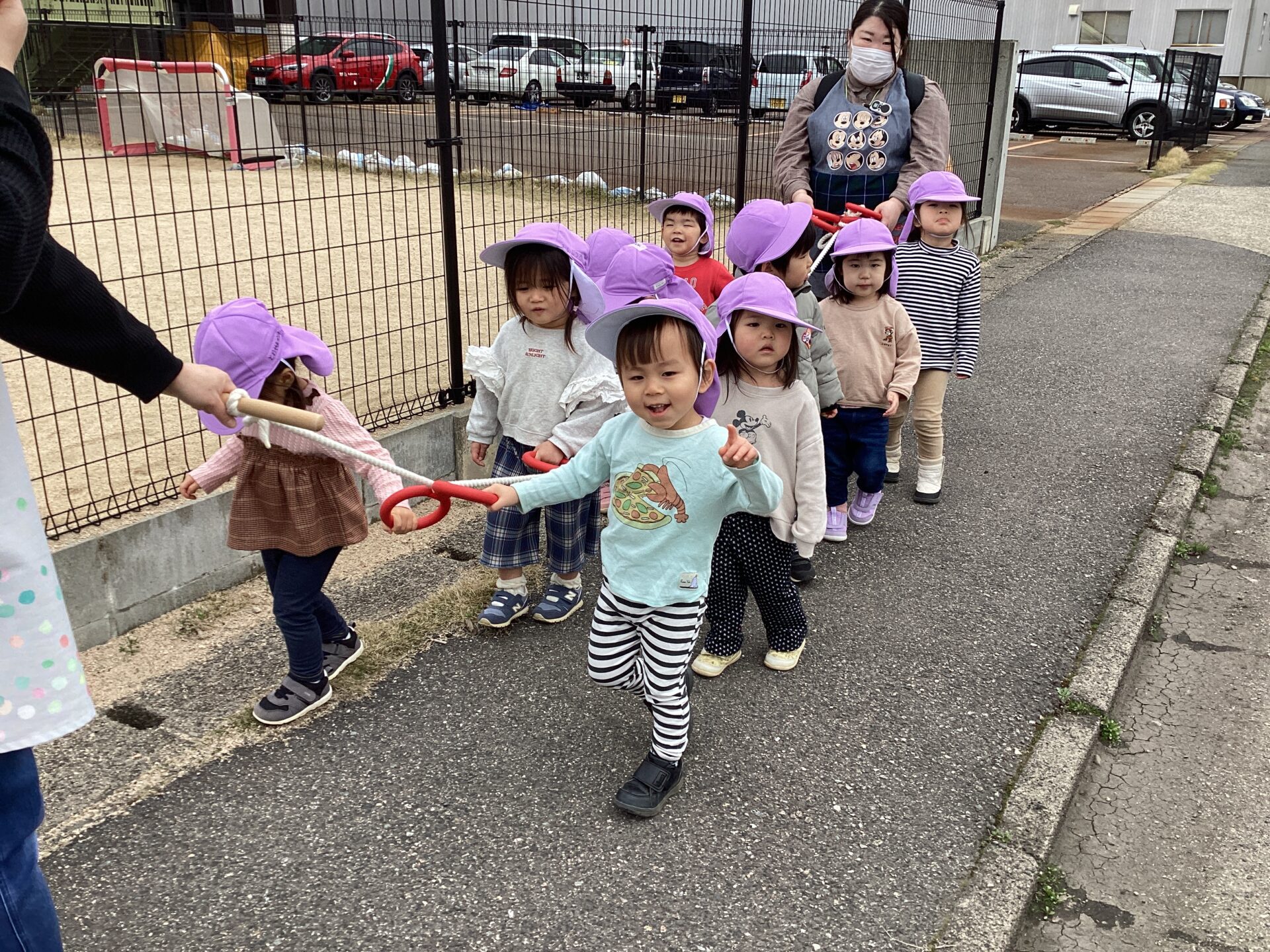 昨年度までは散歩カートに乗ったり、保育者と手を繋いで散歩をしていましたが、