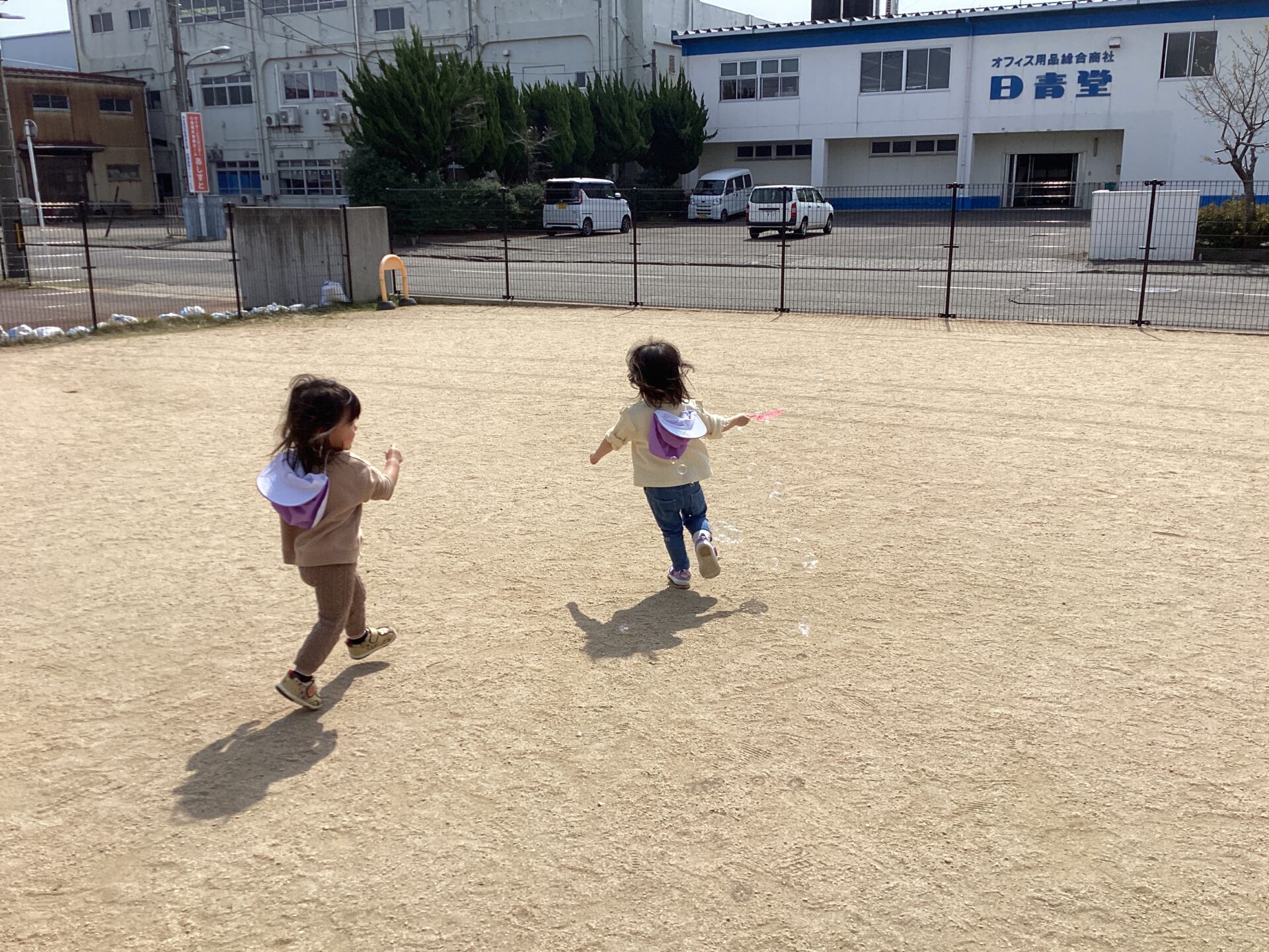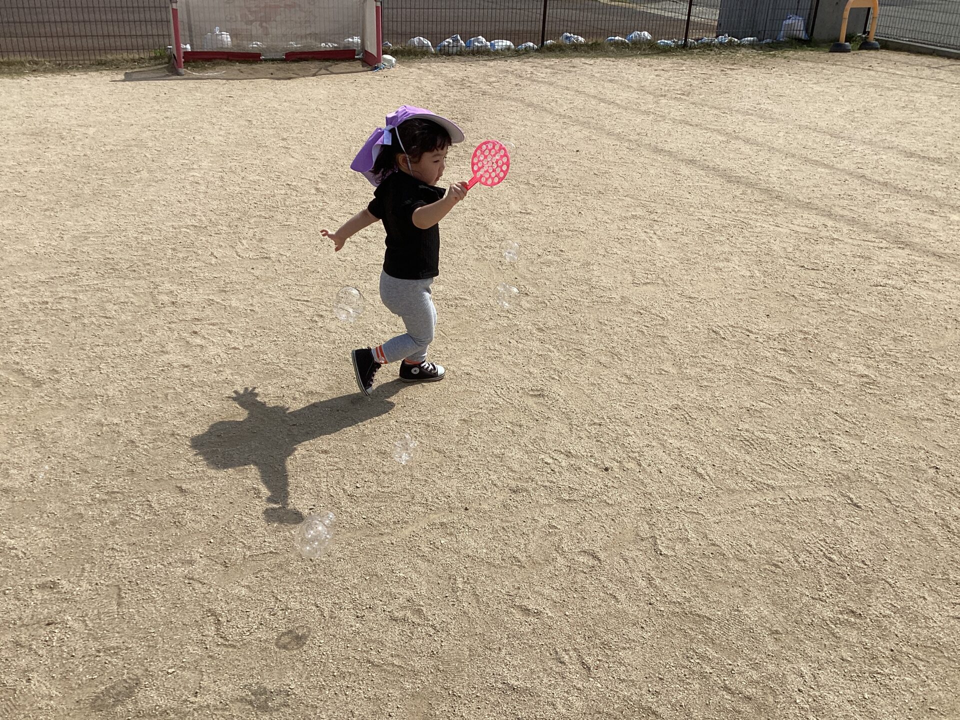 しゃぼん玉を追いかけて走り出しています😆