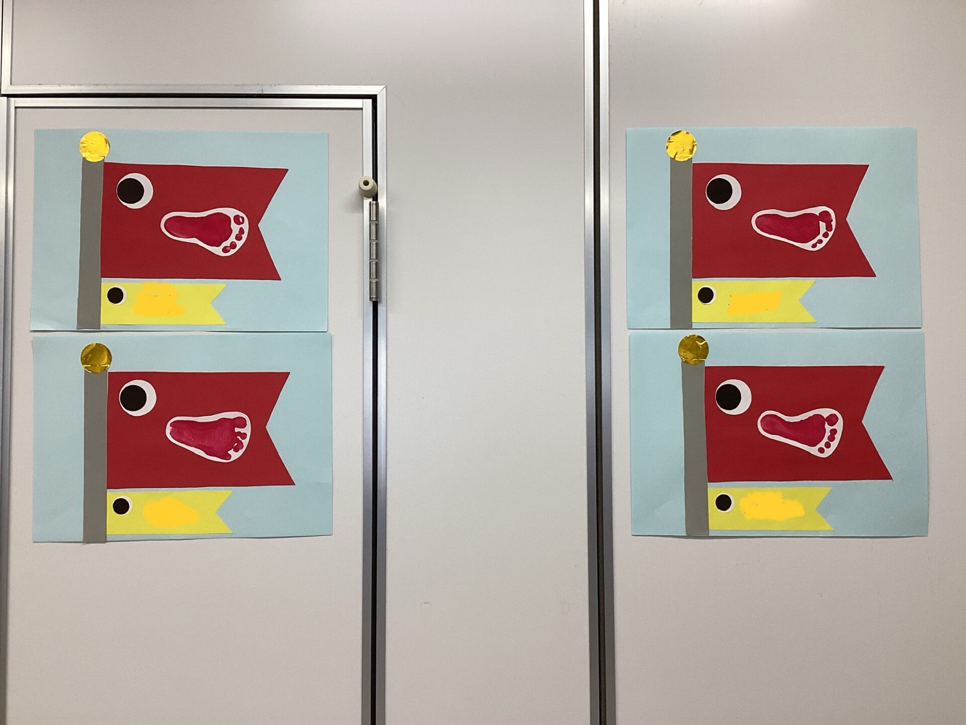 子どもたちのこいのぼりはお部屋に飾り、5月2日に持ち帰ります。