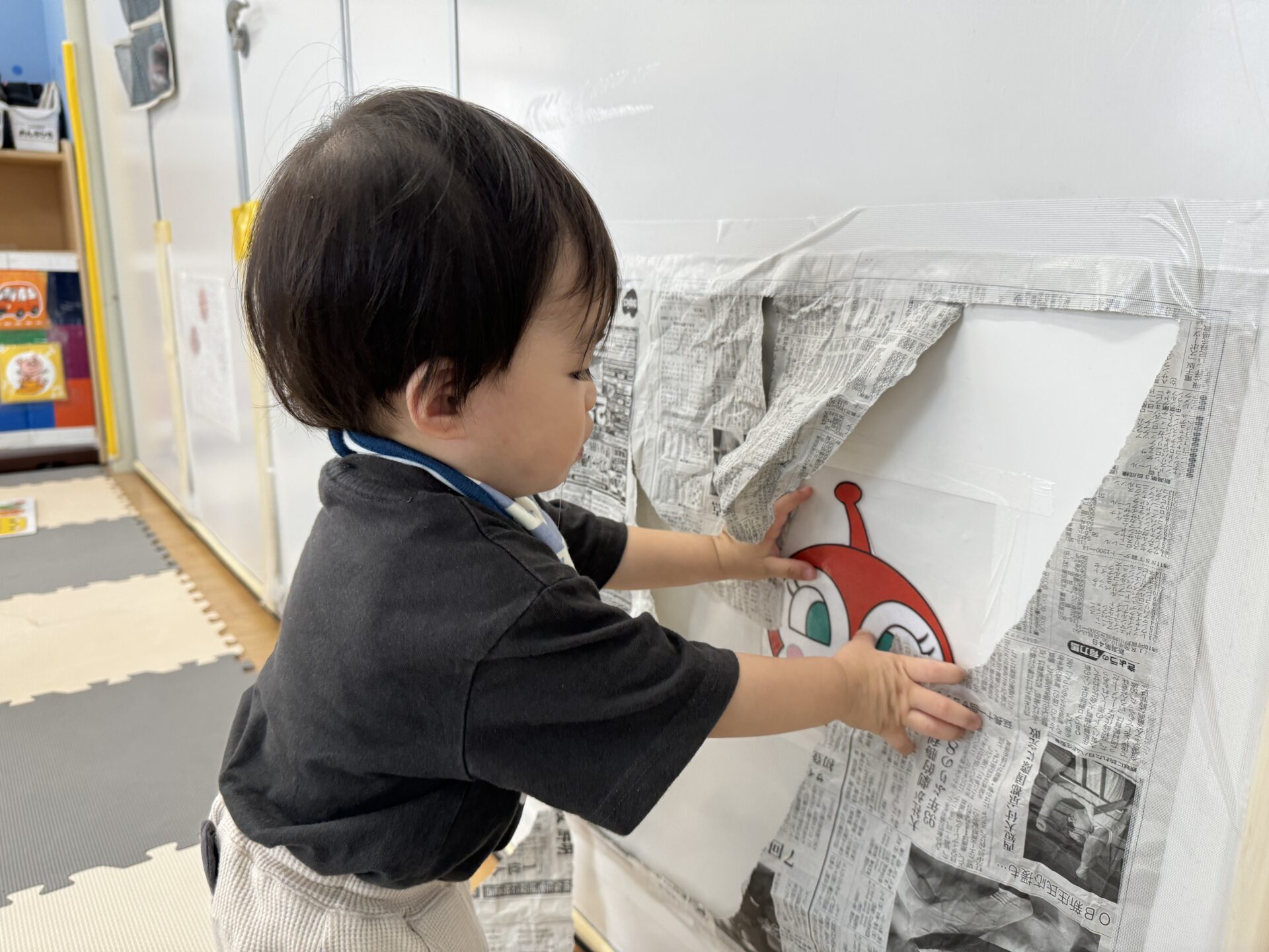ちなみに壁に新聞紙を貼って破く遊びもしました!