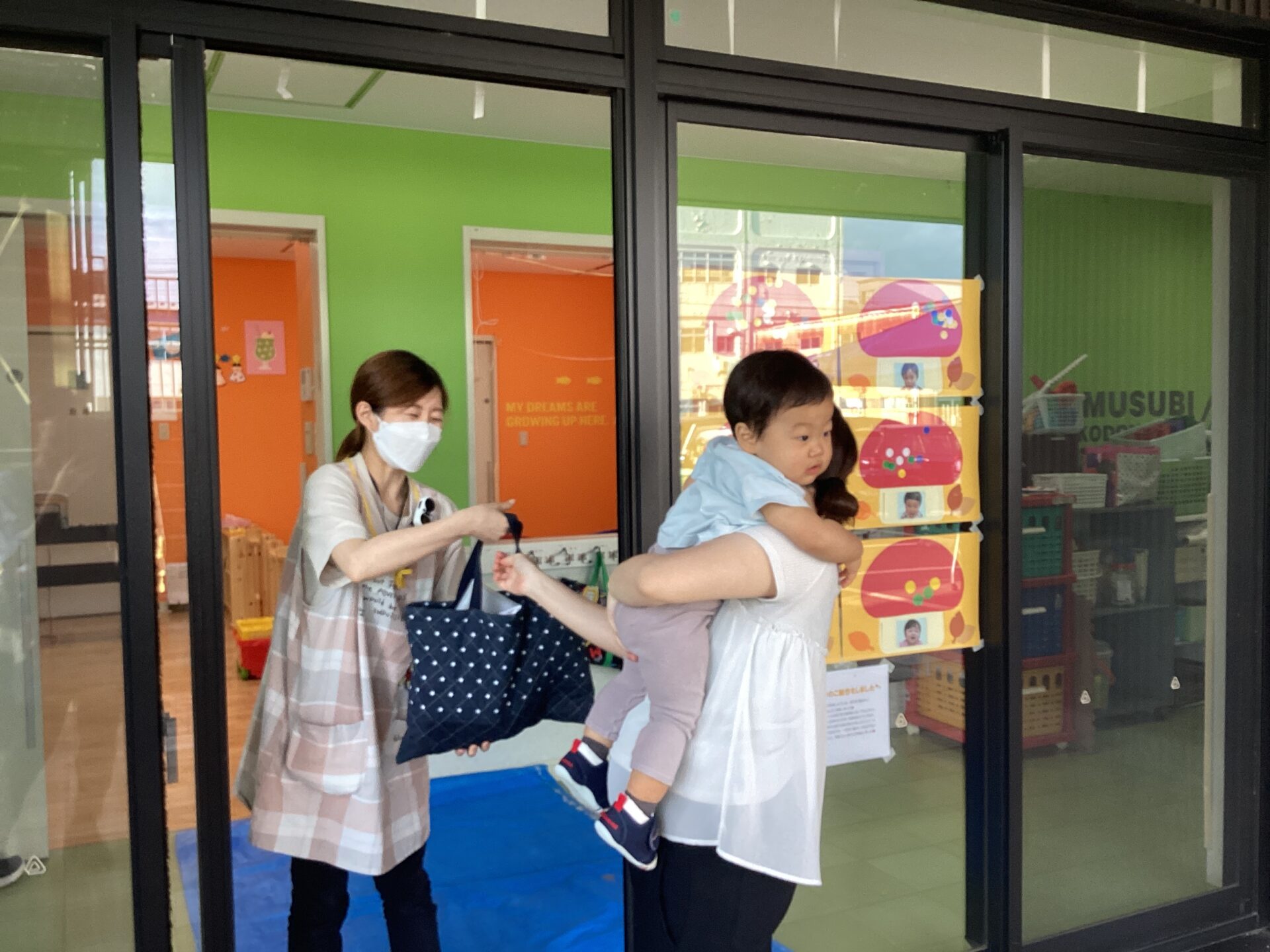 いつもと違うお迎えに、ドキドキした表情の子もいましたが、大好きなお家の方に会えるとにっこり😊