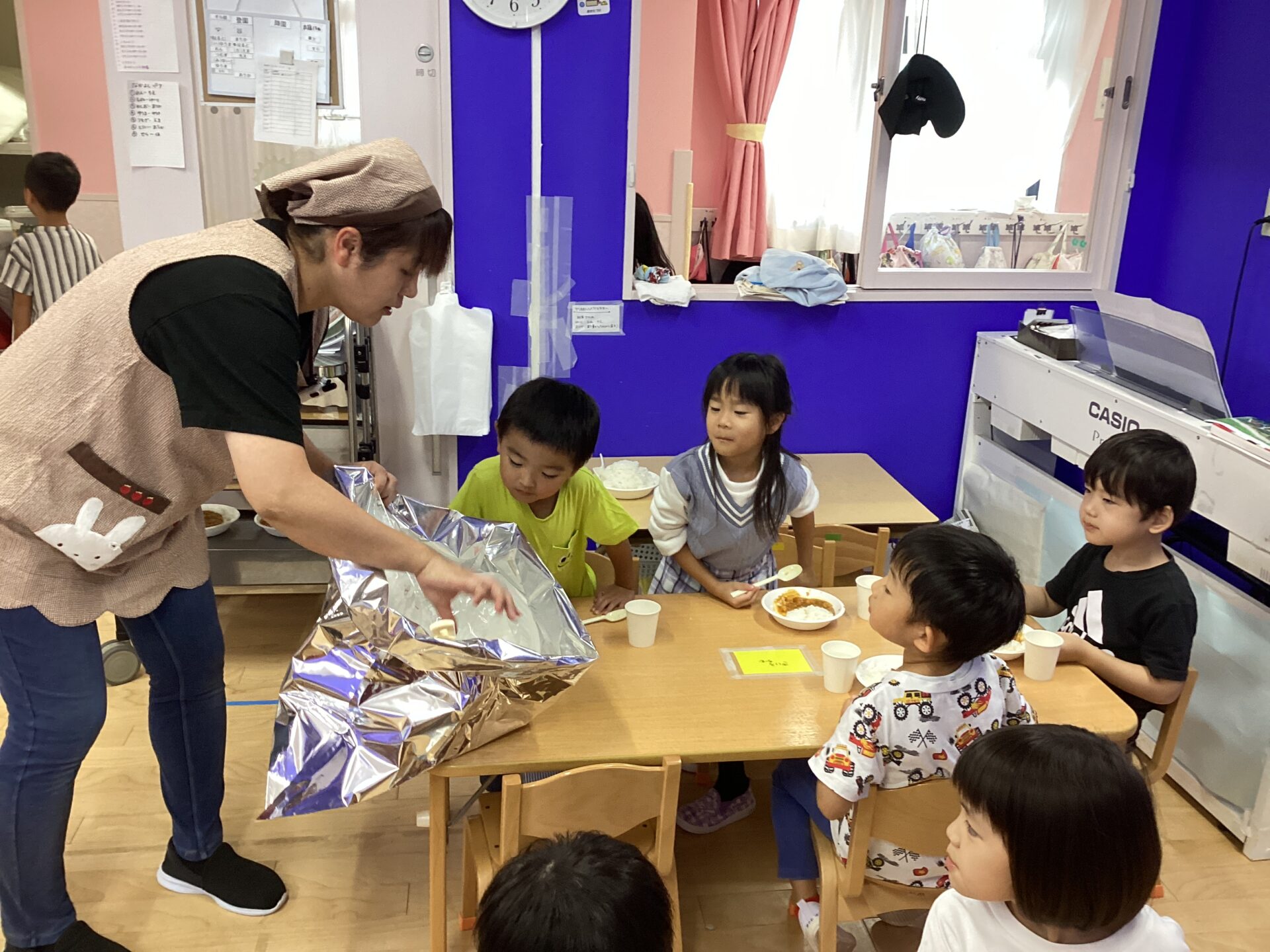 非常食は子どもたちが何かをするというより、職員が非常食の提供方法を確認したり、