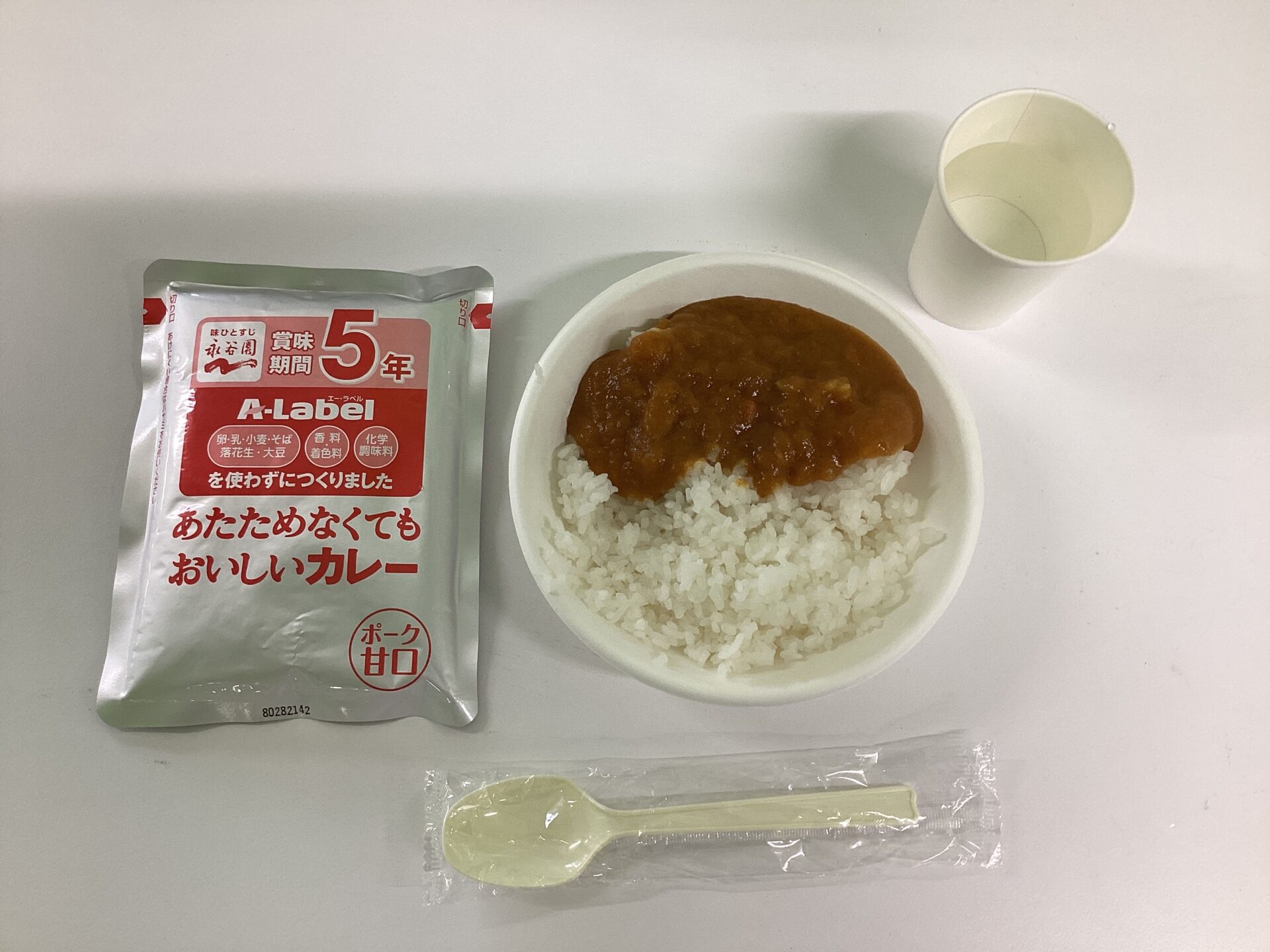 おむすびこども園には、災害に備えて非常食が常備されています。