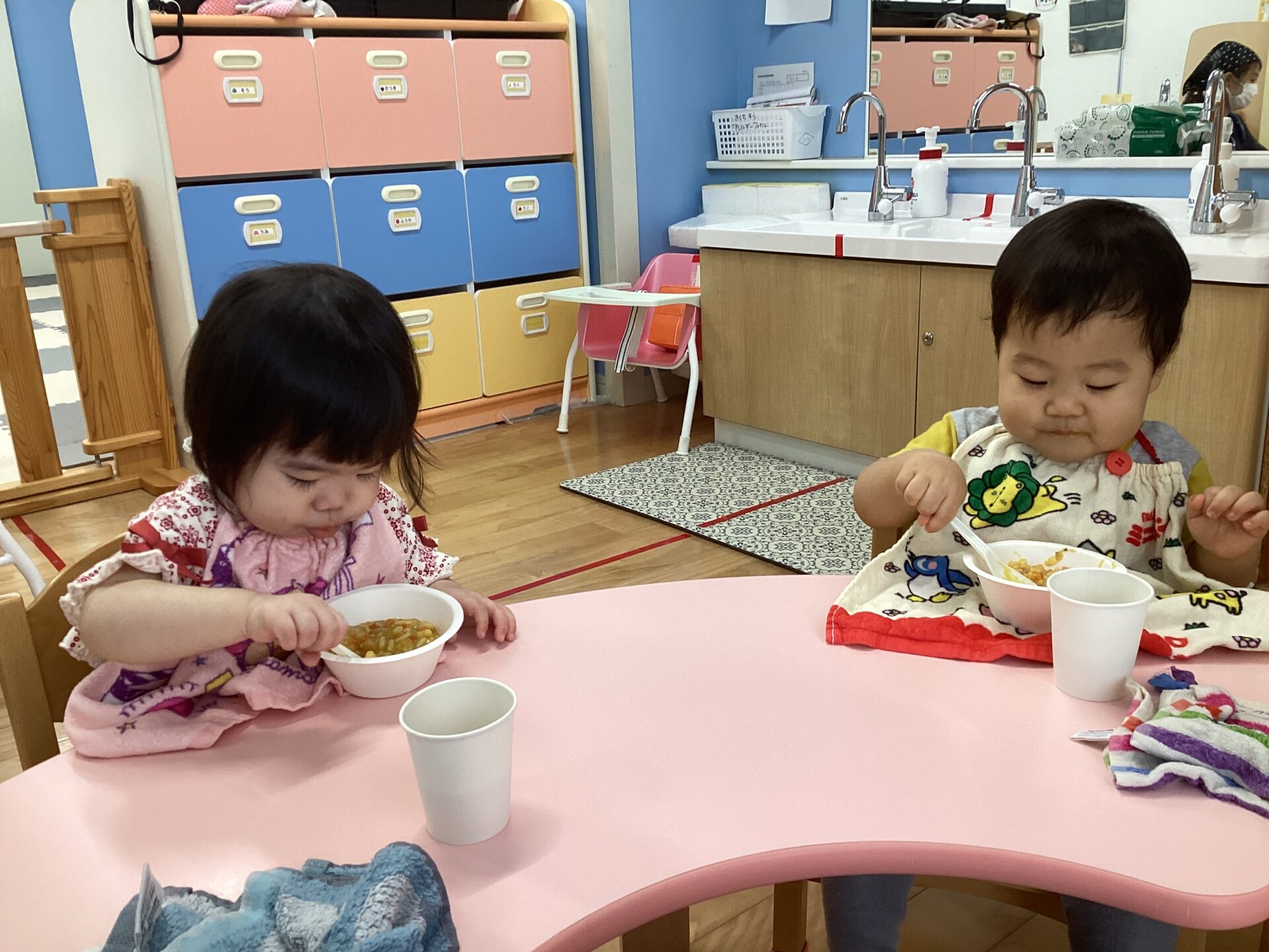 離乳食の子どもたちが食べられるものを揃えています。