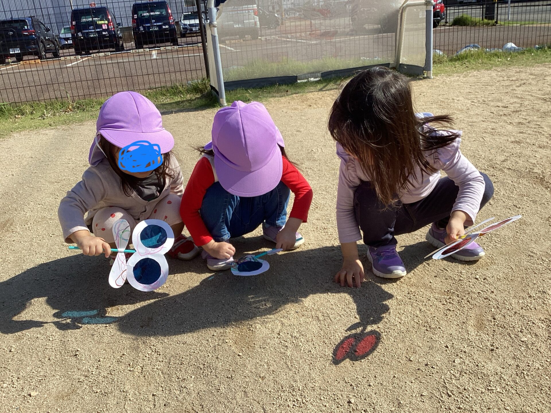 自分で作ったとんぼのめがねだからこそ、こんなに夢中になって遊べているのだなと思います✨
