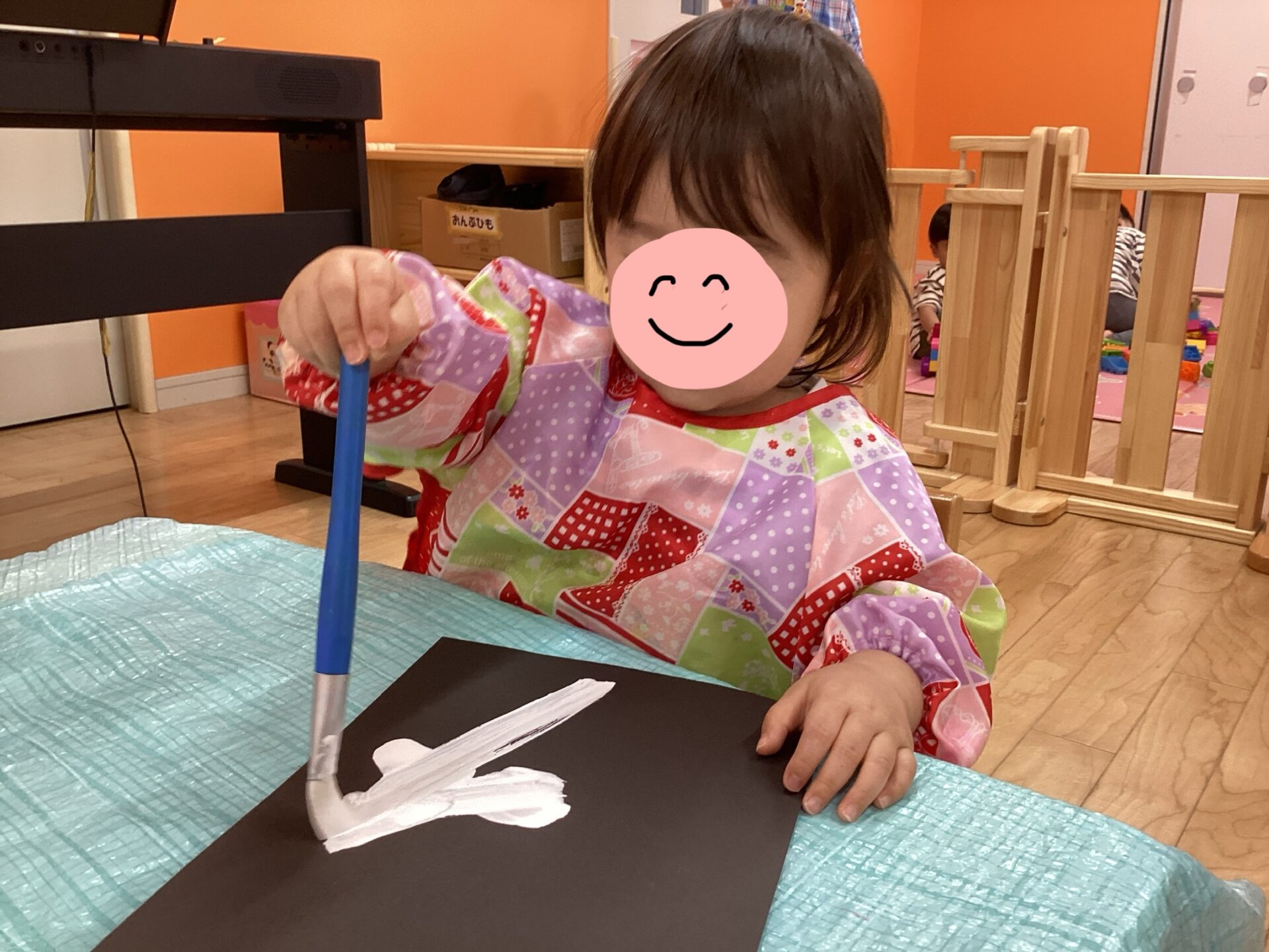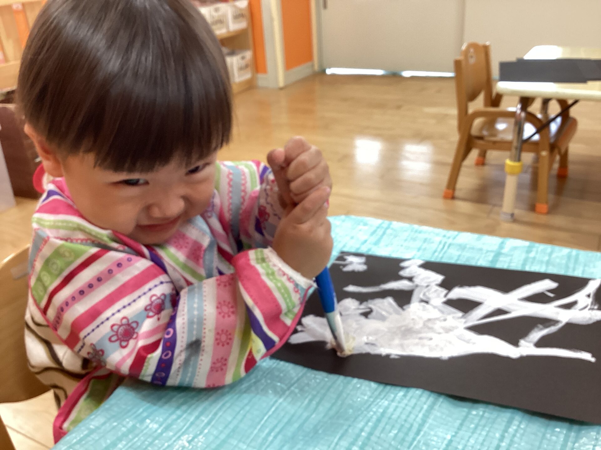 でも、絵の具を使ってお絵描きする楽しさに、あっという間にこの笑顔🥰