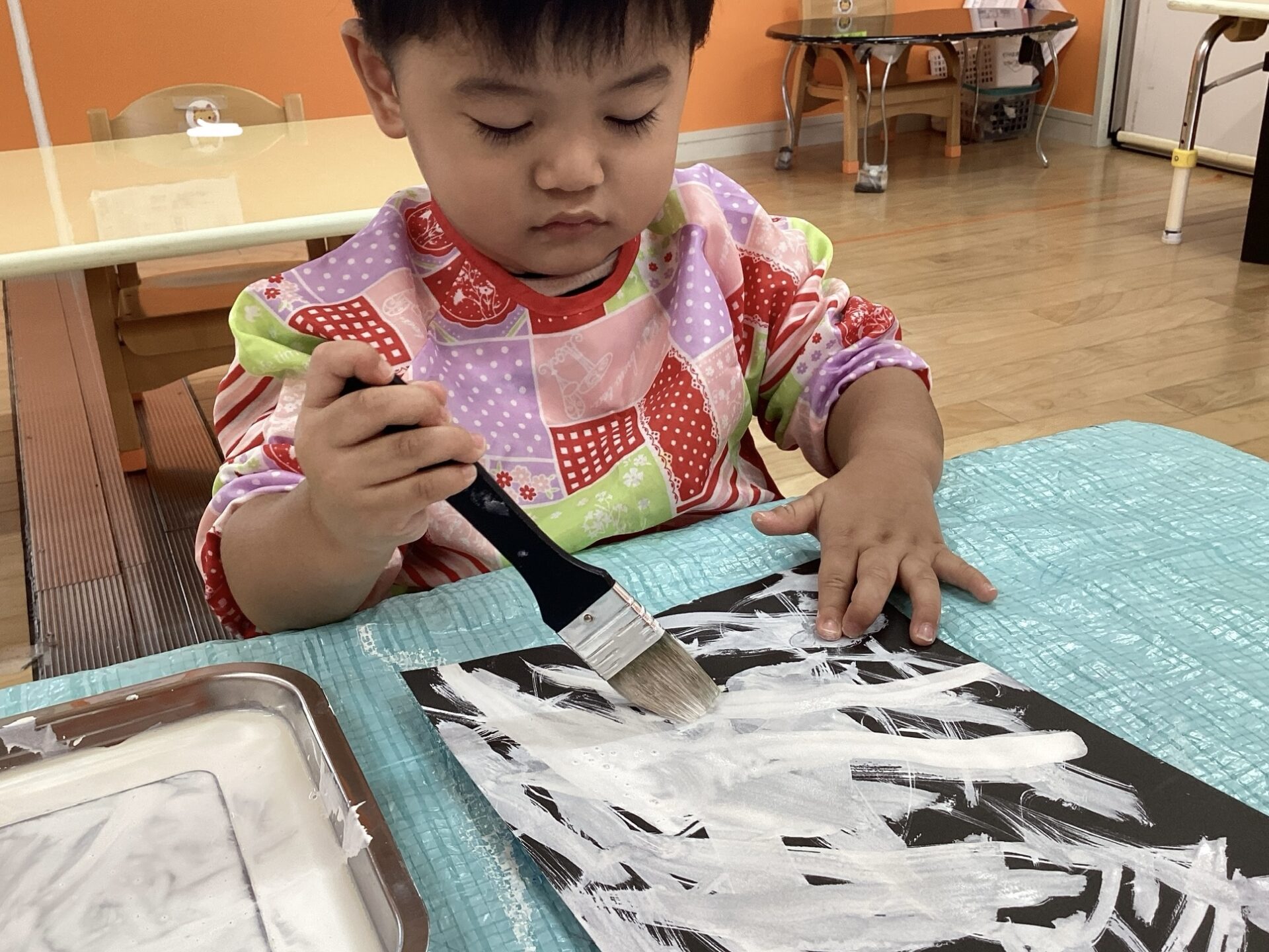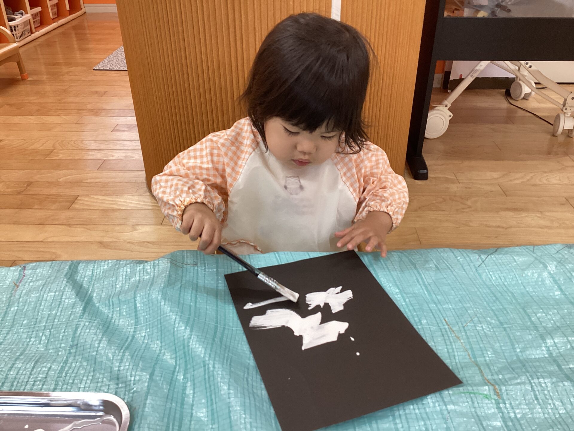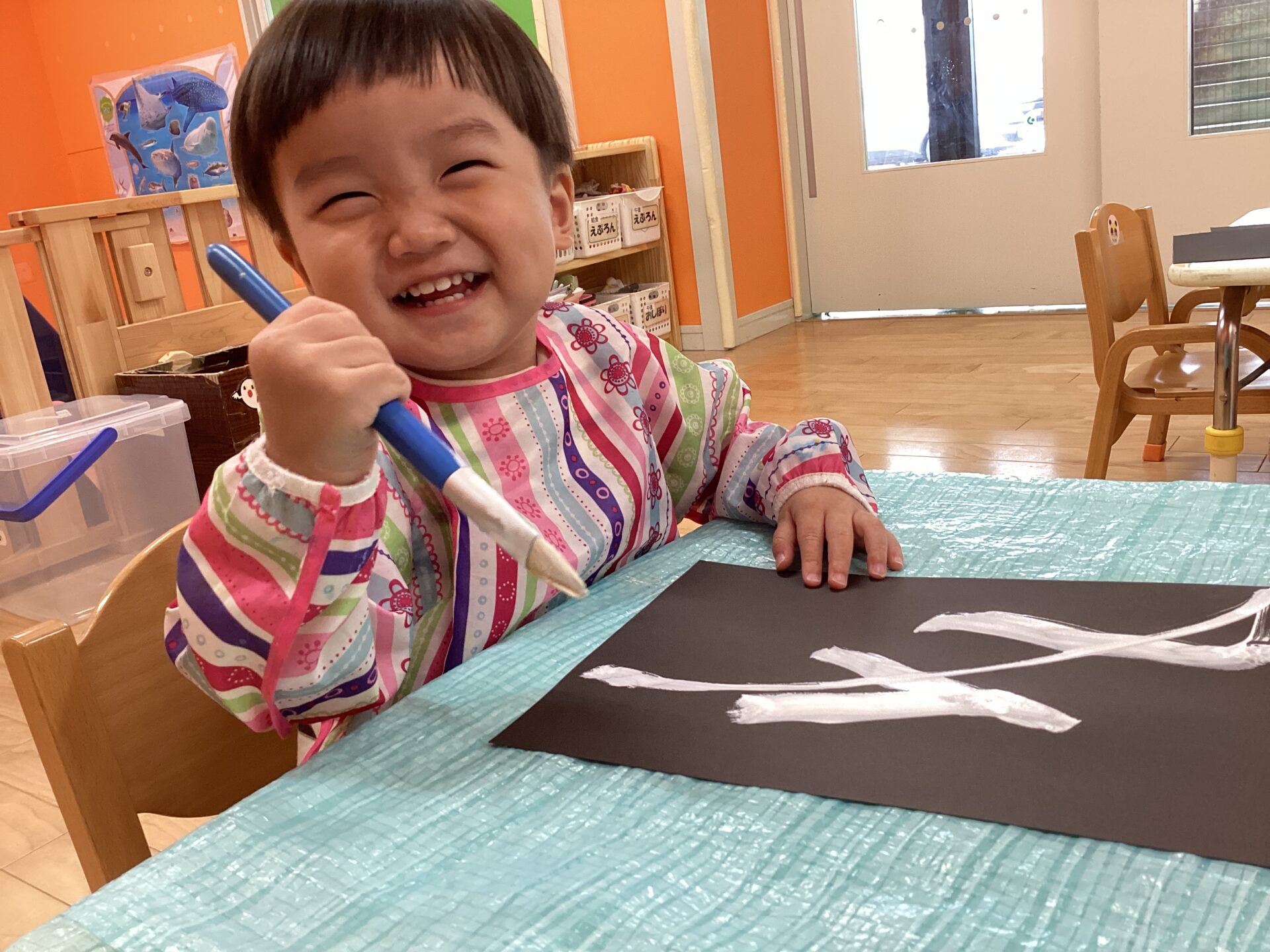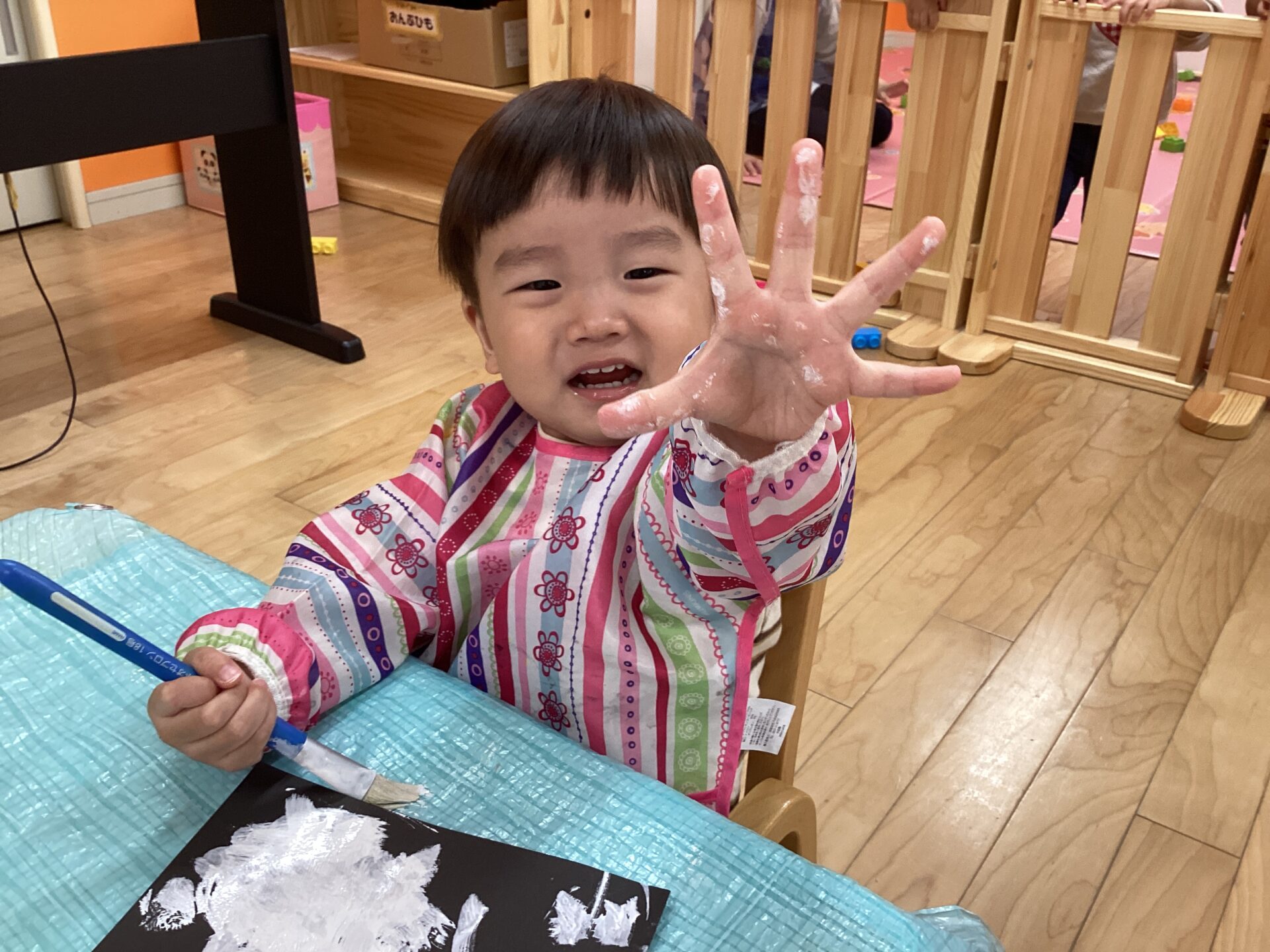 手に絵の具が着いちゃったよ~と手のひらも見せてくれました😋