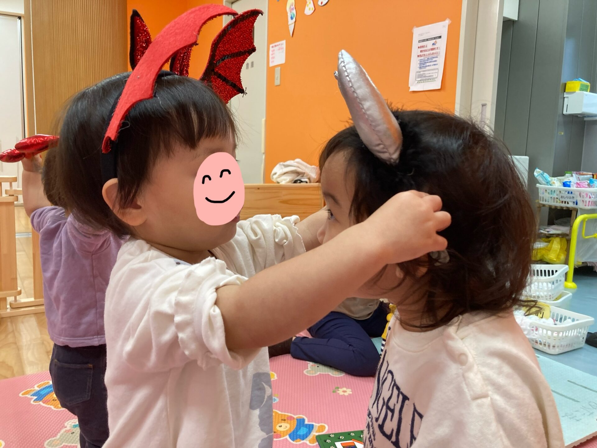お口の貼り方で表情がガラッと変わり、それがおもしろかったのか笑顔を見せていました☺️