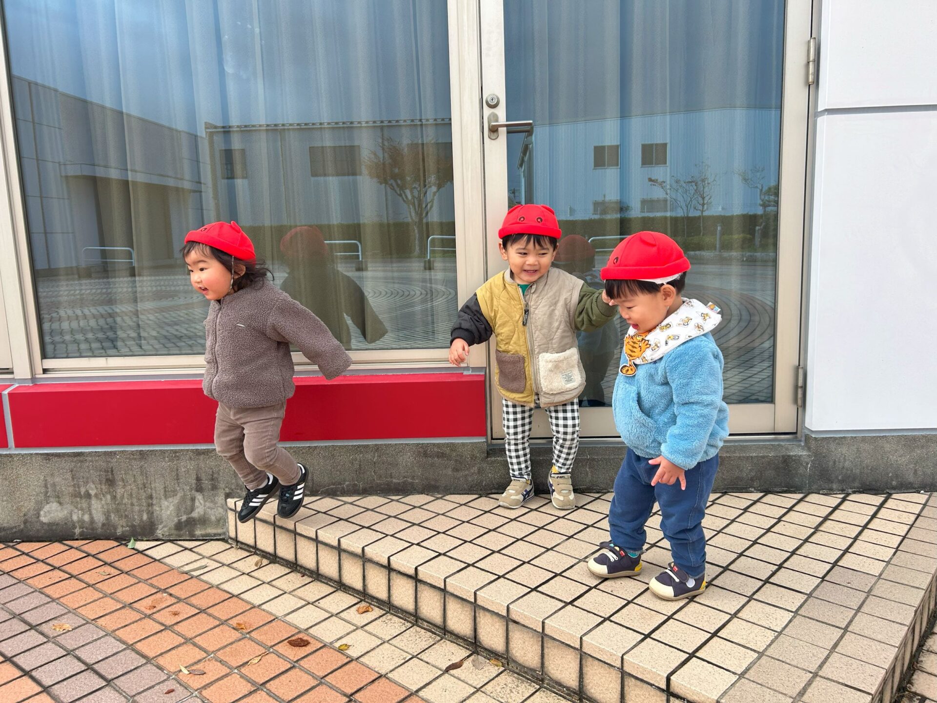 月齢によって、まだまだ個人差が大きい1歳児クラスですが、”お外楽しみ!早く行きたい!”の気持ちはみんな同じ😊日々の繰り返しの中でそれぞれ自分なりに、”やってみようかな…!”という思いが感じられる子が増えてきました。