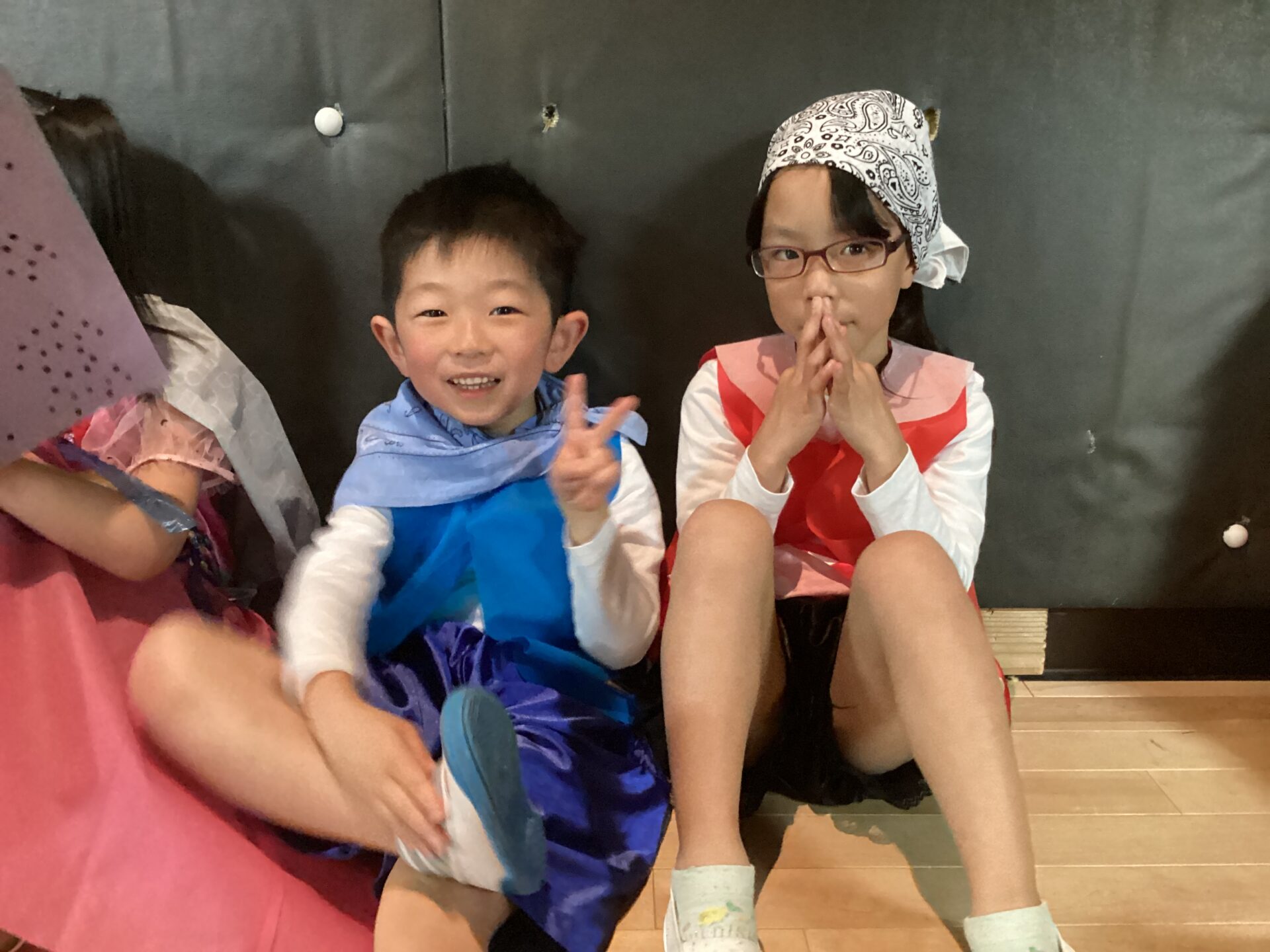 そんな中、迎えた東区プラザでのリハーサル。出番のないときは、客席で他のクラスの発表を見学することにしました。すると、ステージの上で自信たっぷりに生き生きと役になりきっているそらぐみさん。キラキラの笑顔でダンスの準備をしているゆきぐみさん。そんな姿を目の当たりにして、Aちゃんが「もっと頑張りたい…」とポツリ。その言葉に他のお友だちも「ぼくもやりたい」「私もがんばる」とパッと表情を輝かせたのです。それからの練習はやる気満々!意欲爆発!とはいきませんが、少しずつ一人ひとりのペースで″かっこよくできるようになりたい″という意識がふつふつと湧き上がっているようでした。
