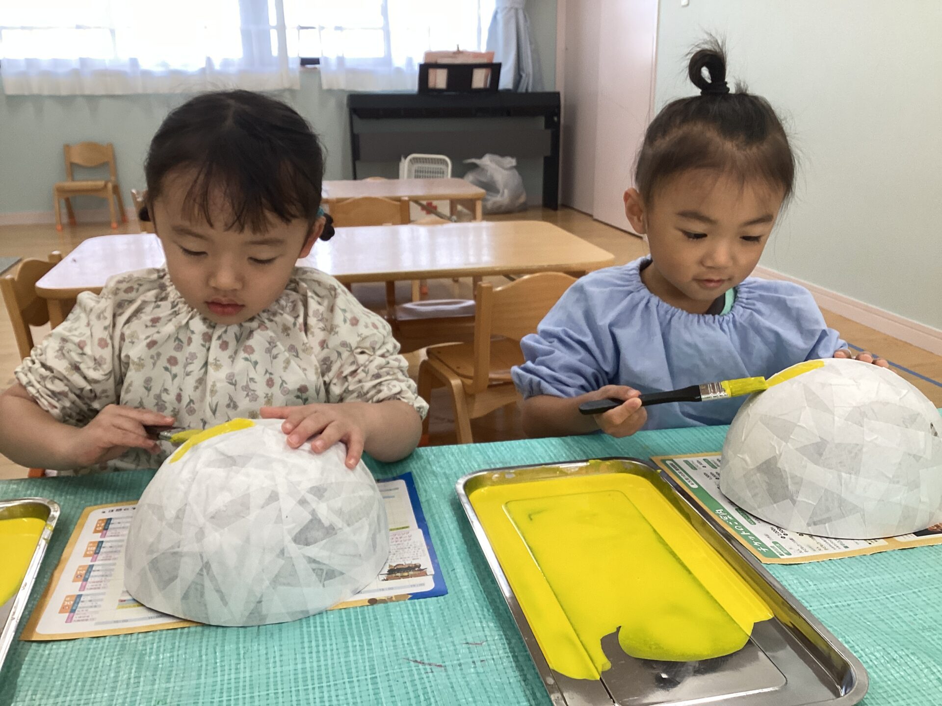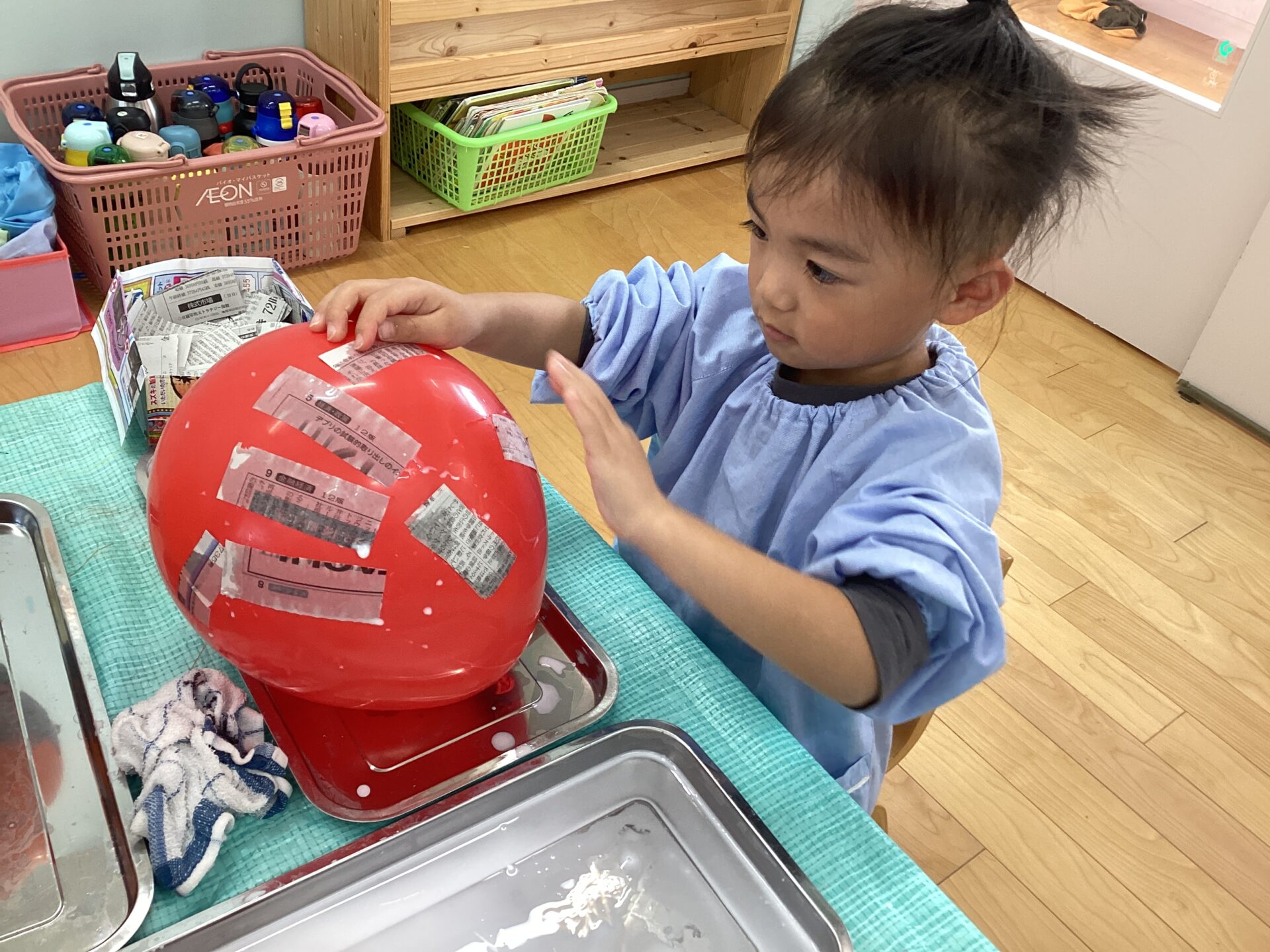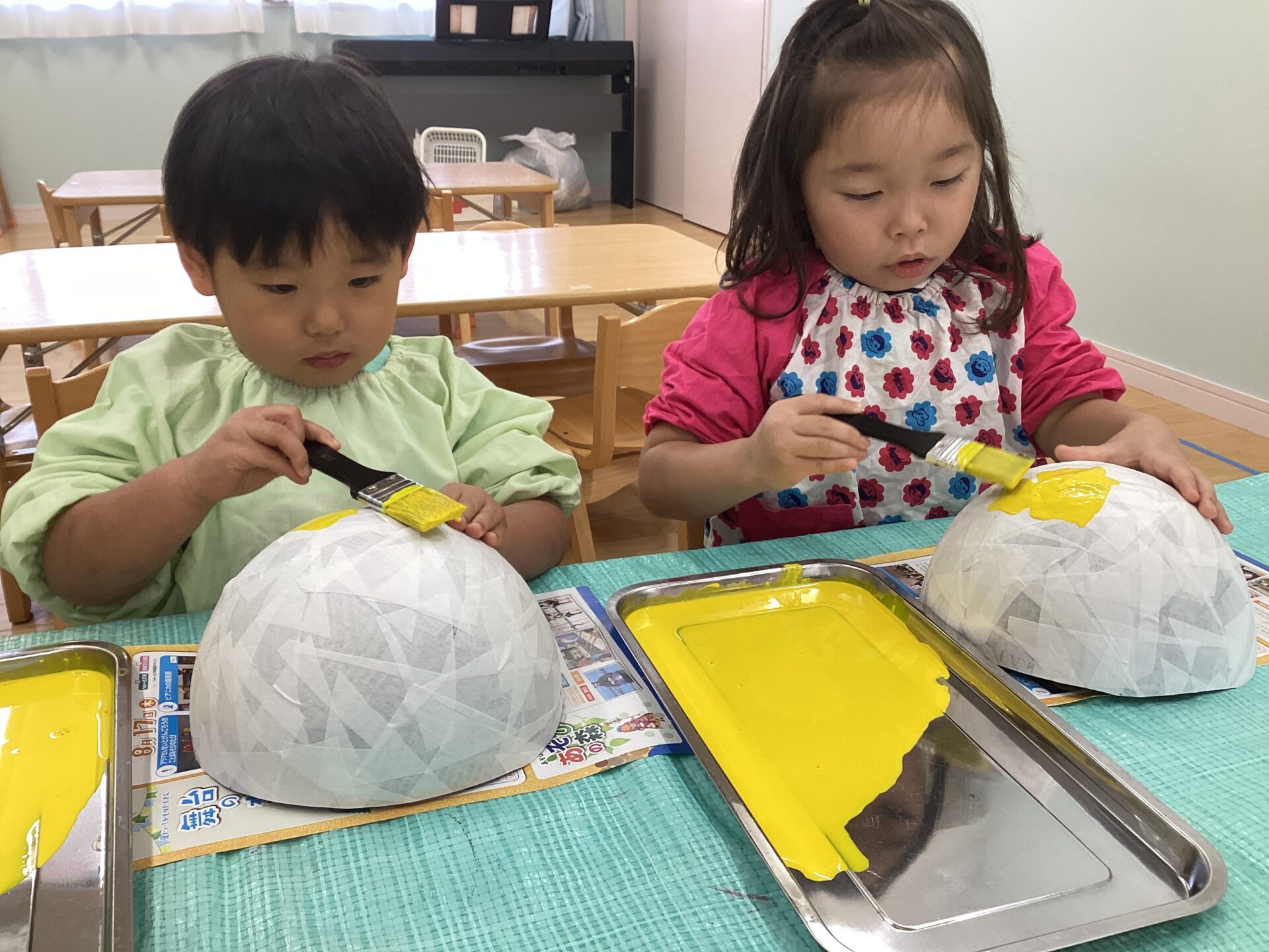 根気のいる作業なので、集中力は必要になりますが、一生懸命に新聞紙を貼っていましたよ!