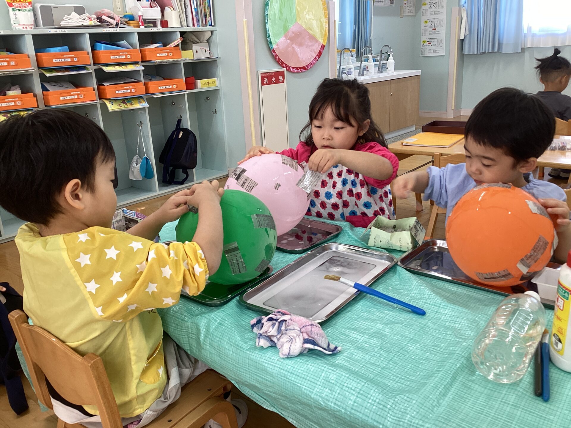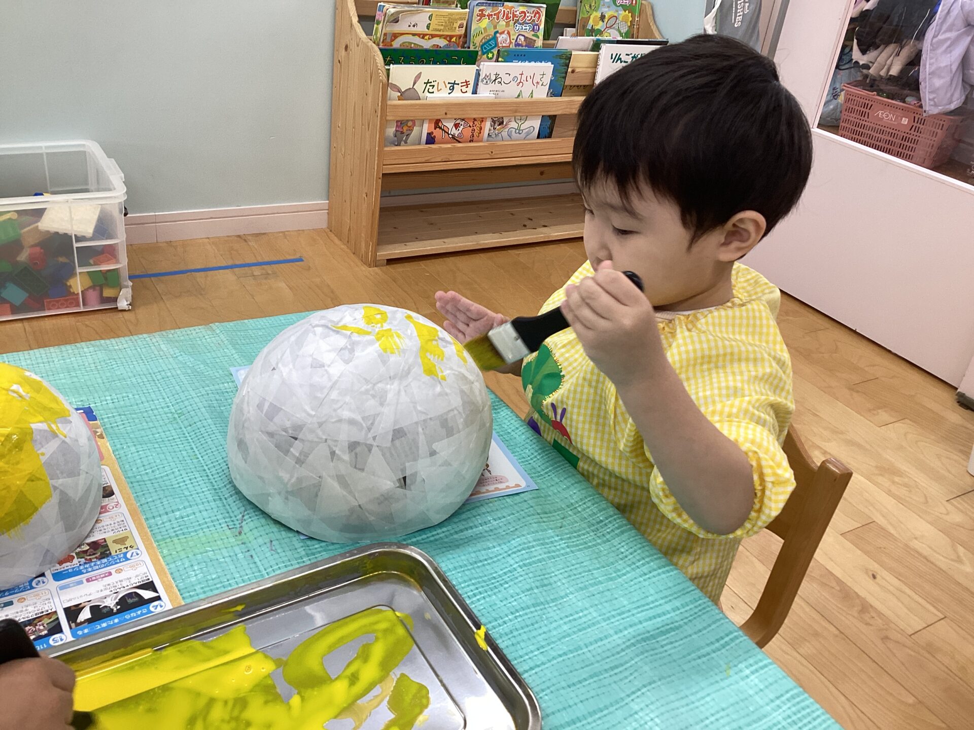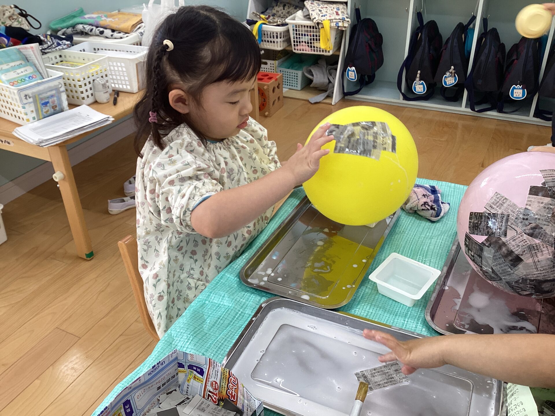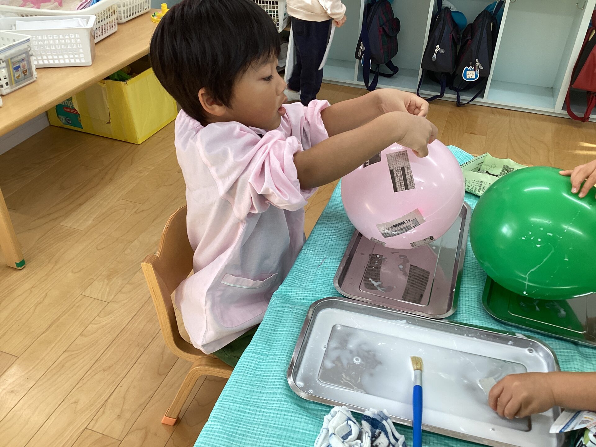 根気のいる作業なので、集中力は必要になりますが、一生懸命に新聞紙を貼っていましたよ!