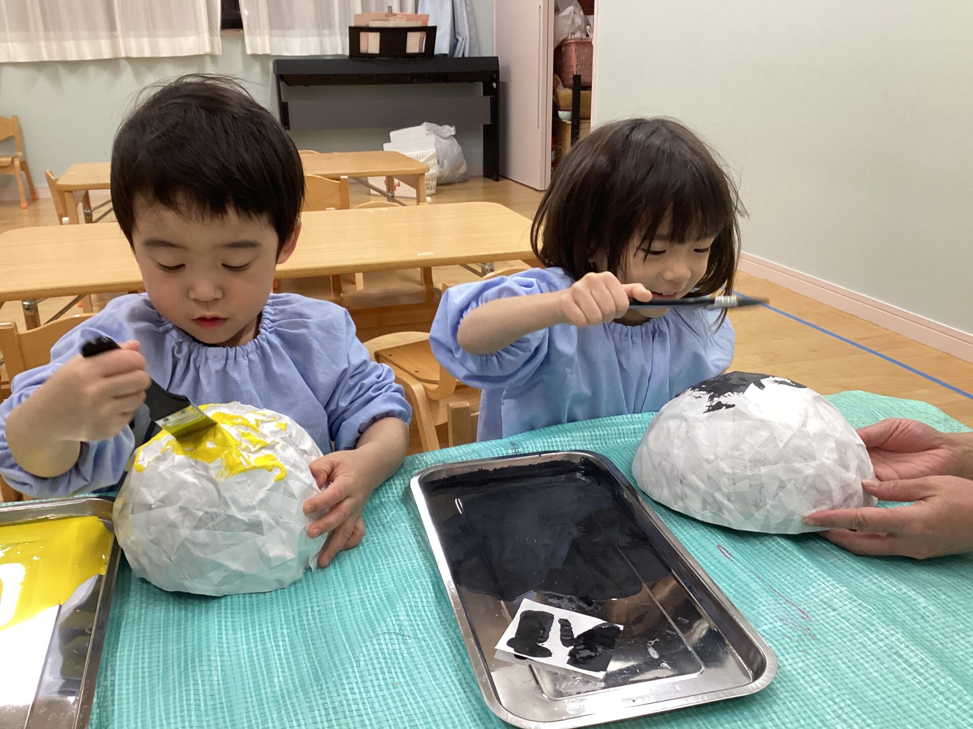 平面ではなく立体に絵の具を塗るので苦戦する子もいましたが、集中して塗っていました‼️