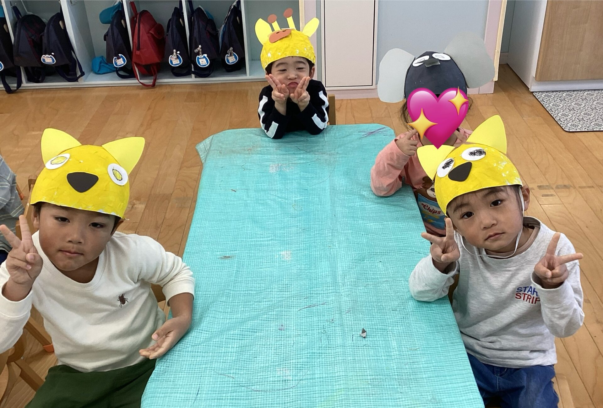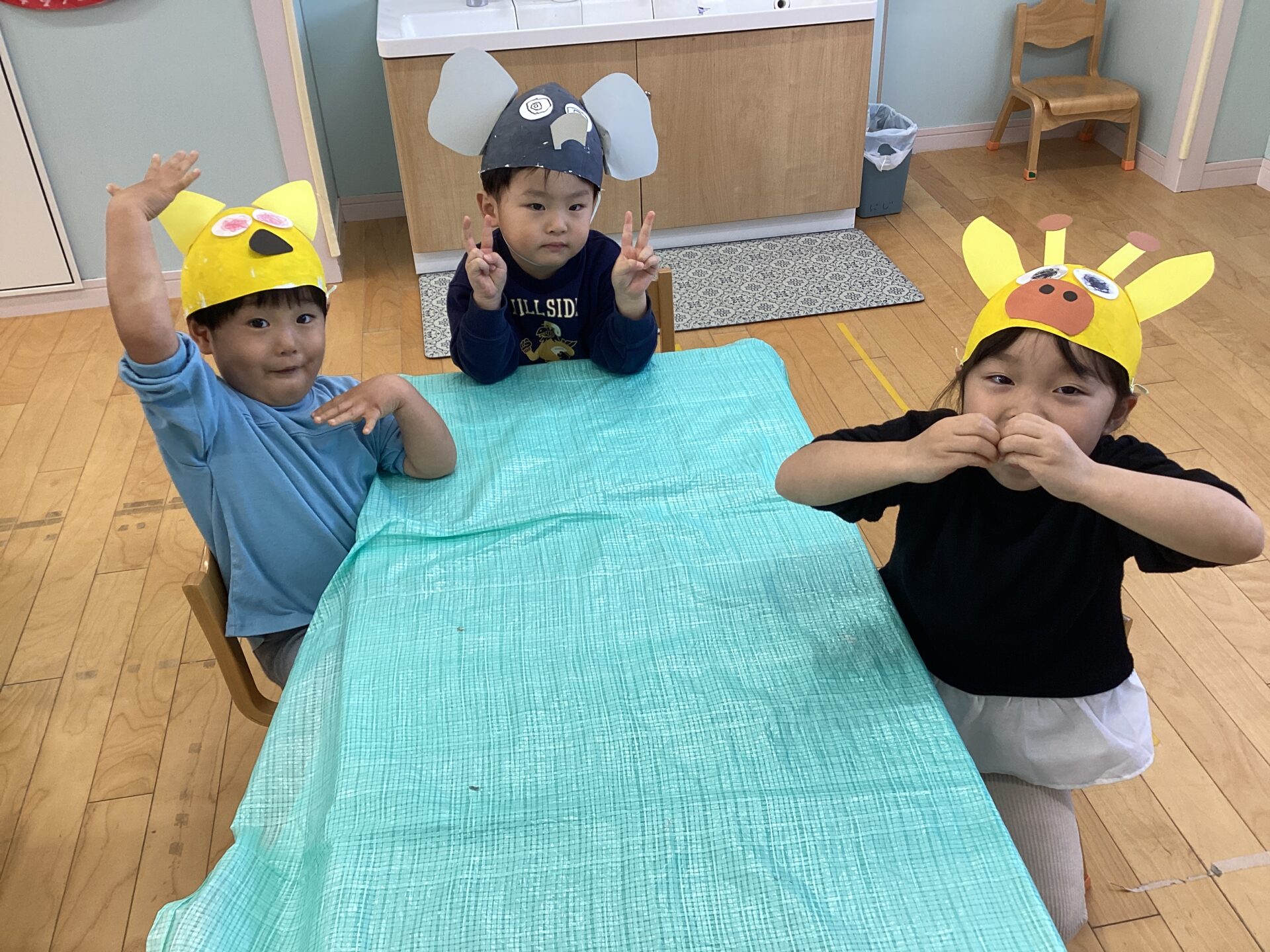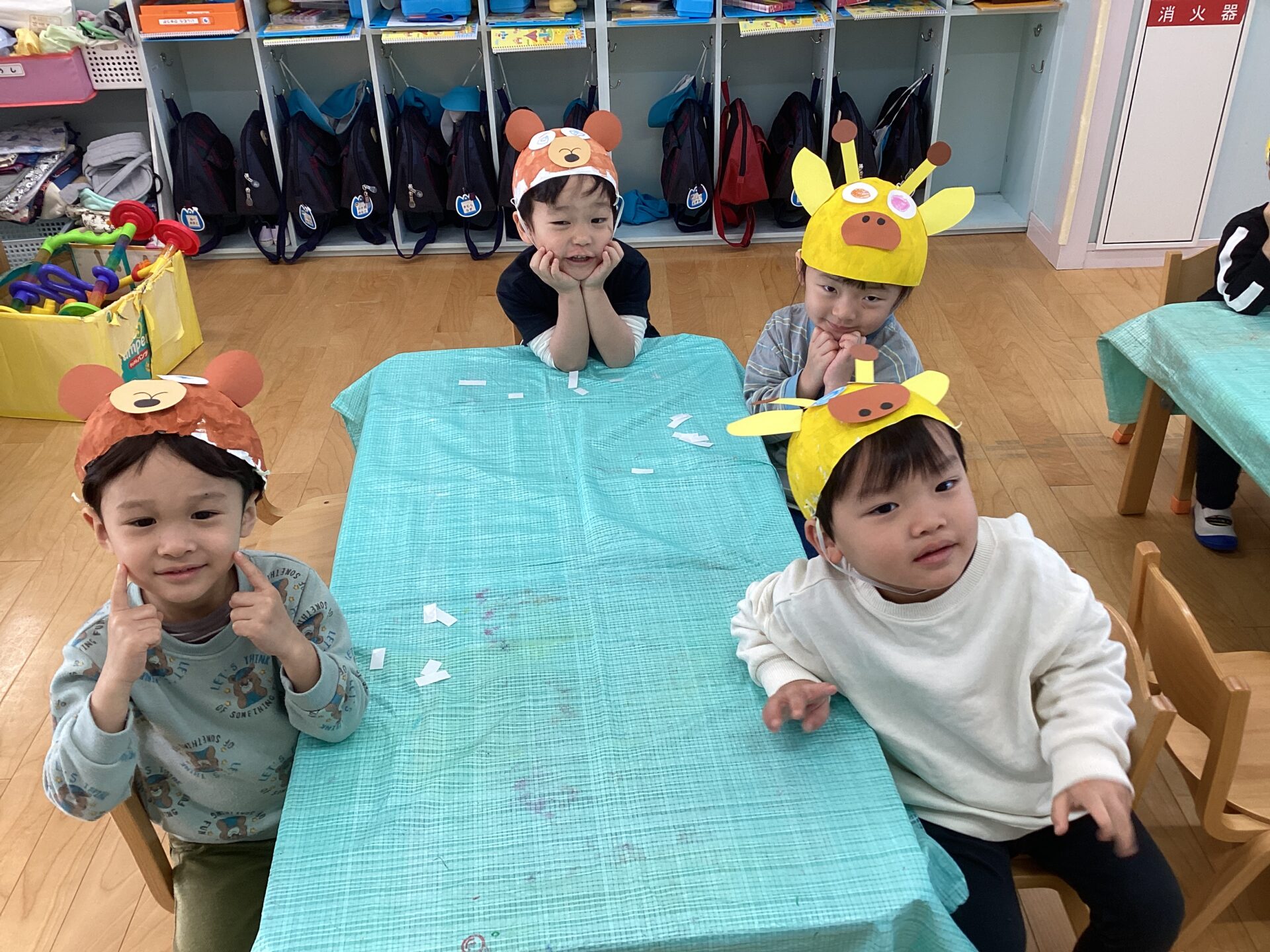 描き方や貼り方で、個性のある動物帽子が完成しました☺️