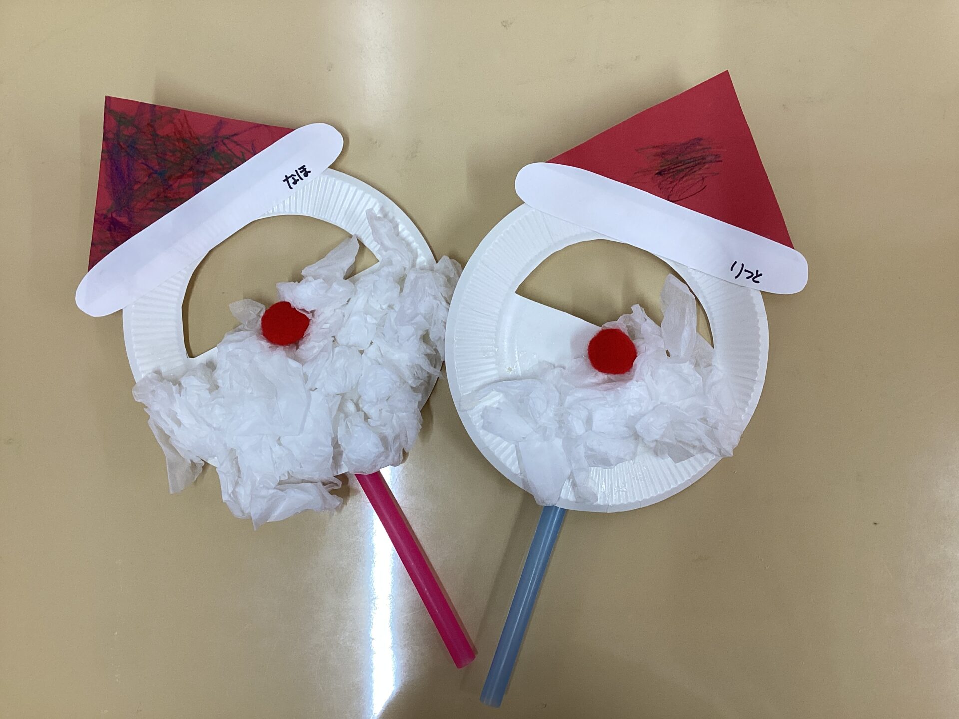 さっそく、顔にあててサンタさんになりきる子がたくさんいましたよ😄
