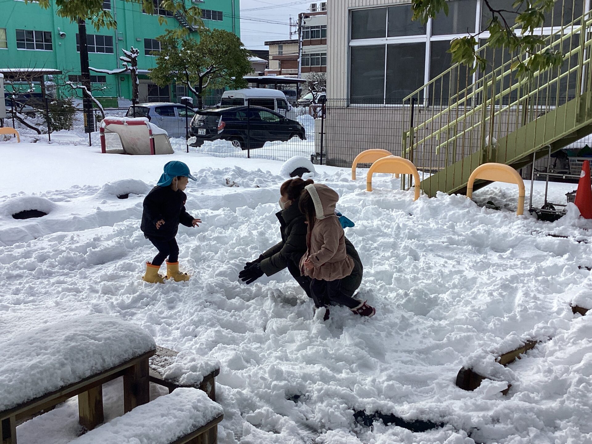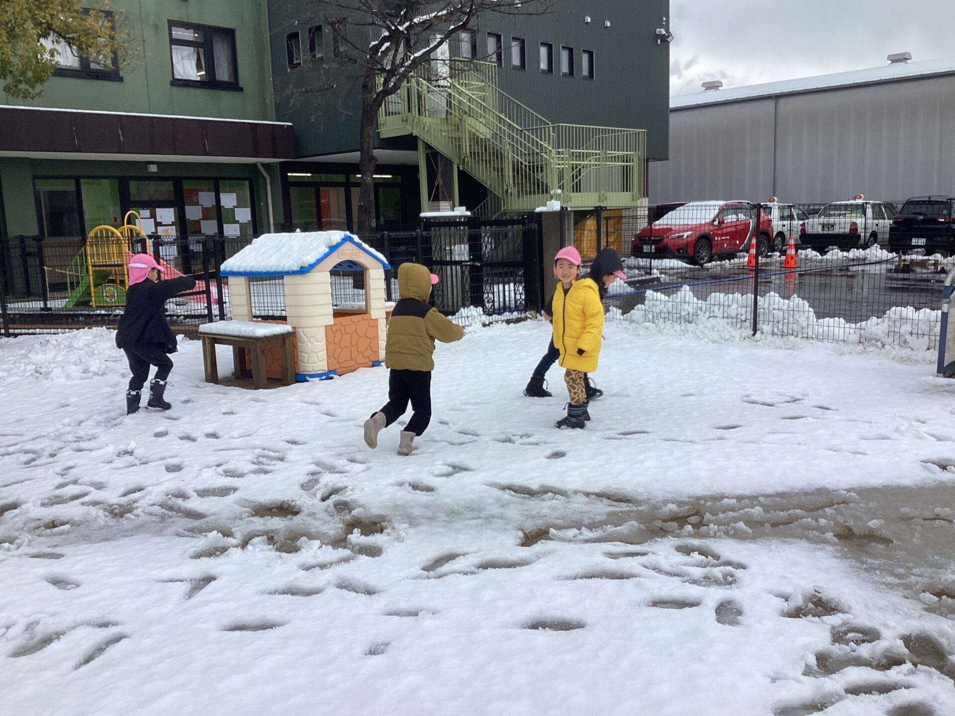 水を含んだ雪でしたが、子どもたちは大喜びで雪だるまを作ったり、雪合戦をしたり