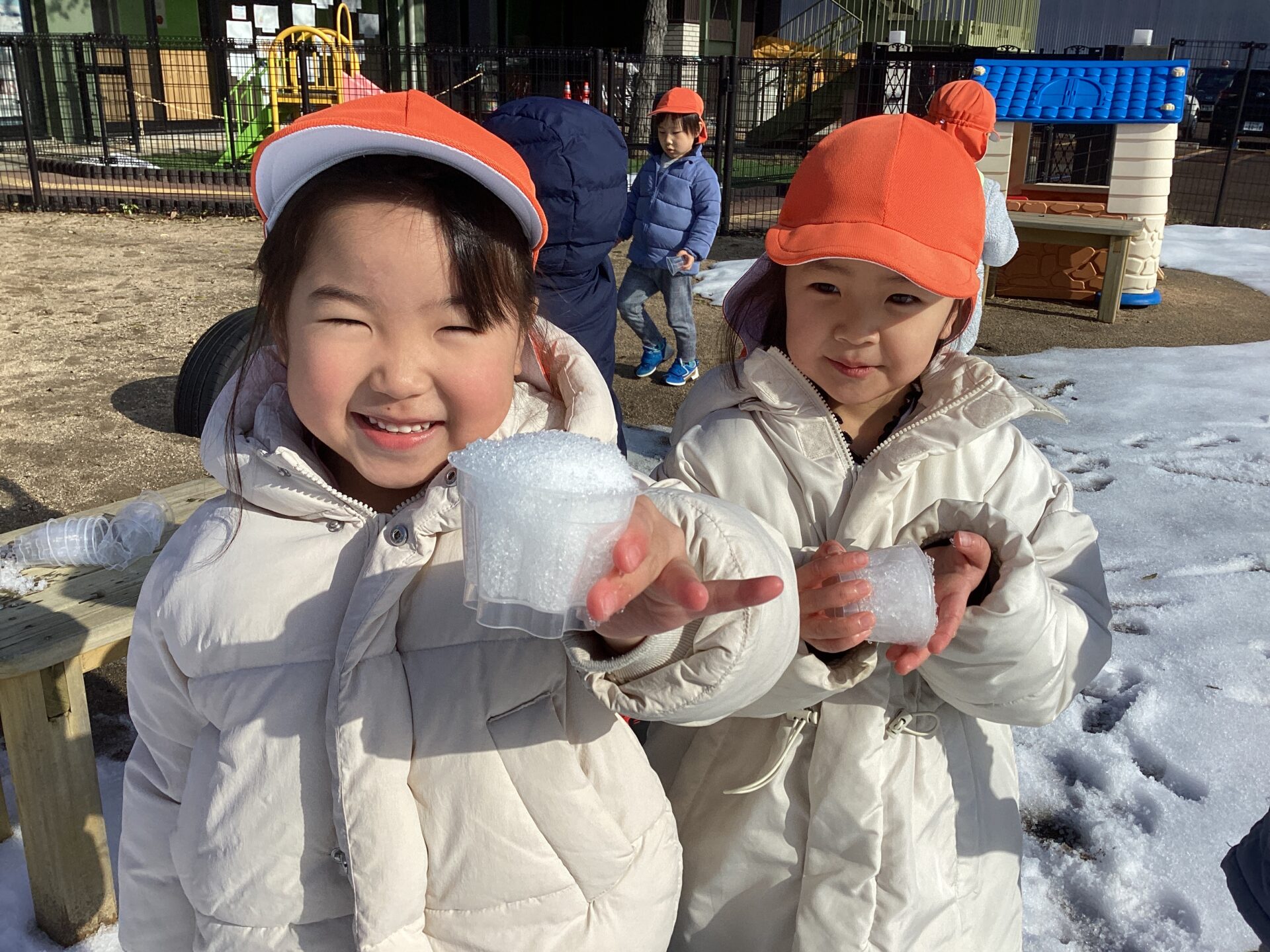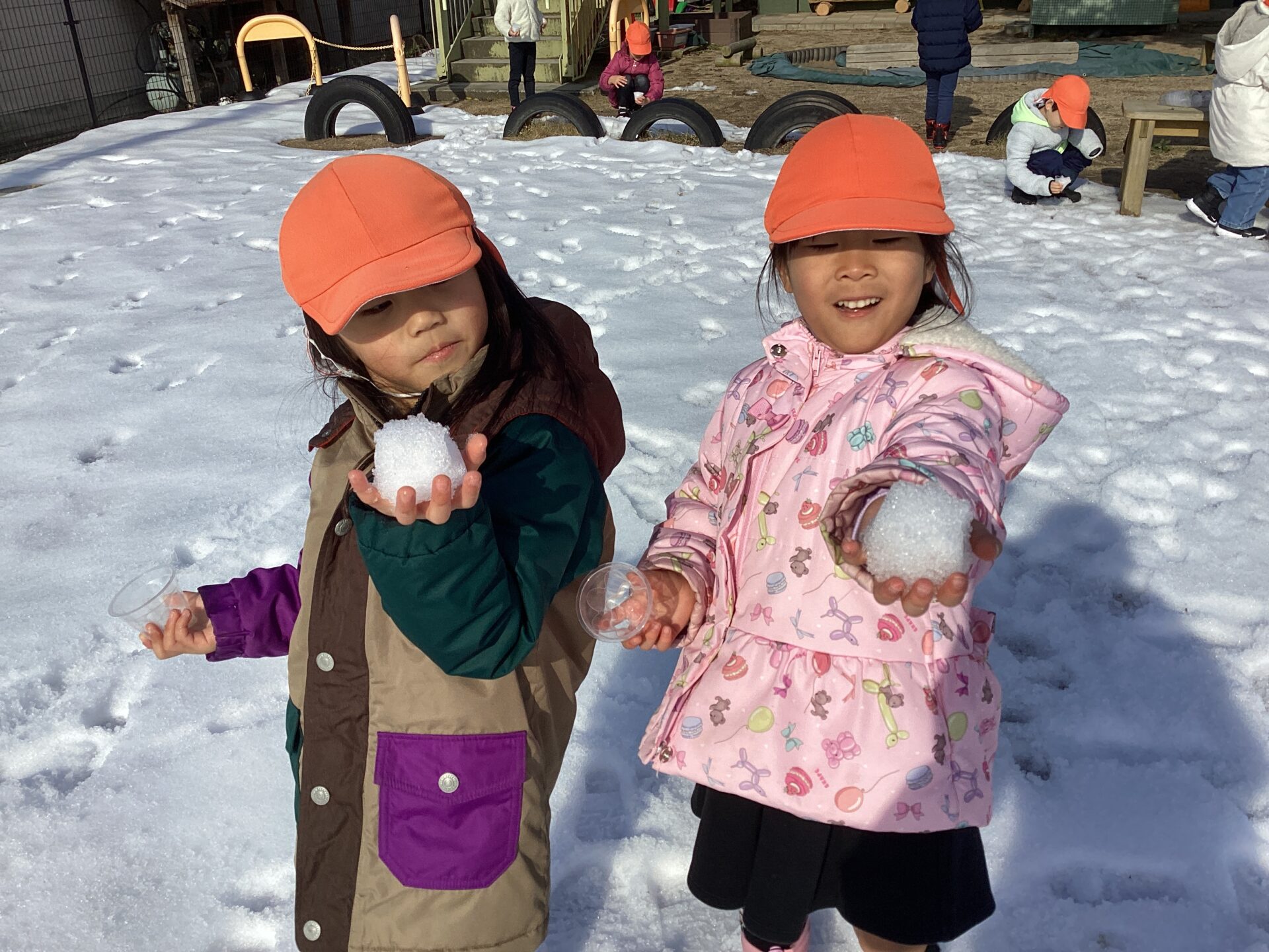 雪玉を作って子ども達同士で雪合戦を楽しんでいたりカップに雪を入れてアイスやかき氷に見立てて遊んでいました。