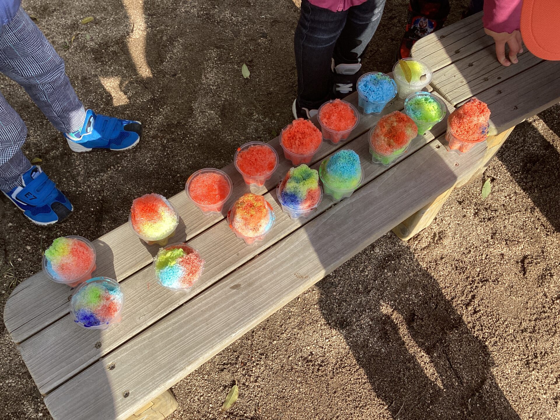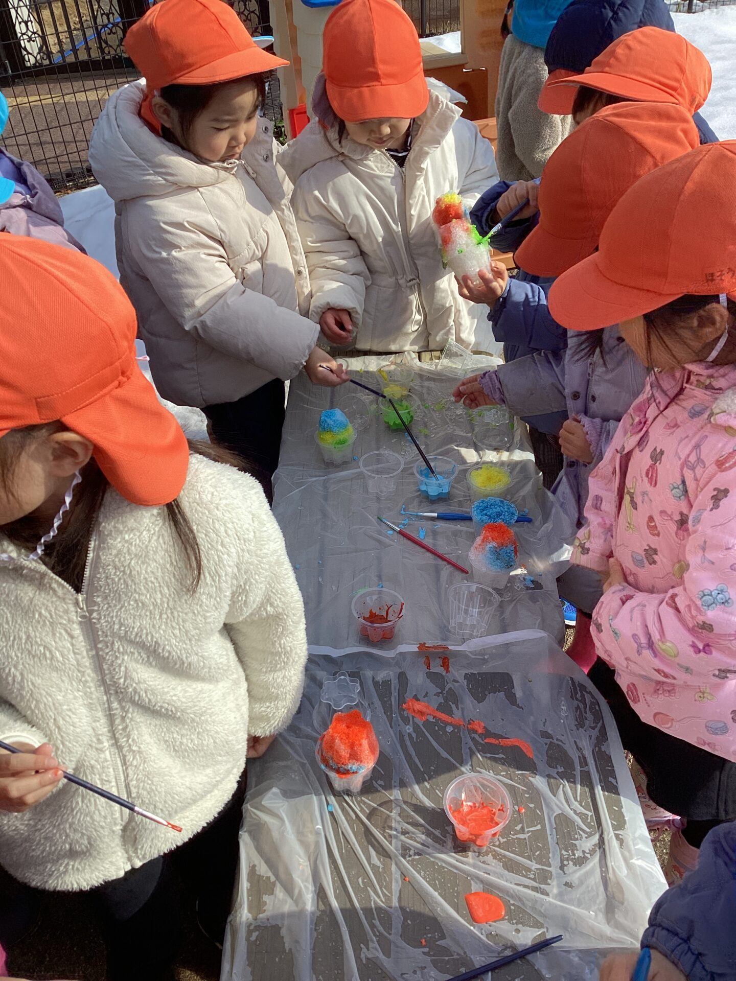 絵の具コーナーを用意し、雪を色付けできるようにすると、大賑わい😄✨
