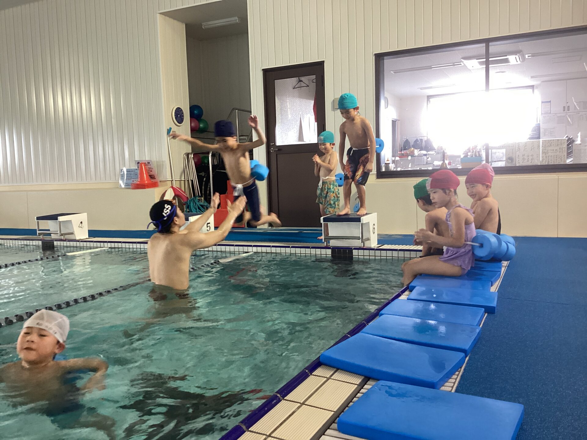 プールへのジャンプや、けのび、バタ足にもチャレンジしました。