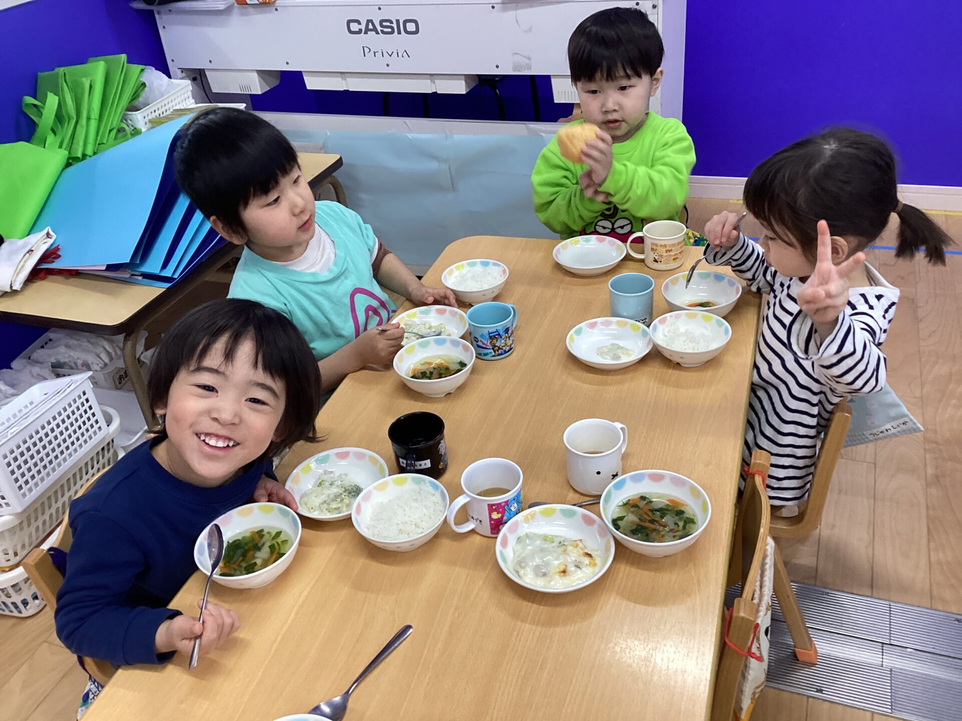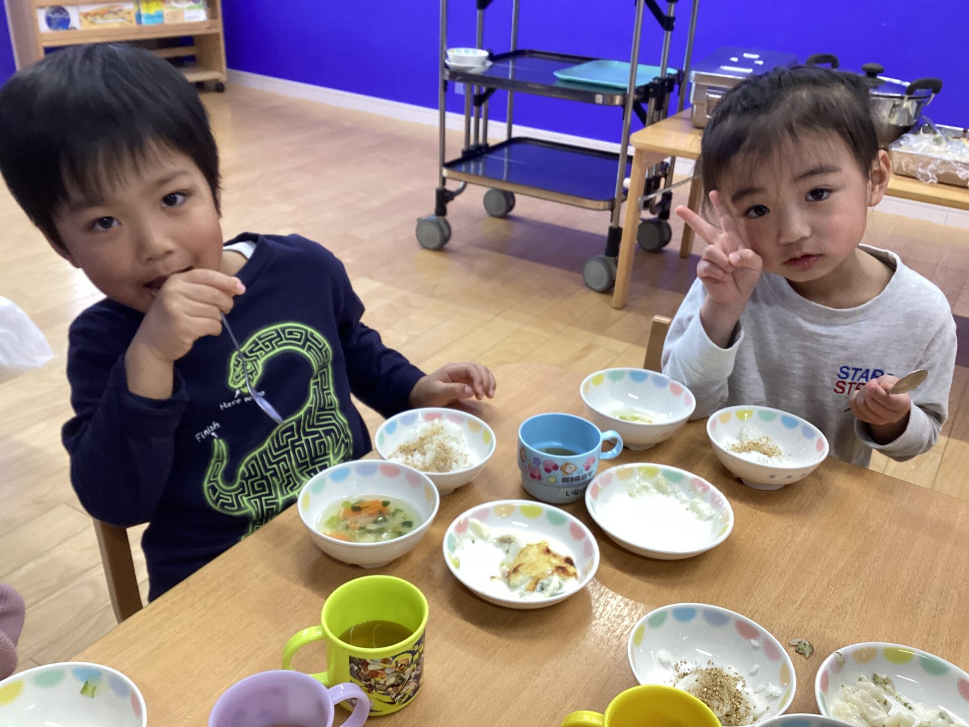 仲良しのお友だちと一緒に絵本を読んだり、モリモリ給食を食べたりしながら、楽しく過ごしている様子をお裾分けします⭐️