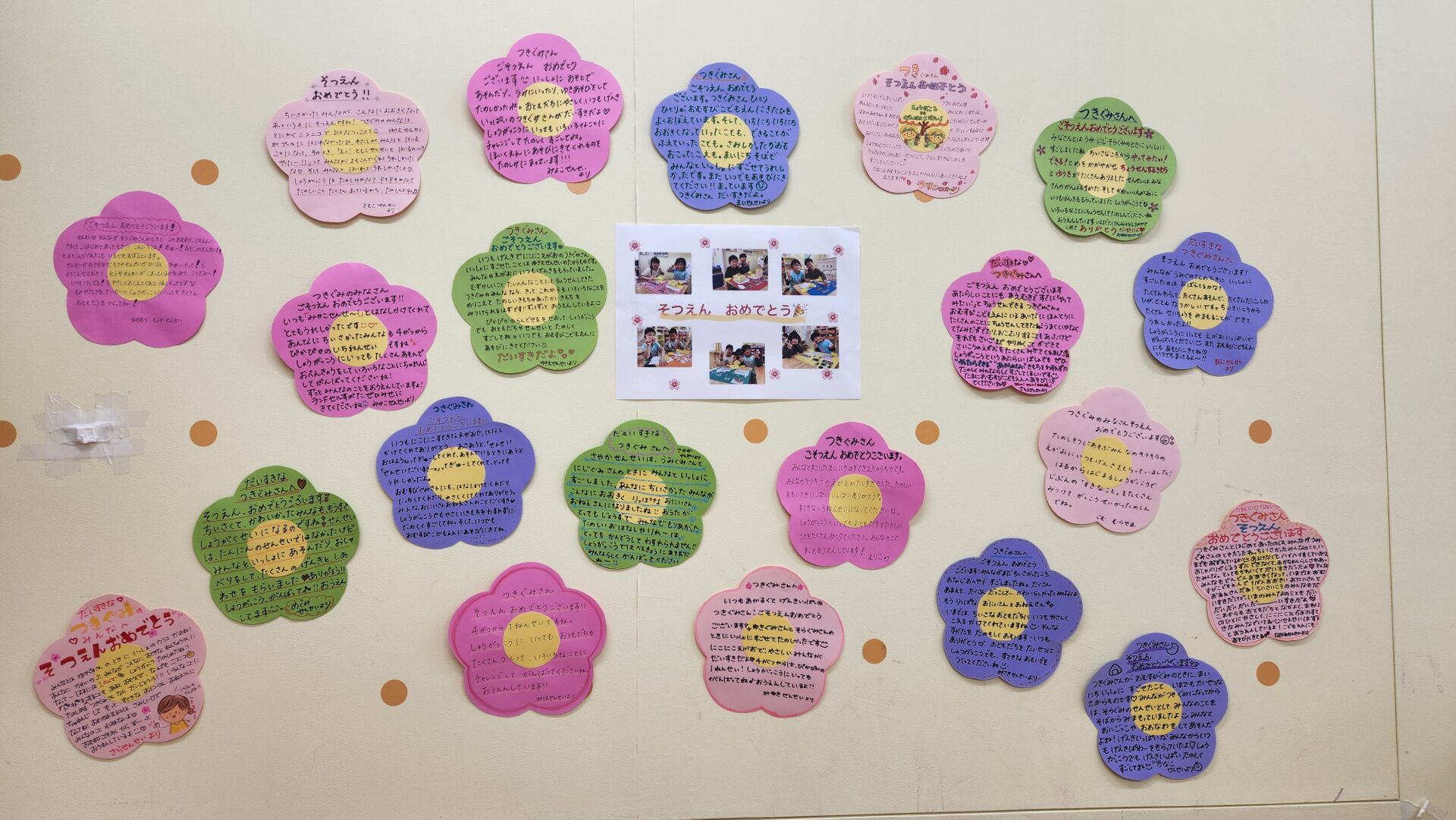 お迎えの時に保護者の皆さまとご挨拶するたびに、子ども達の成長をうれしく思うと共に本当にさみしく、涙をこらえながらのお見送りとなりました。立派な背中を見送って、元気にがんばってねと願いながら最後のお友だちと「さようなら」をすると、じんわりと何とも言えない気持ちになりました。