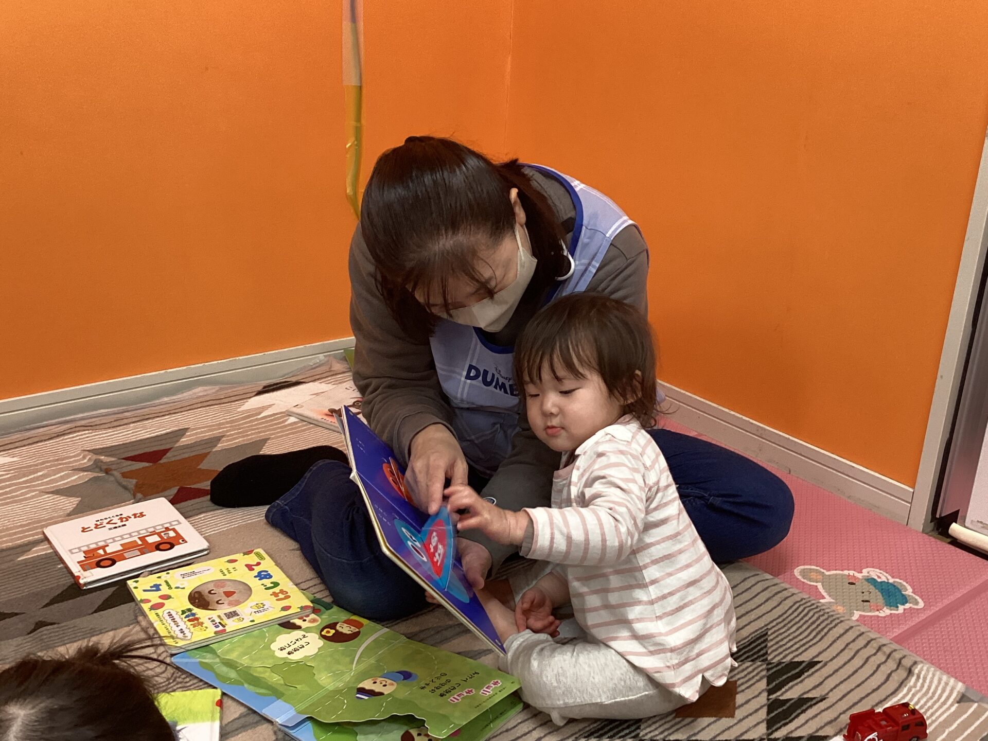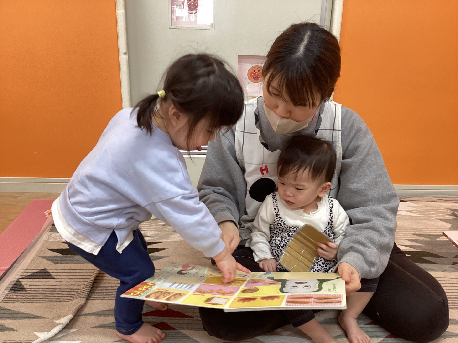 気になる絵本を保育者と一緒に見ながら、やりとりを楽しんだり、