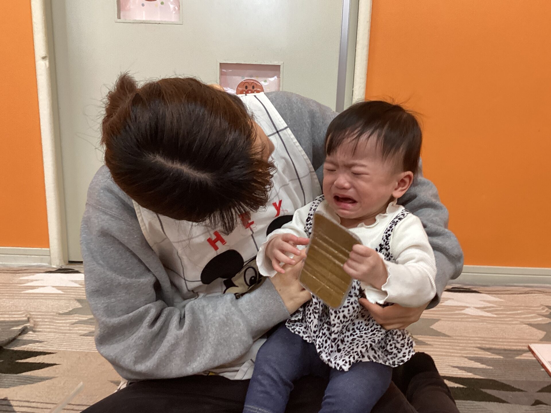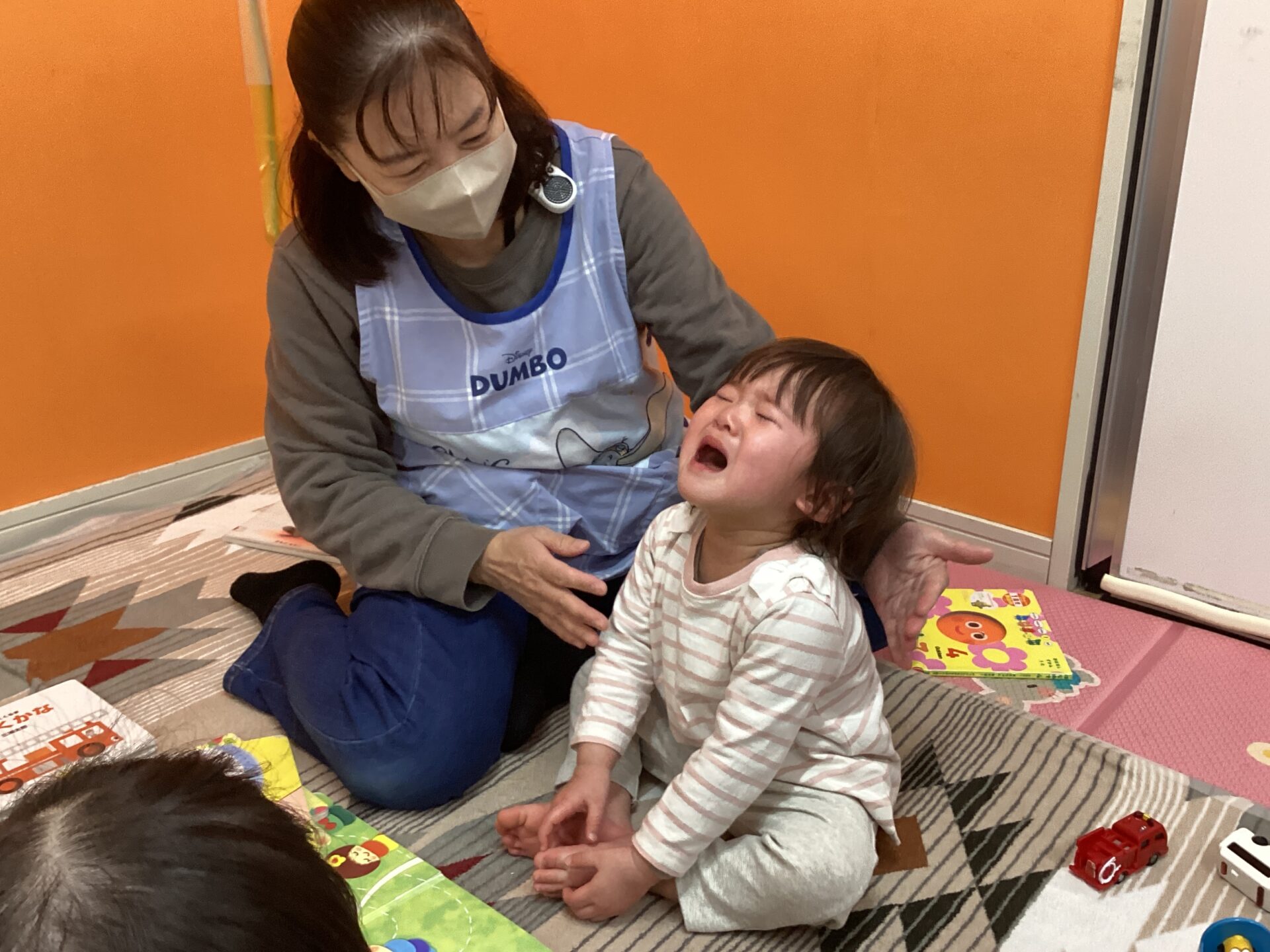 新入園のお友だちは初めての環境に不安でいっぱいで、お部屋の中は泣き声が響いていました。